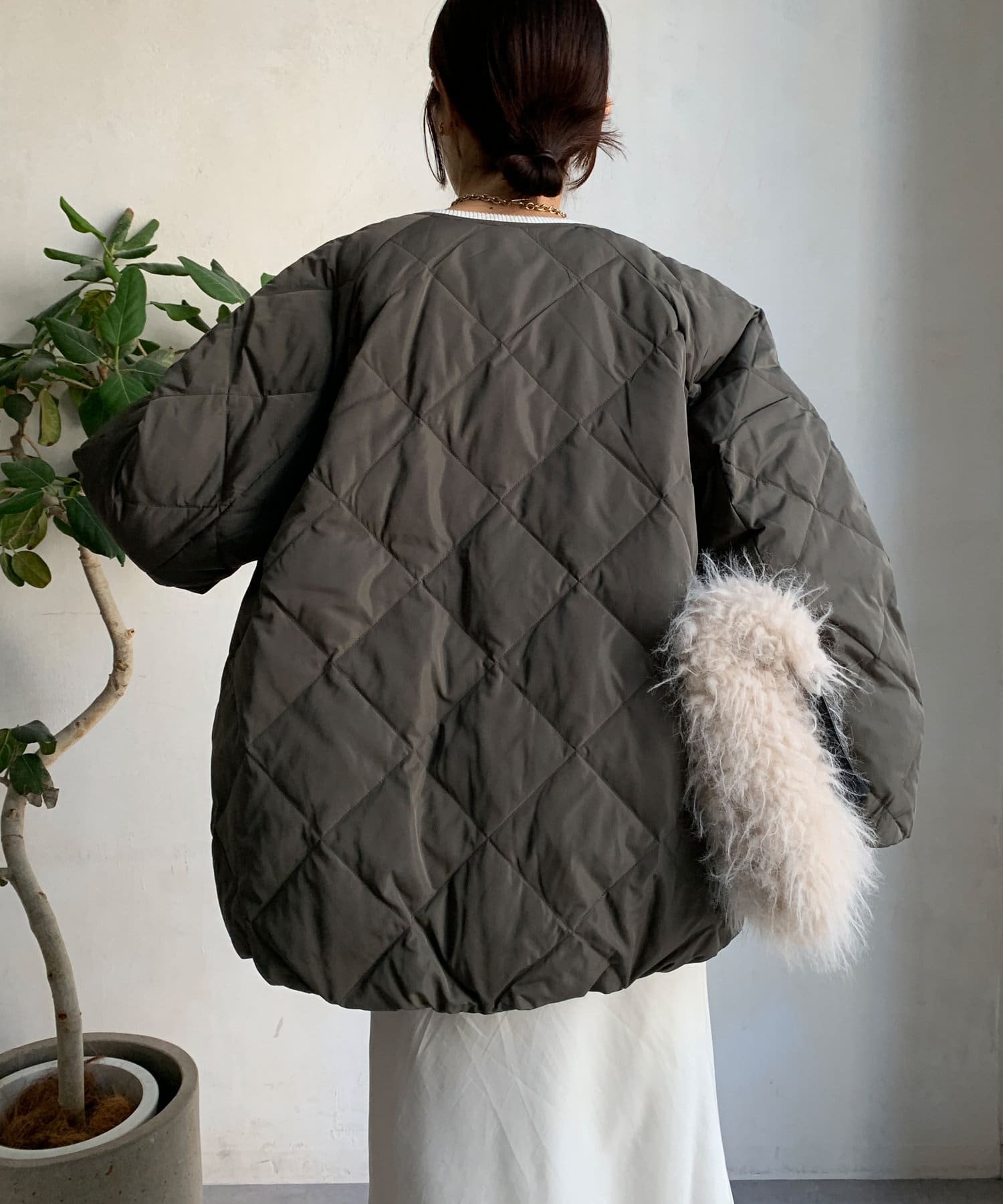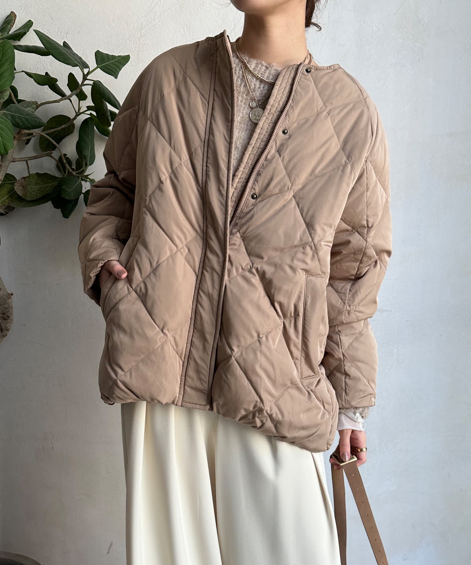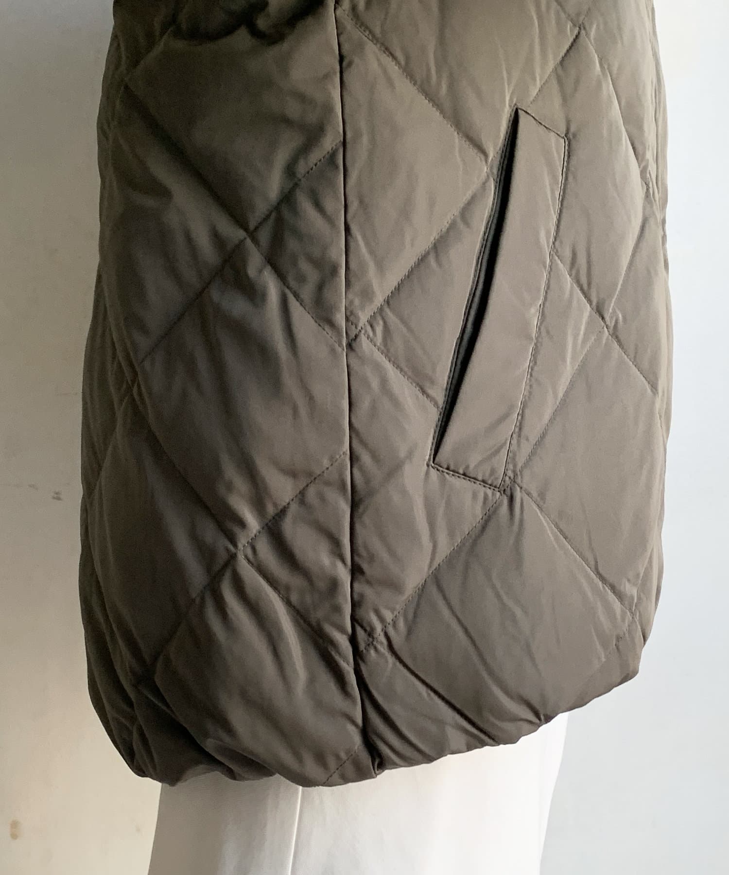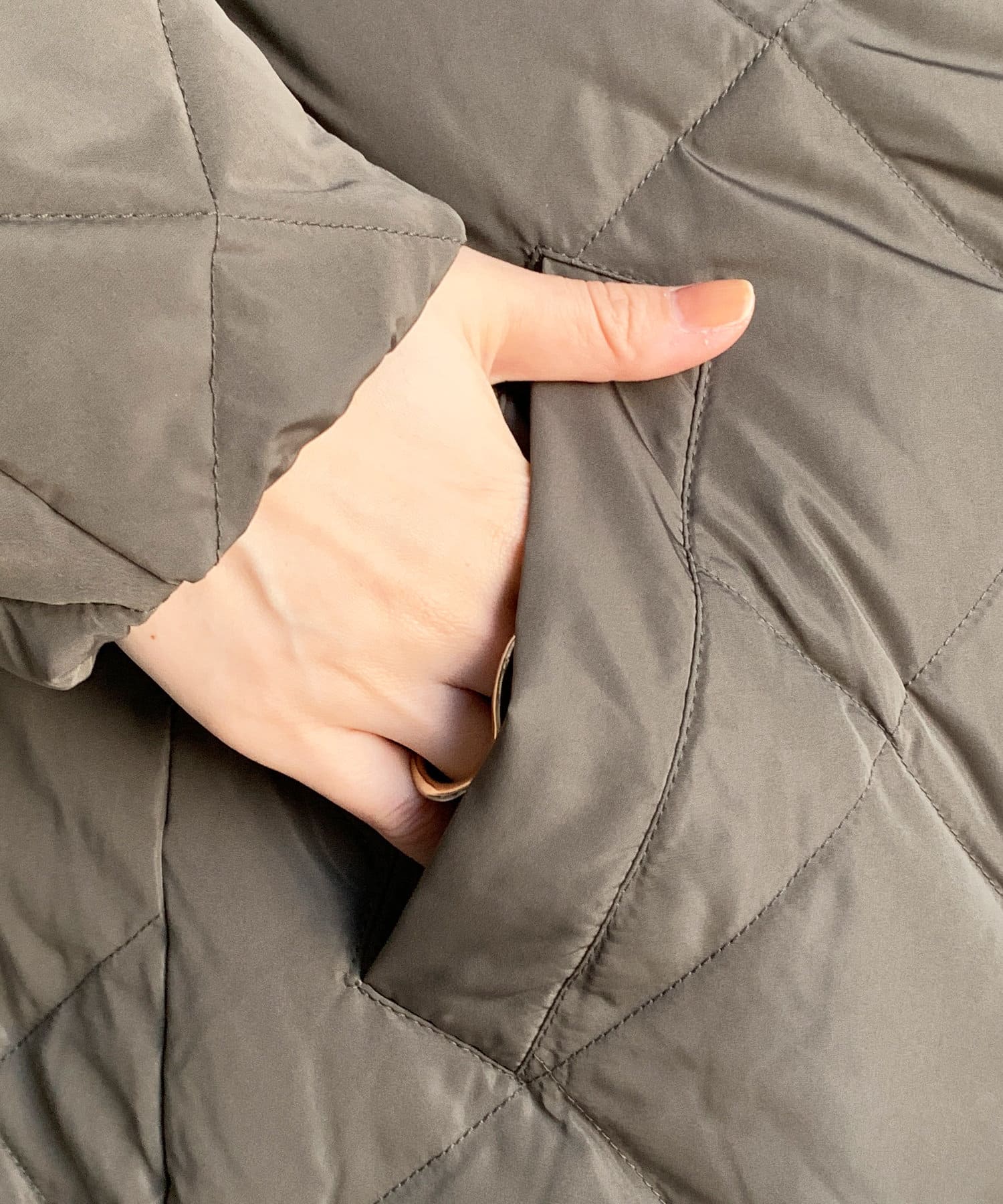 軽量で保温性にも優れた中綿素材で仕上げた大きめのダイヤ柄キルティングが、ポイントとなってくれます。