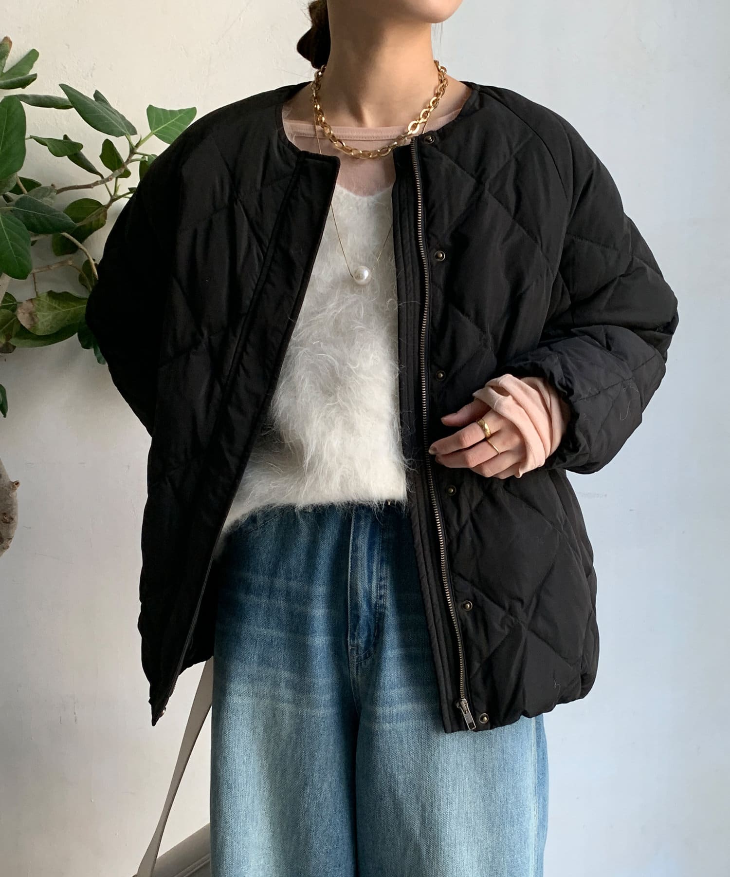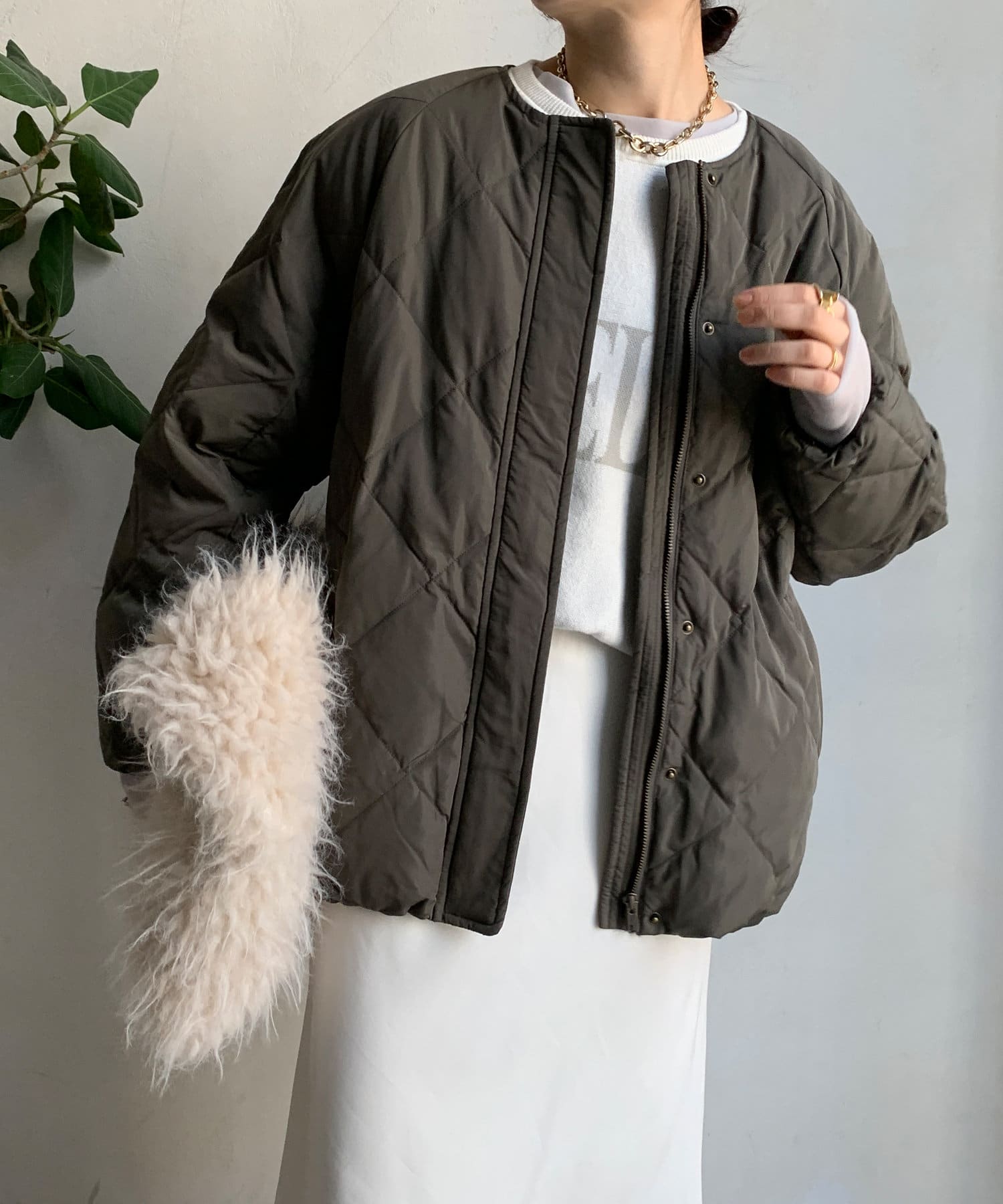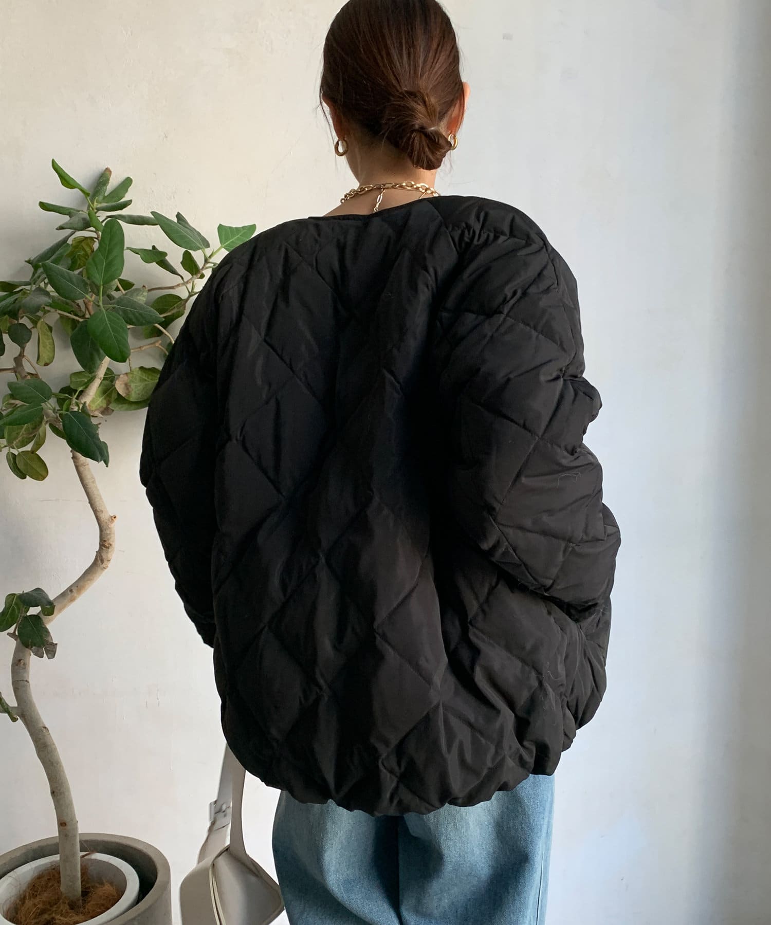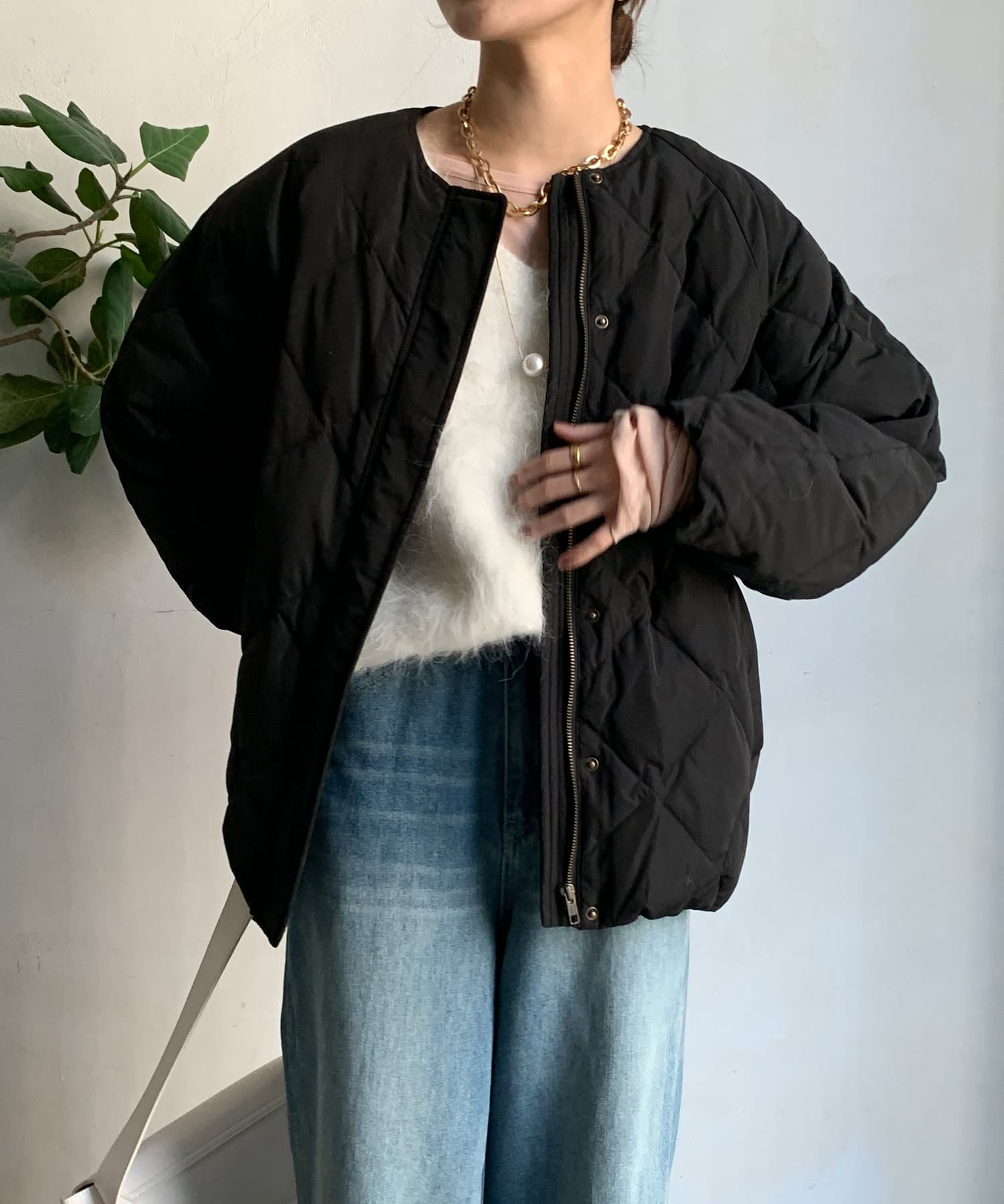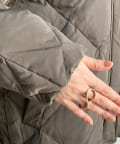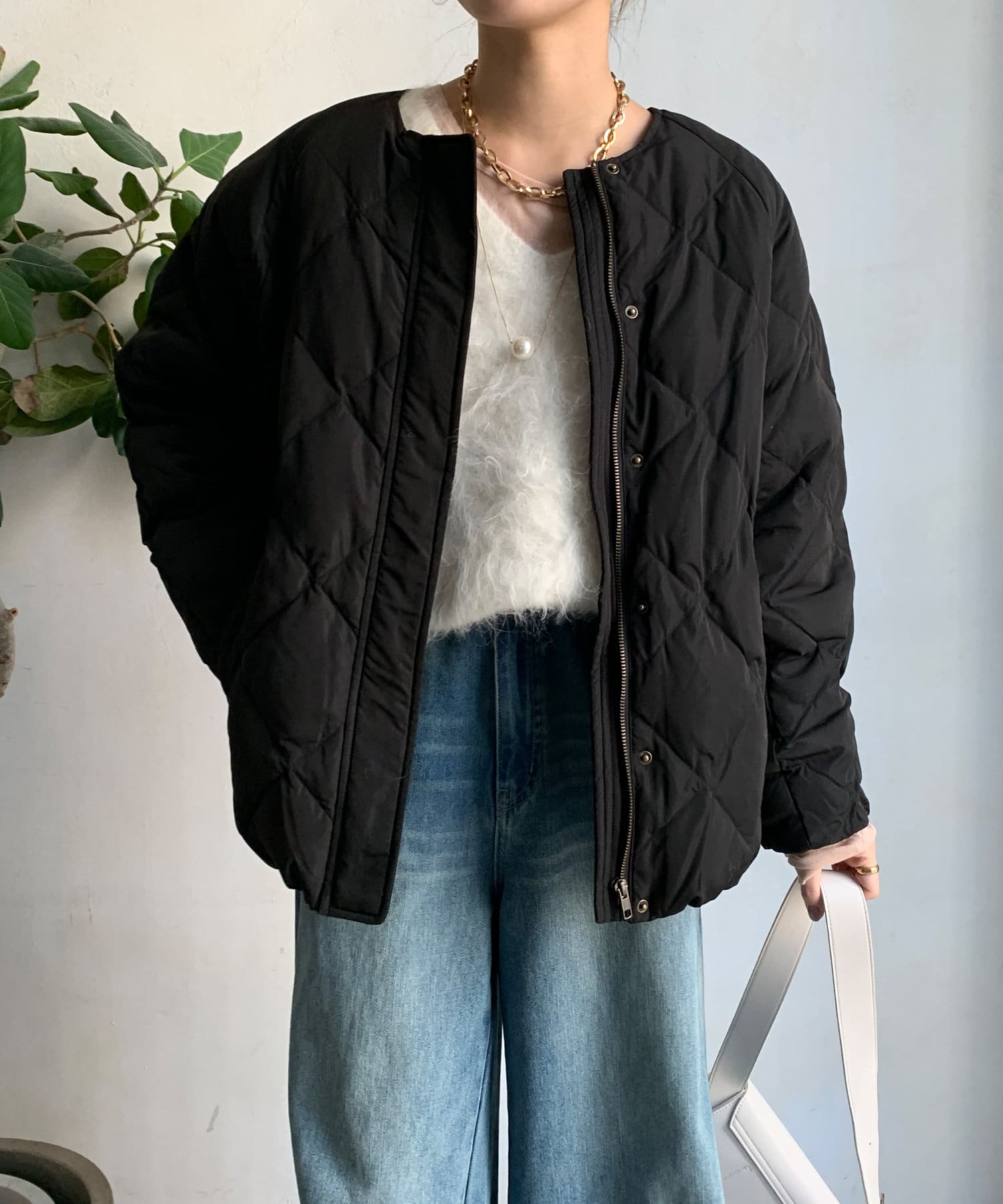 軽量で保温性にも優れた中綿素材で仕上げた大きめのダイヤ柄キルティングが、ポイントとなってくれます。