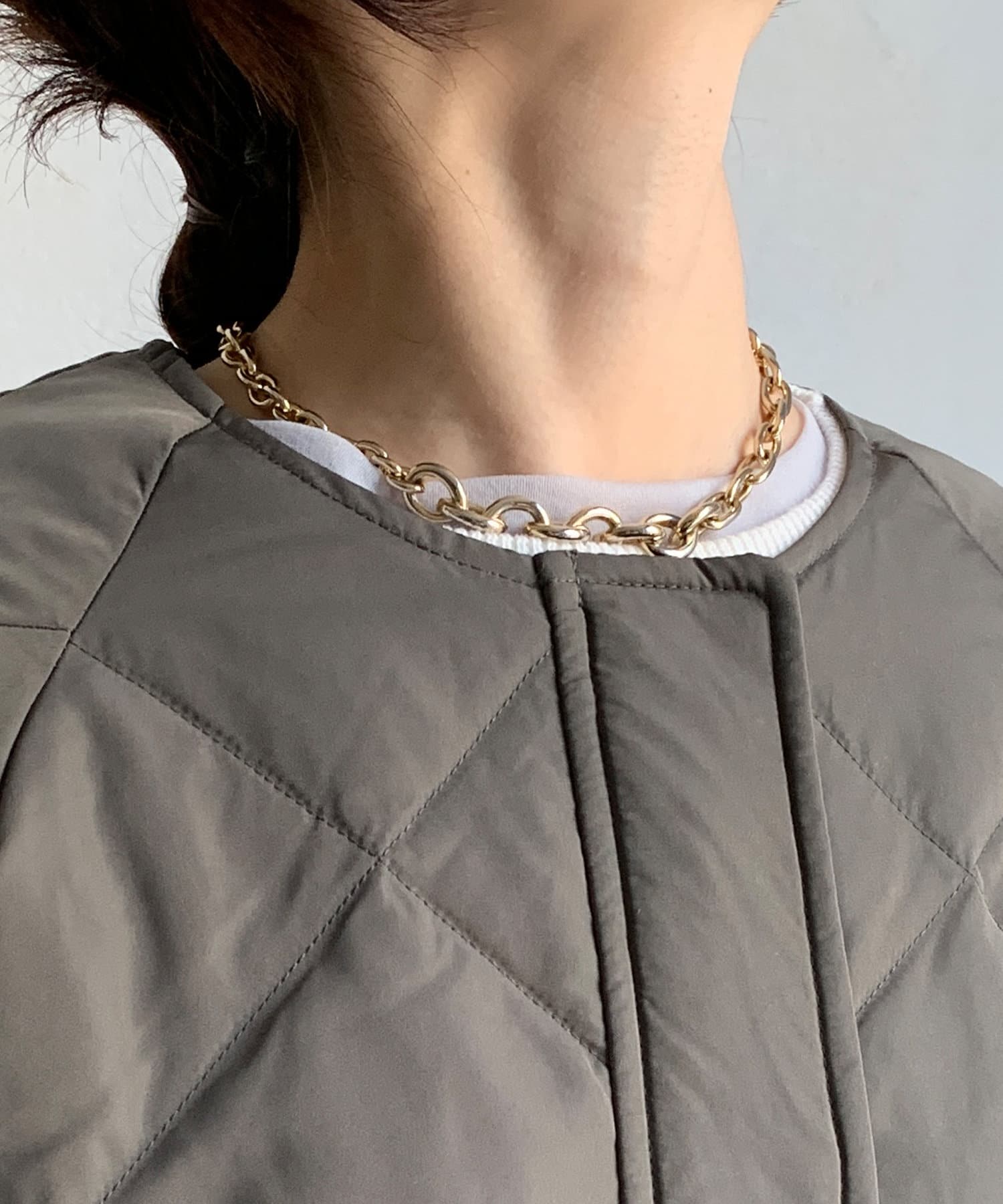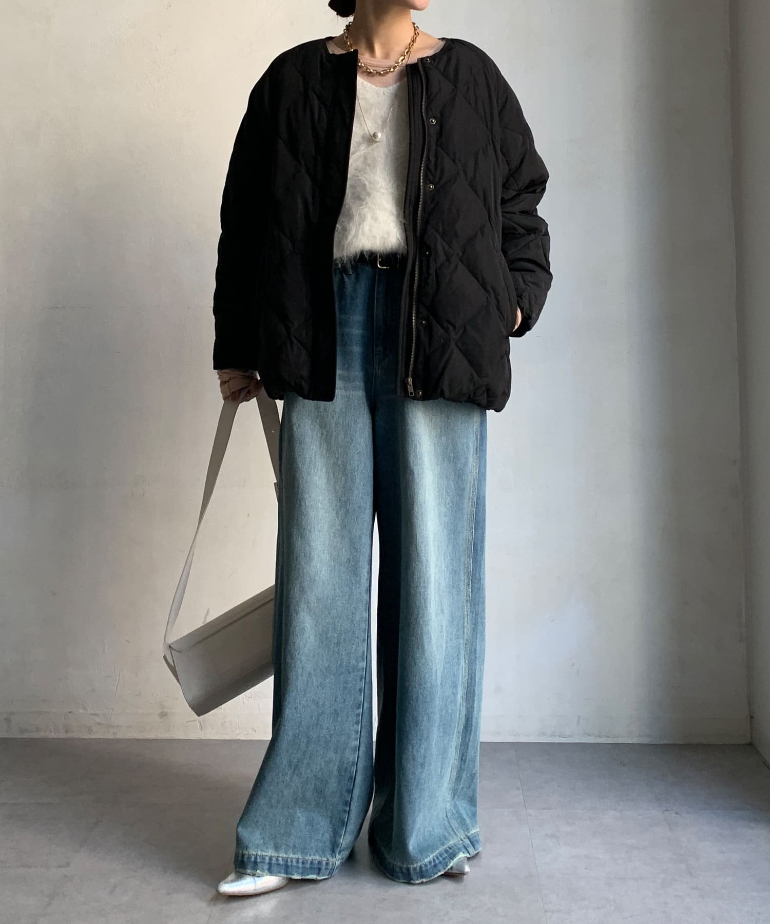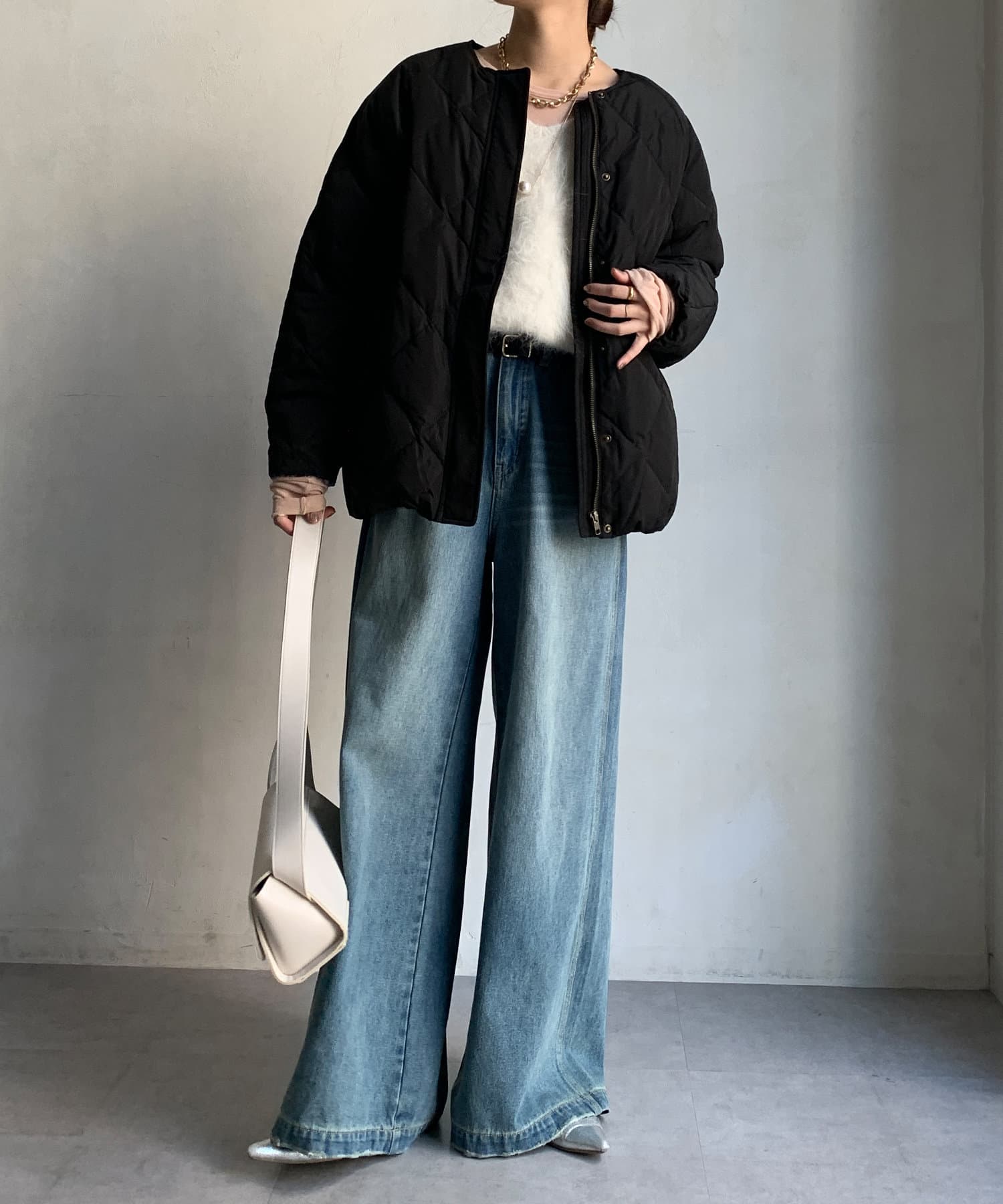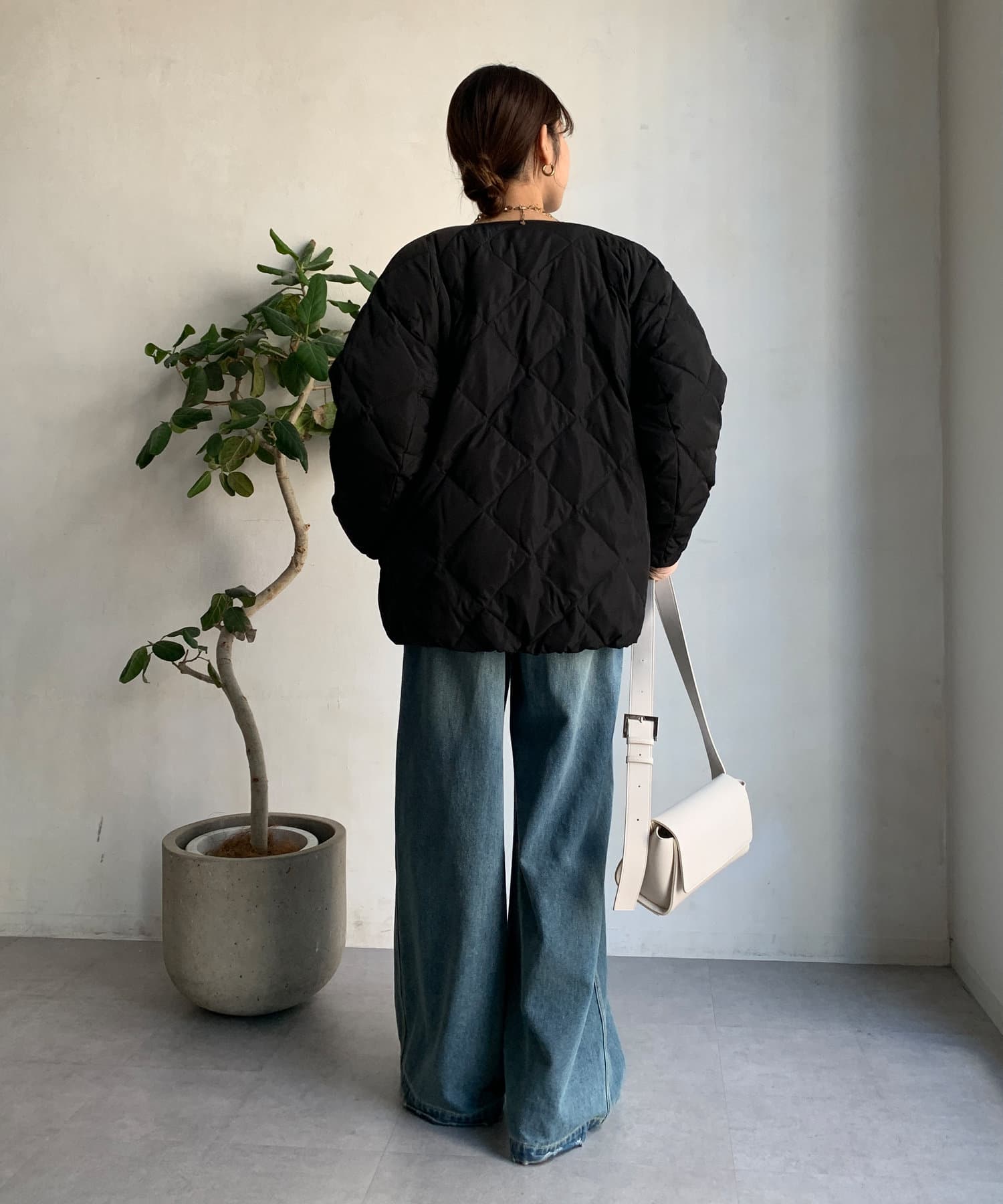 軽量で保温性にも優れた中綿素材で仕上げた大きめのダイヤ柄キルティングが、ポイントとなってくれます。