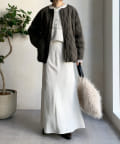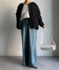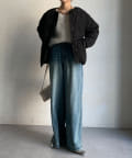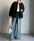 ハイネックニットを着た時やマフラーを巻くときなどに、首元がゴワつかずすっきりと着られるのが嬉しいノーカラーデザインもうれしいポイント。