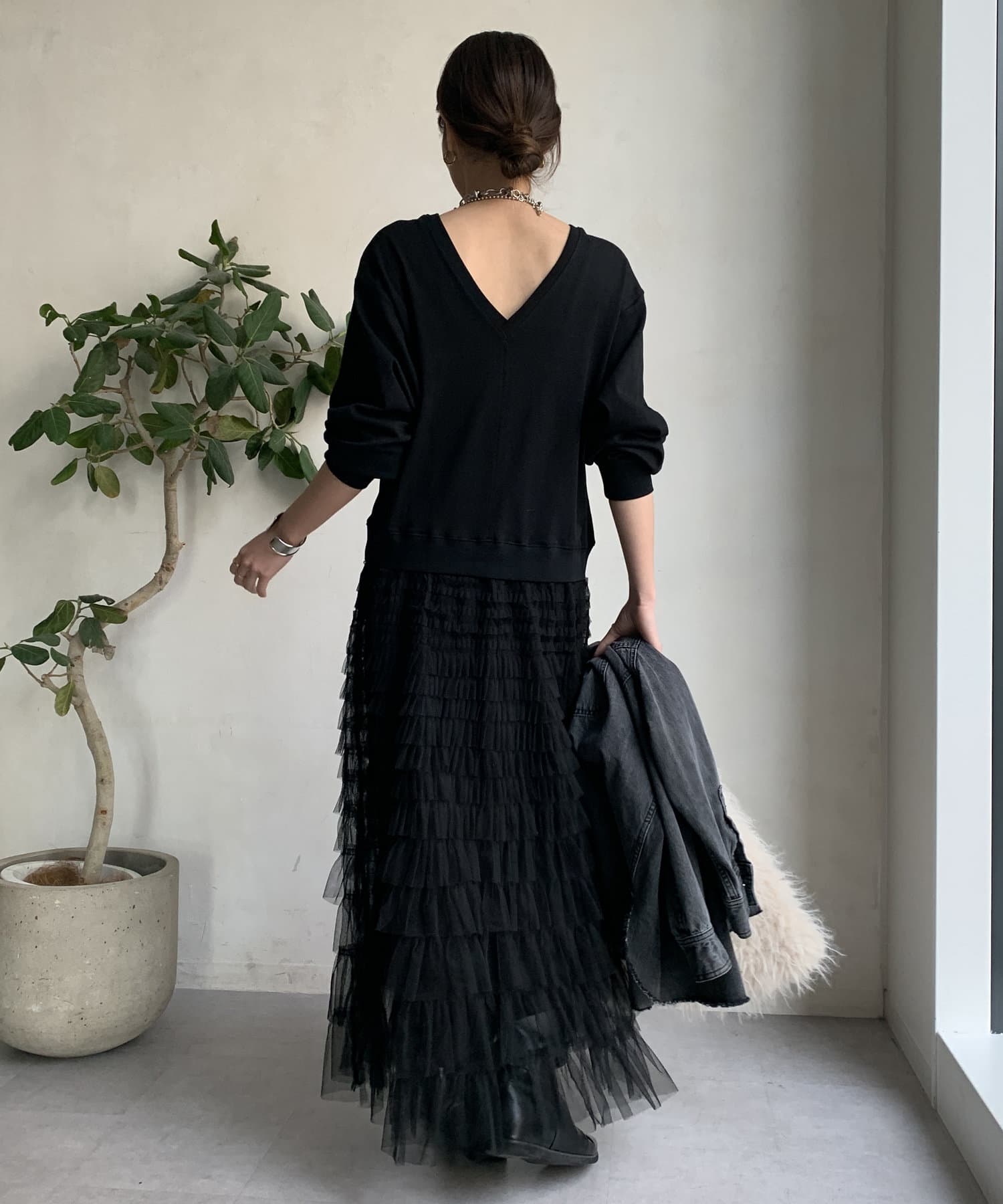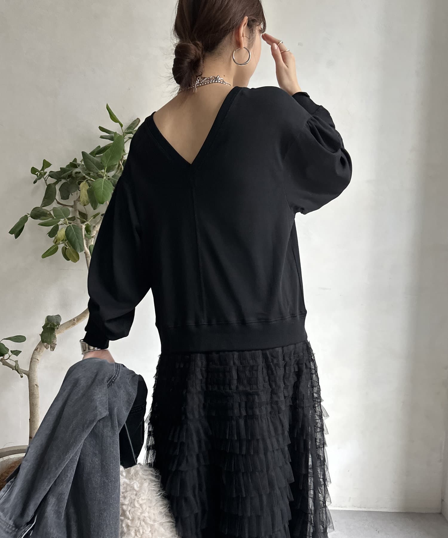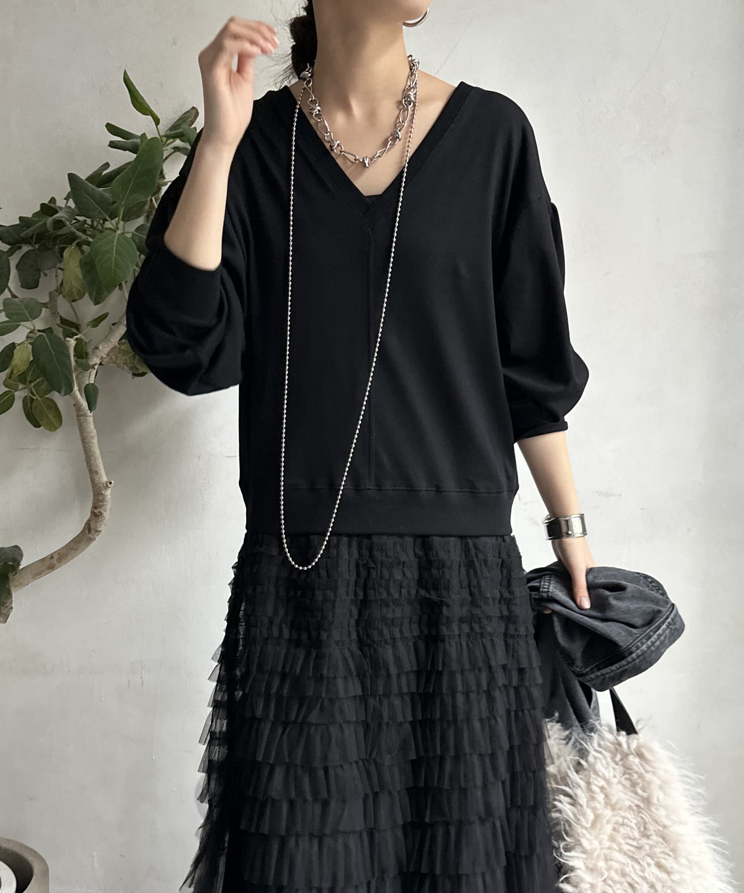 Vネックカットソーとチュールスカートがドッキングされたワンピース!