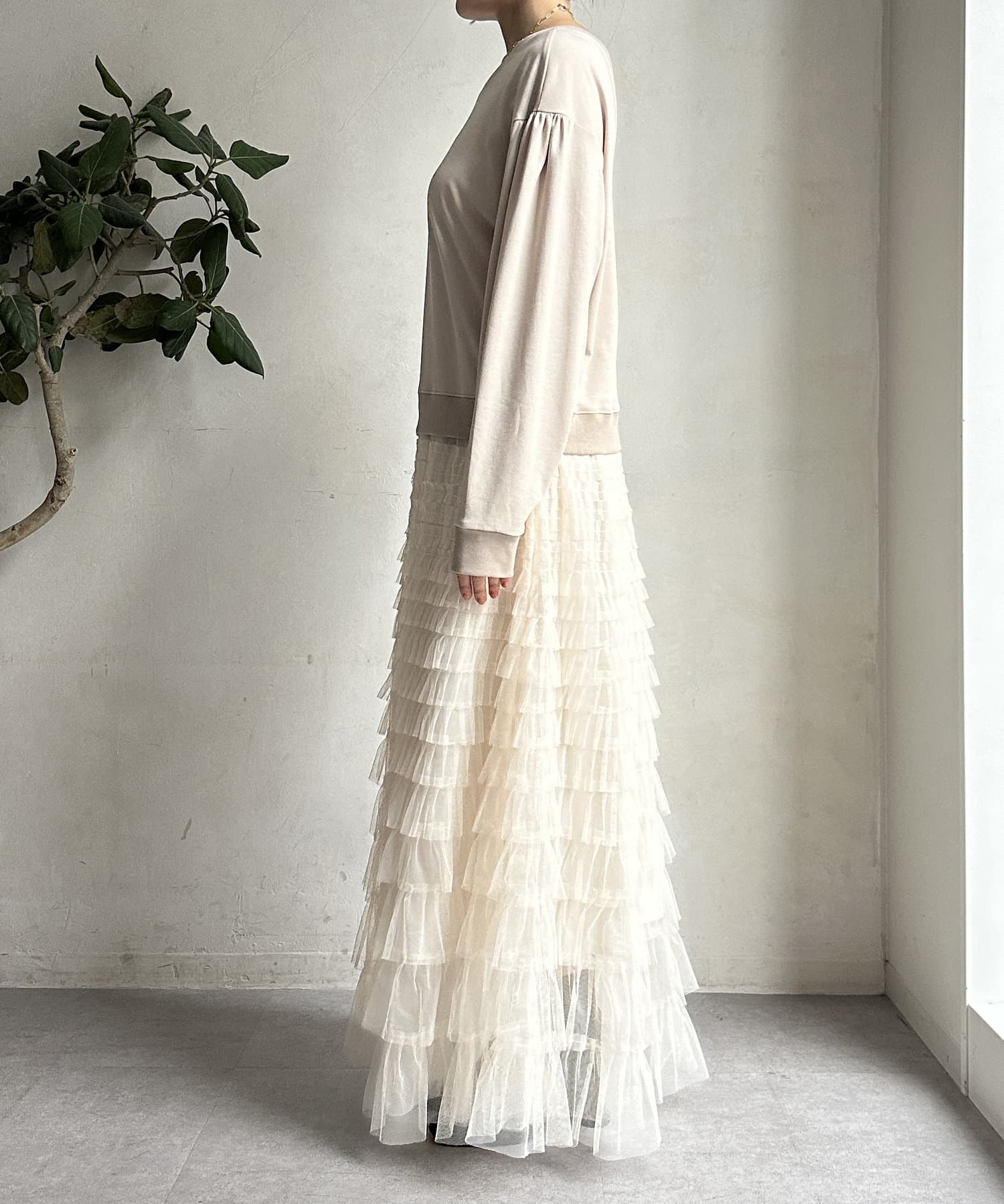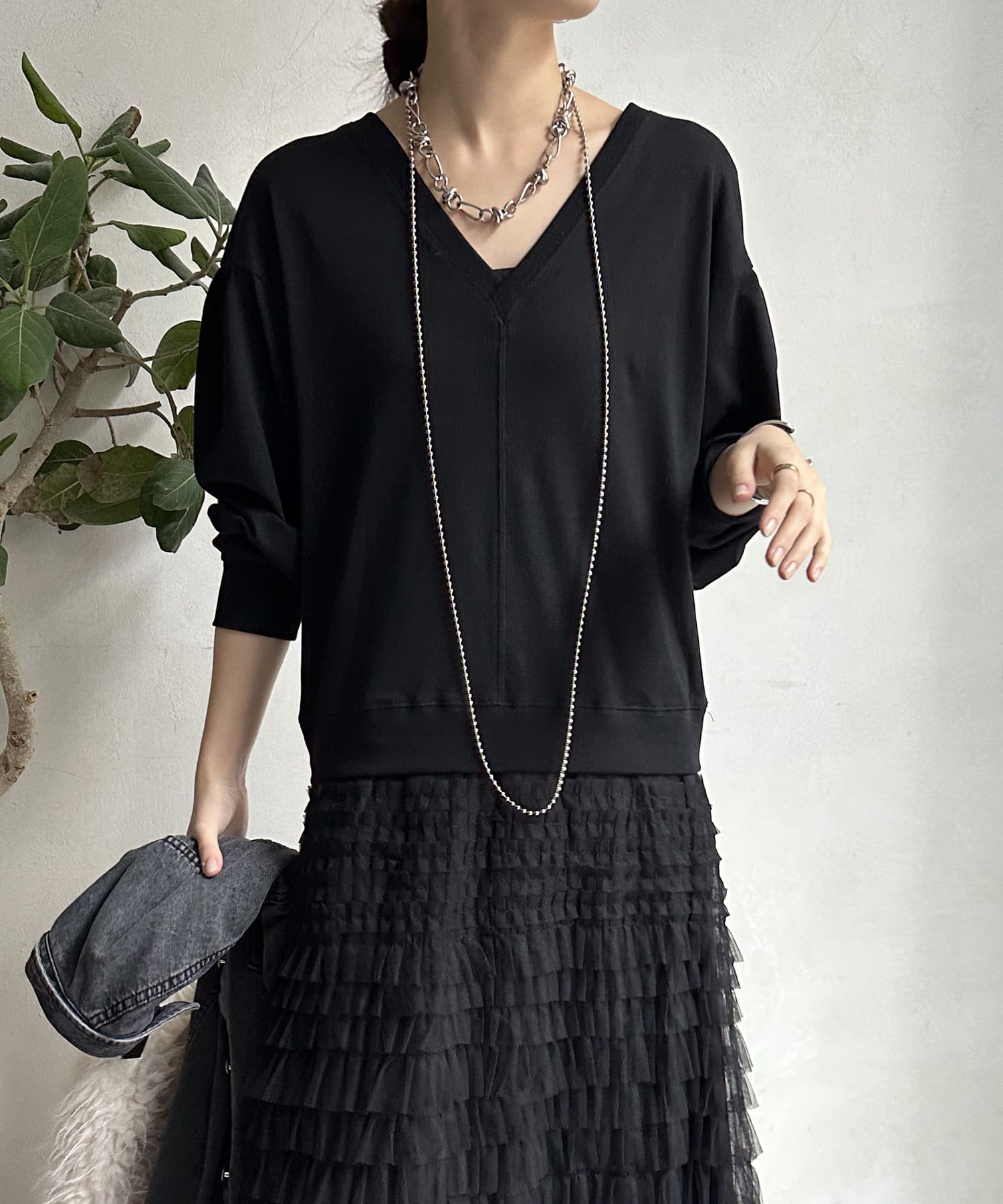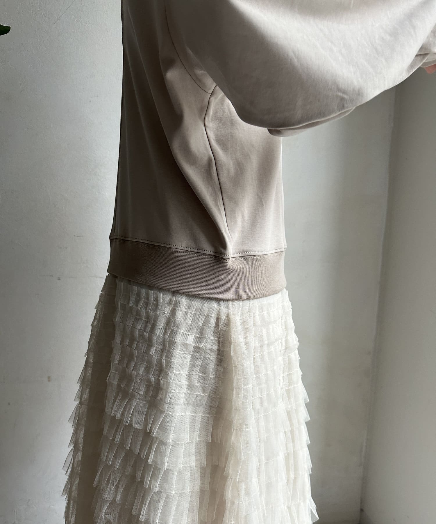 Vネックカットソーとチュールスカートがドッキングされたワンピース!