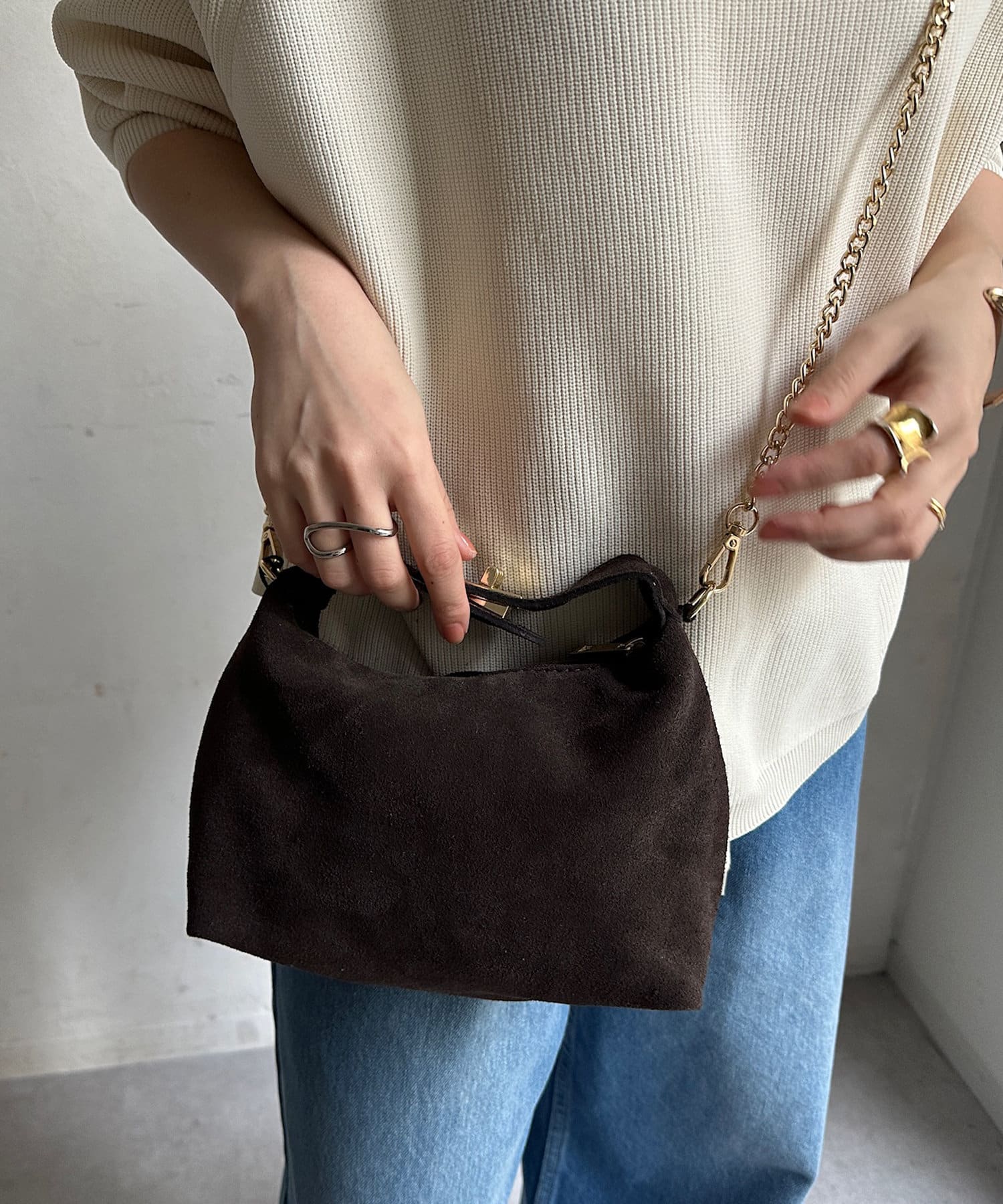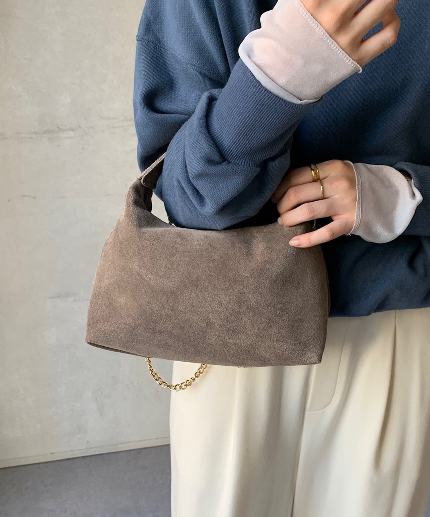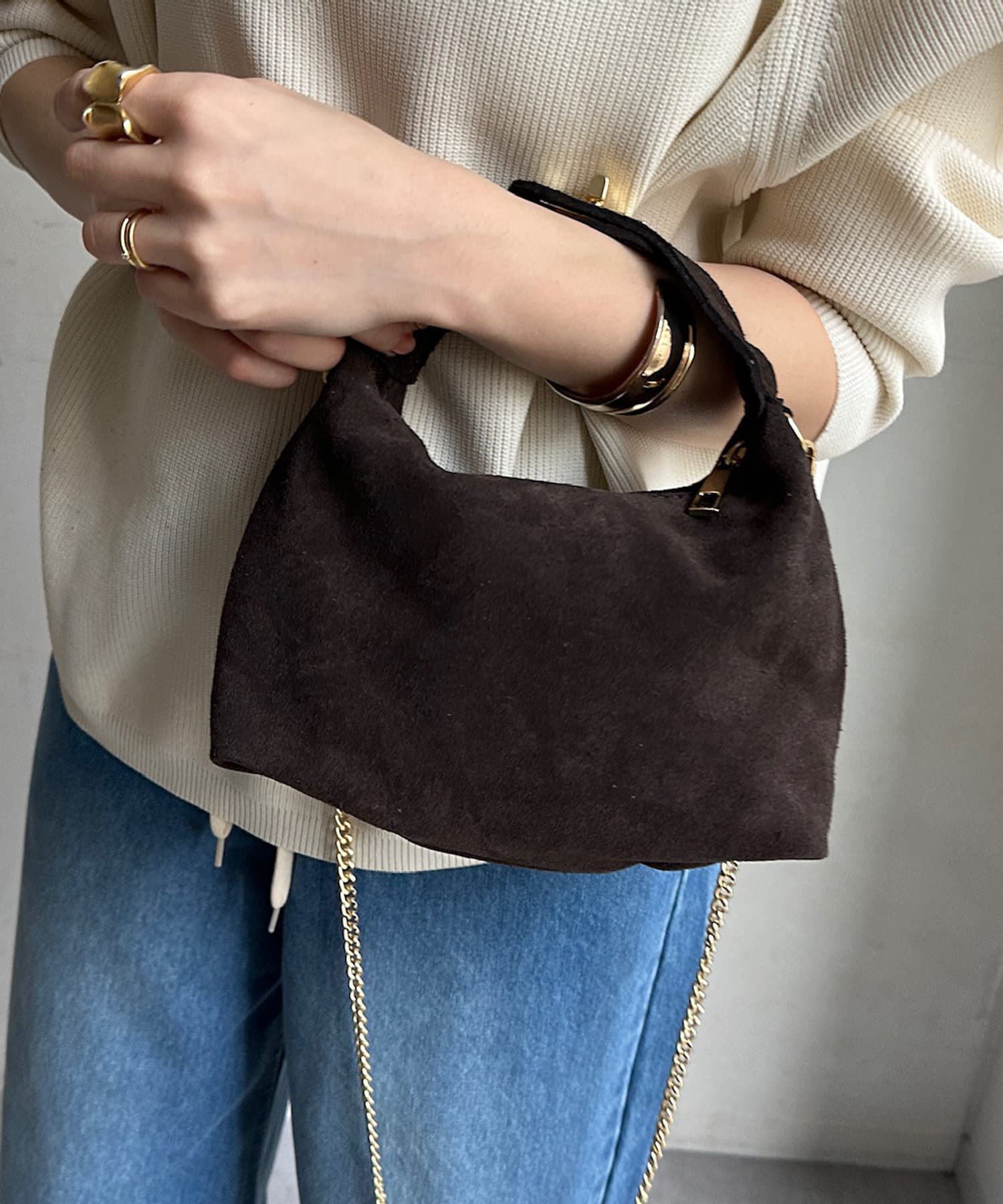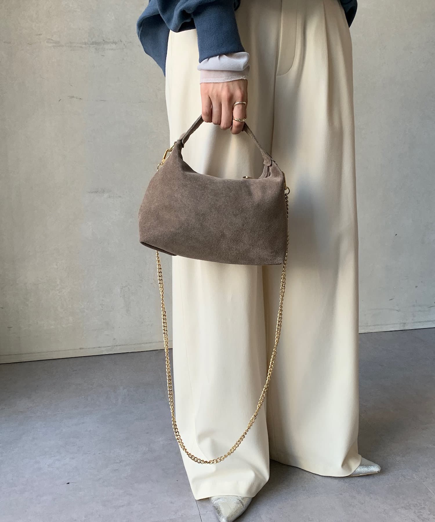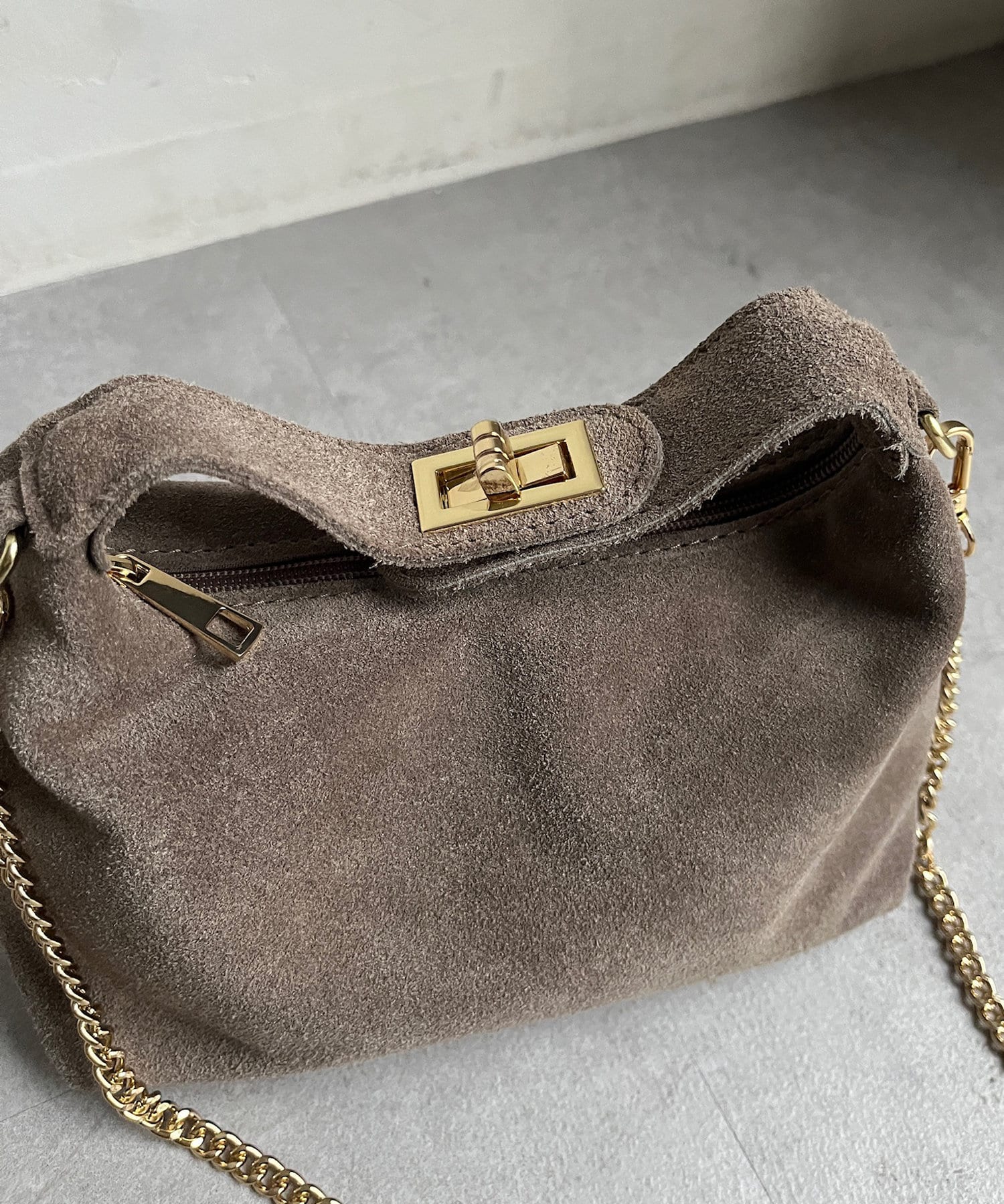 スエードハンドルバッグ