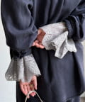 お袖はフレアに広がるシルエットのため、ニットやスウェットからだしたスタイルがおすすめ。