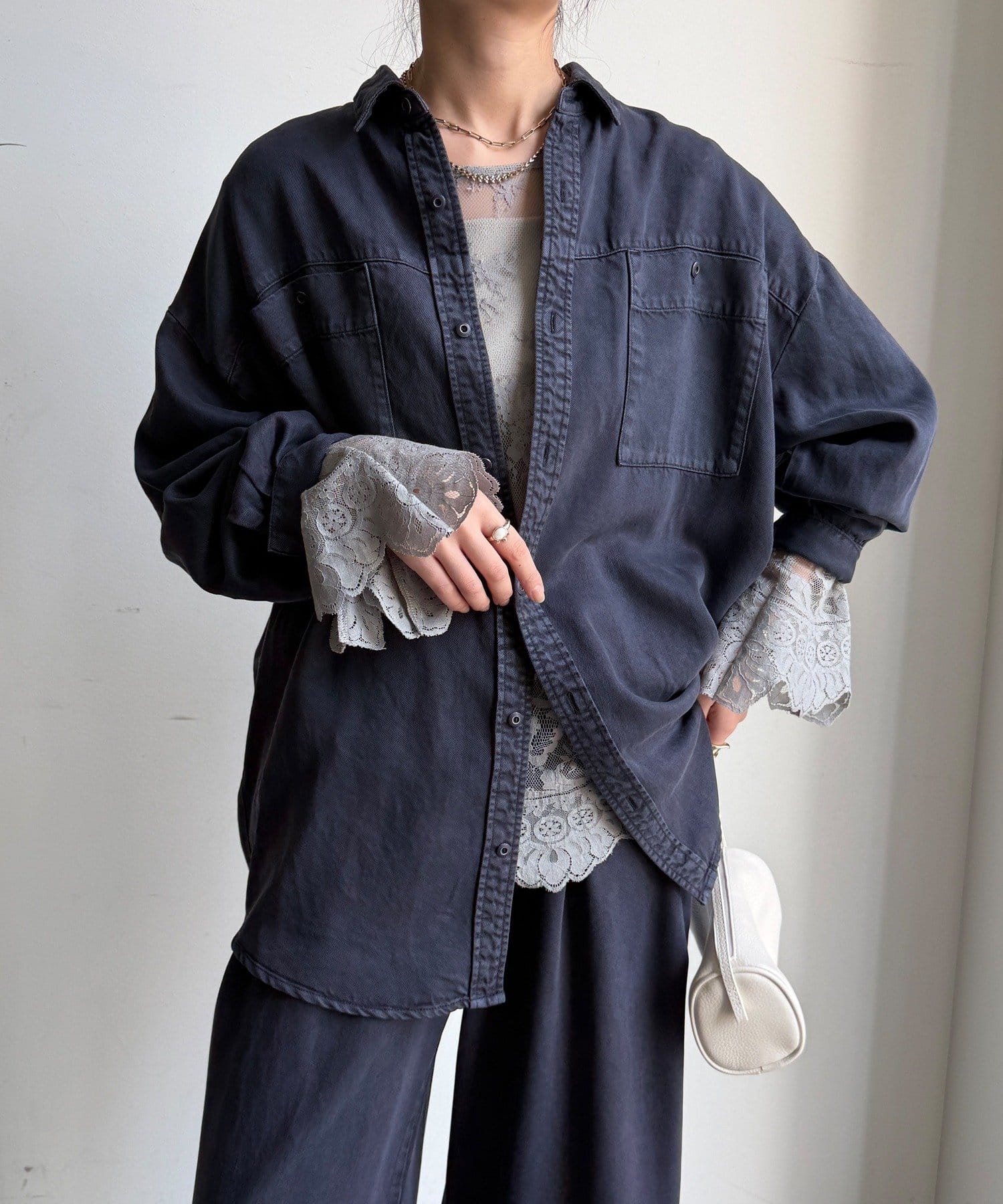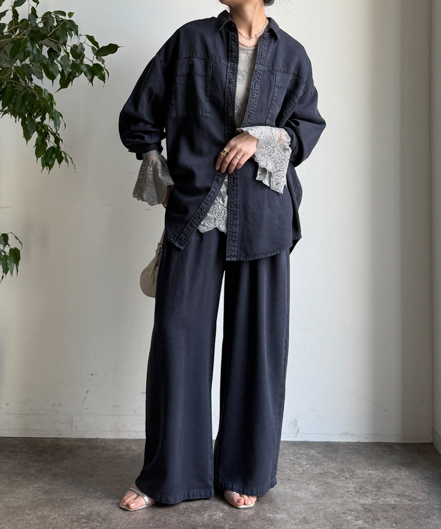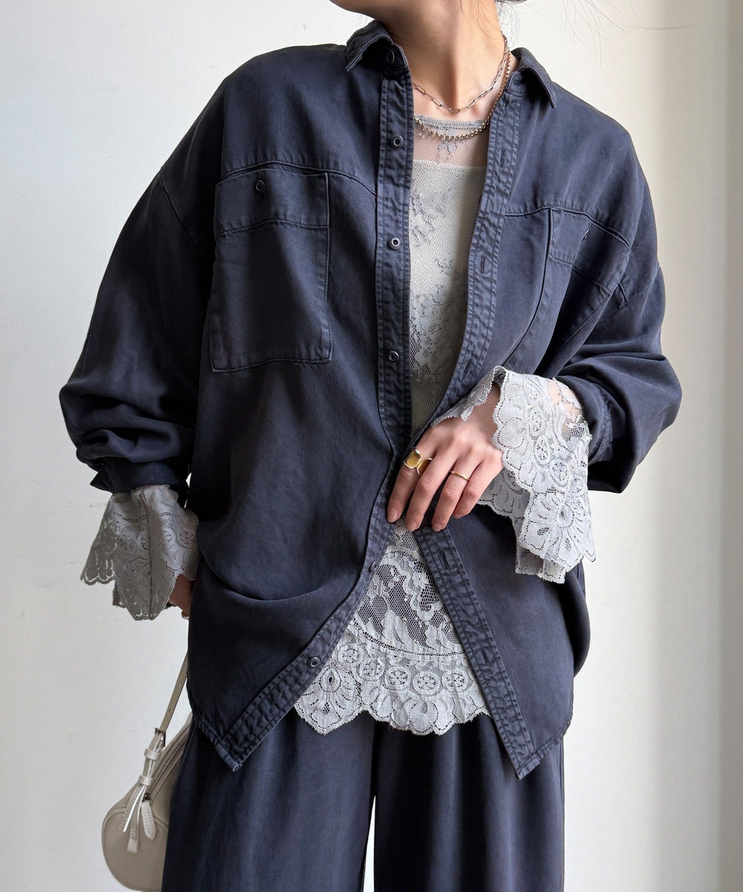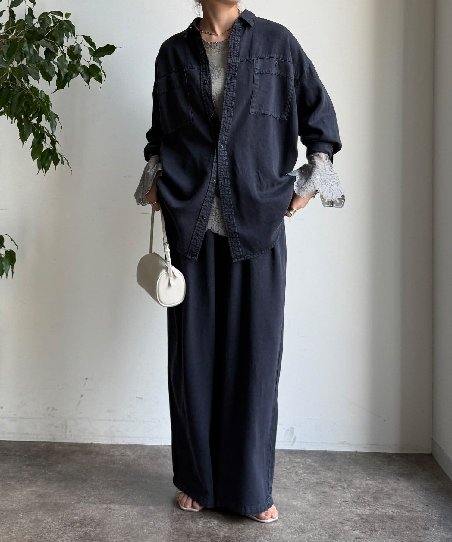 総レースの素材でコーディネートに少し甘めの要素をプラスしてくれます。