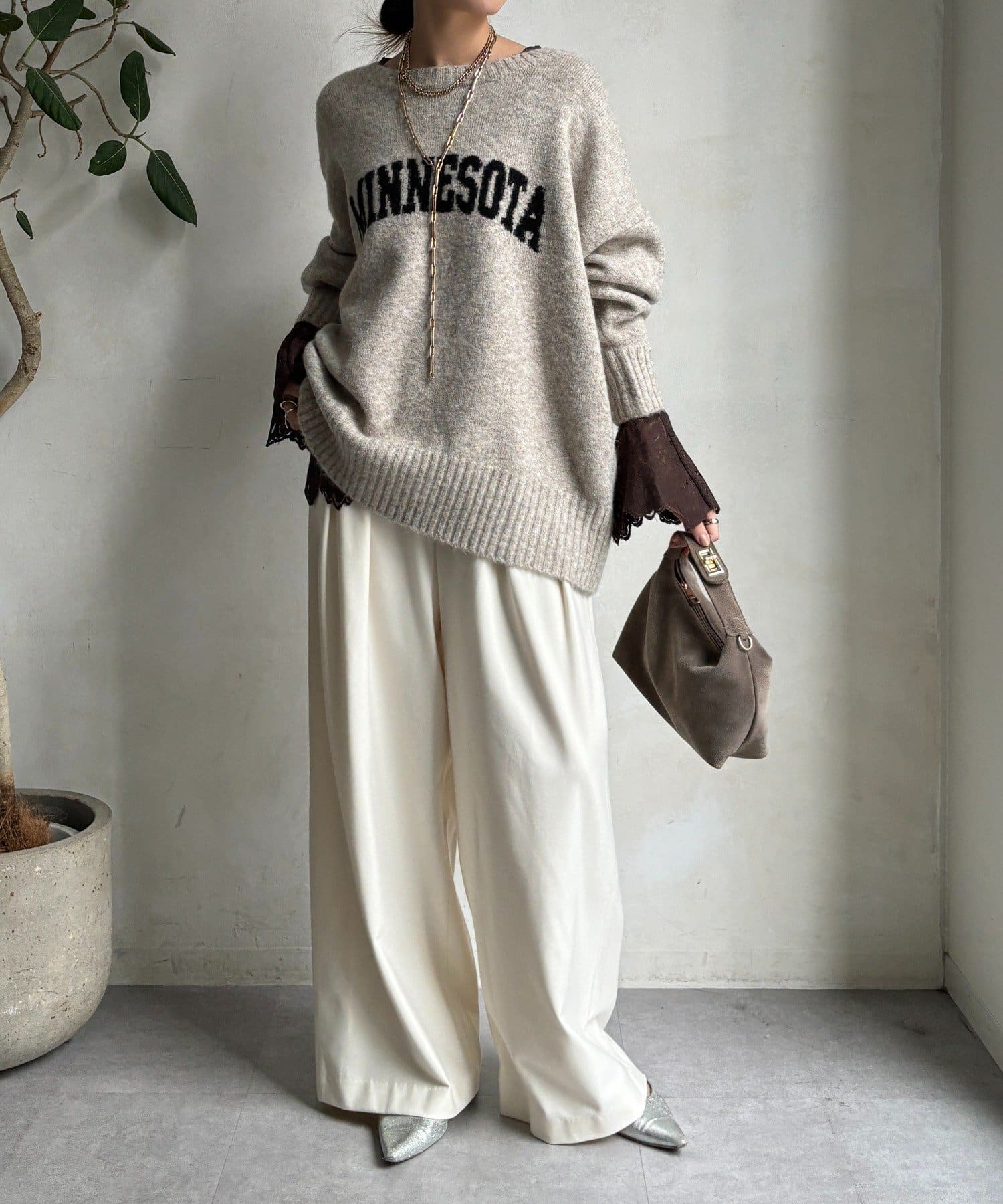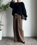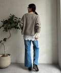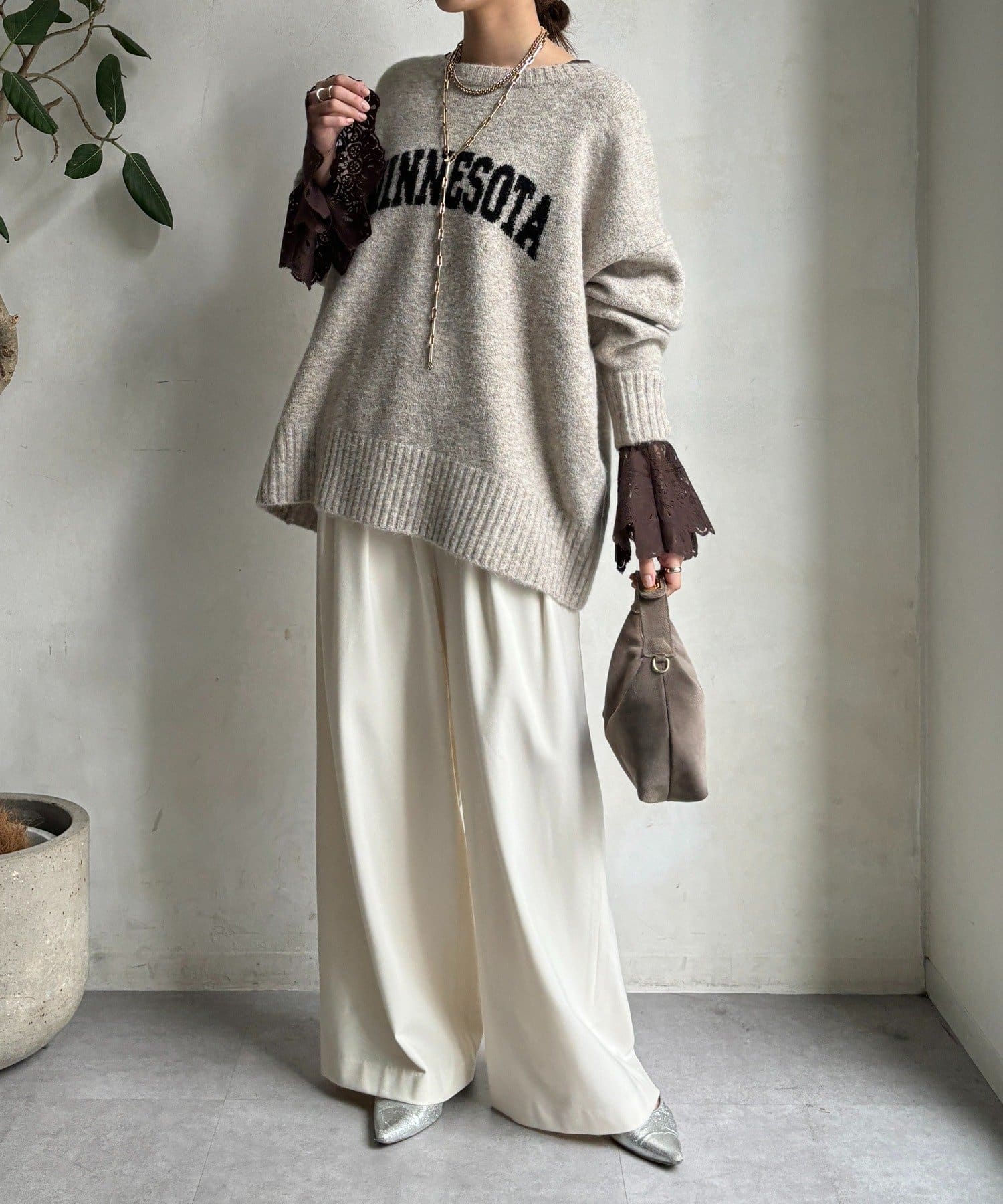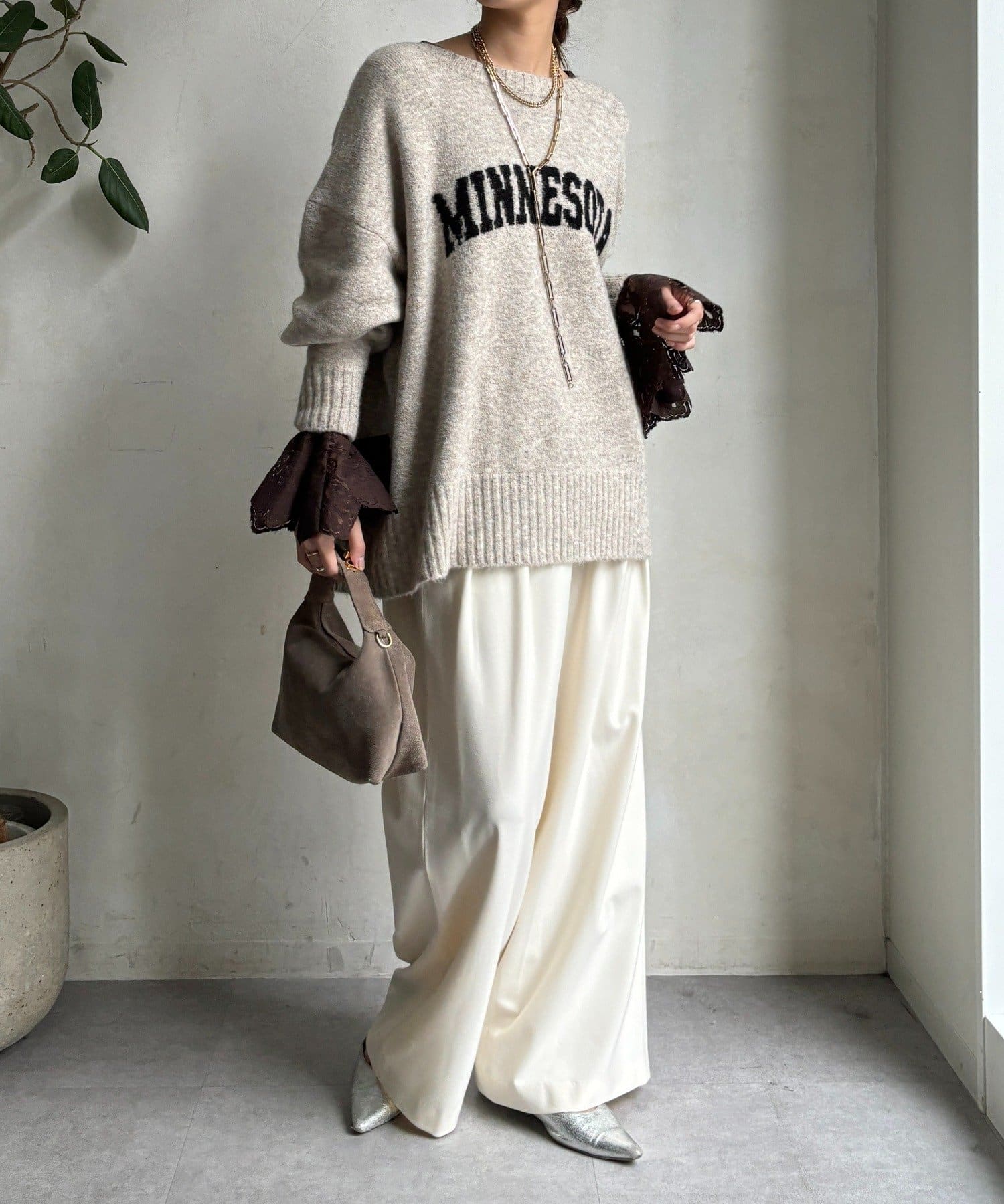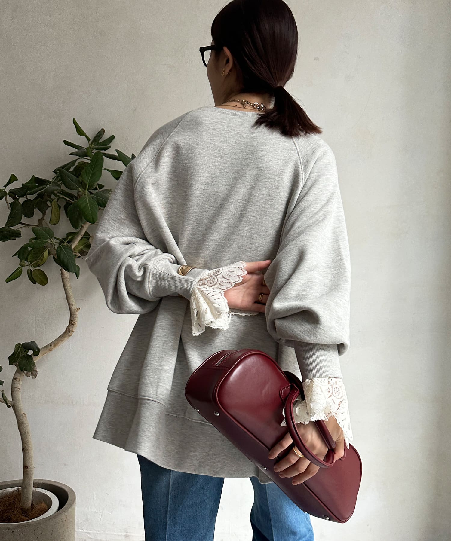 お袖はフレアに広がるシルエットのため、ニットやスウェットからだしたスタイルがおすすめ。