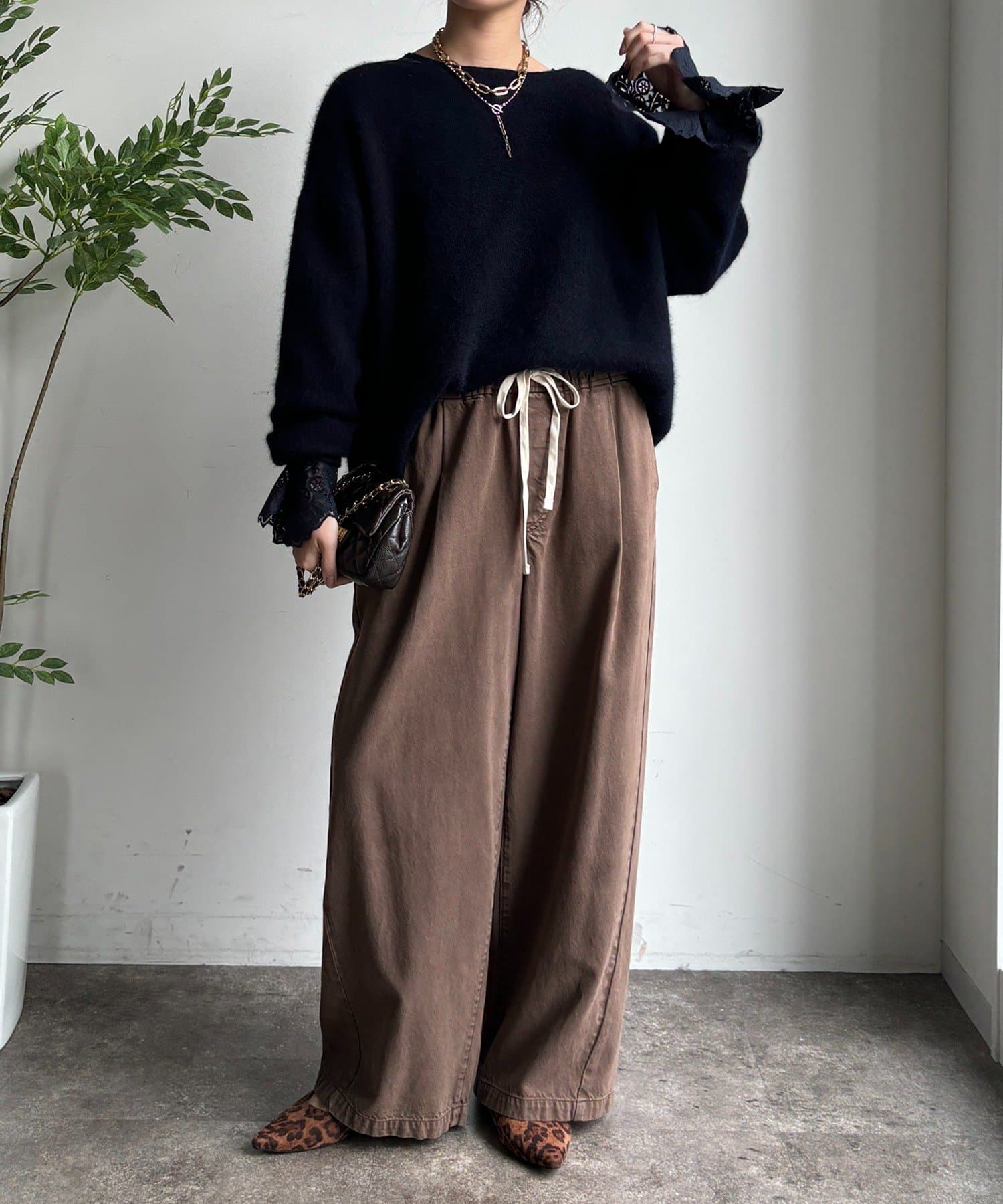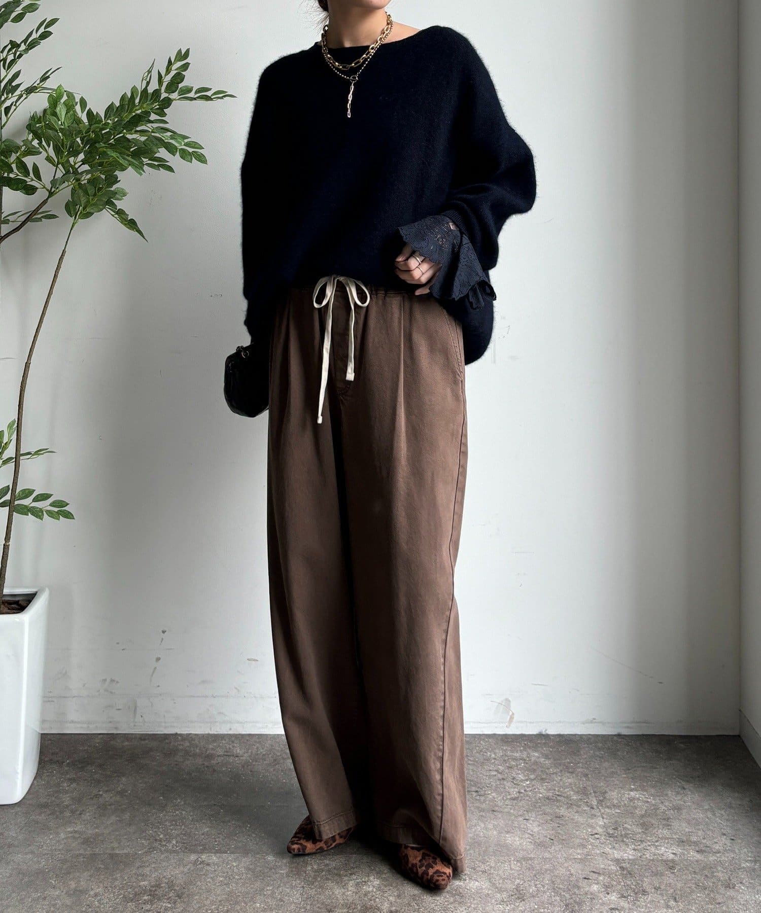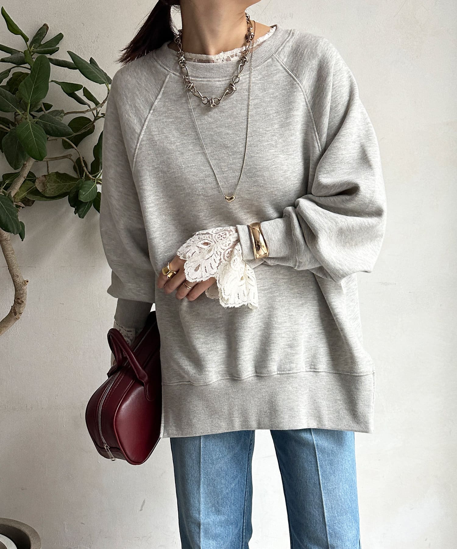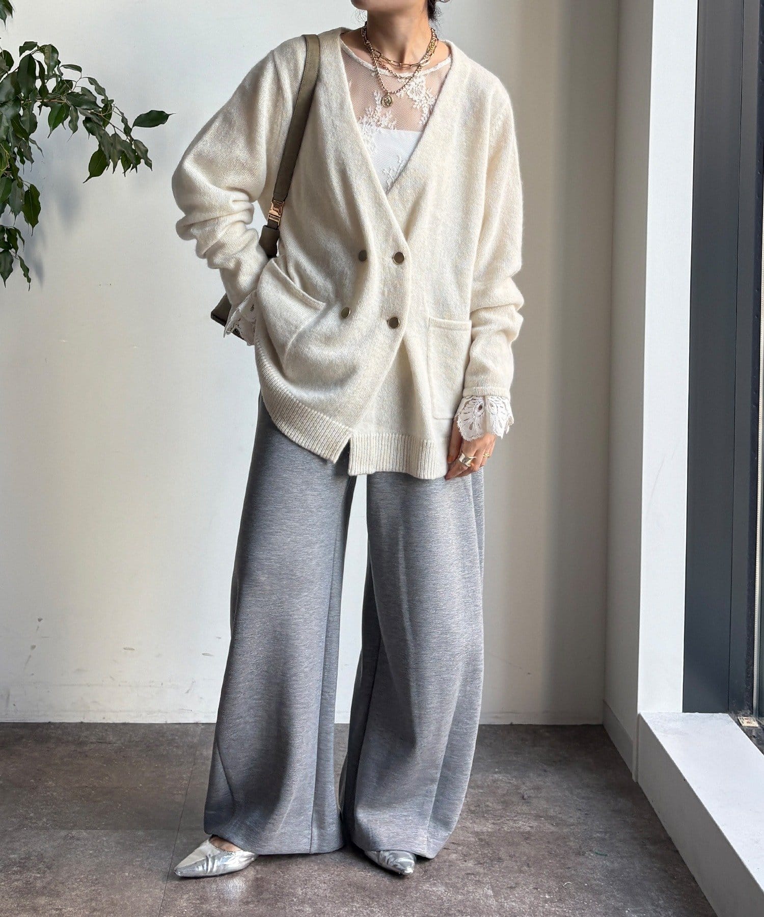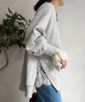 お袖はフレアに広がるシルエットのため、ニットやスウェットからだしたスタイルがおすすめ。