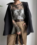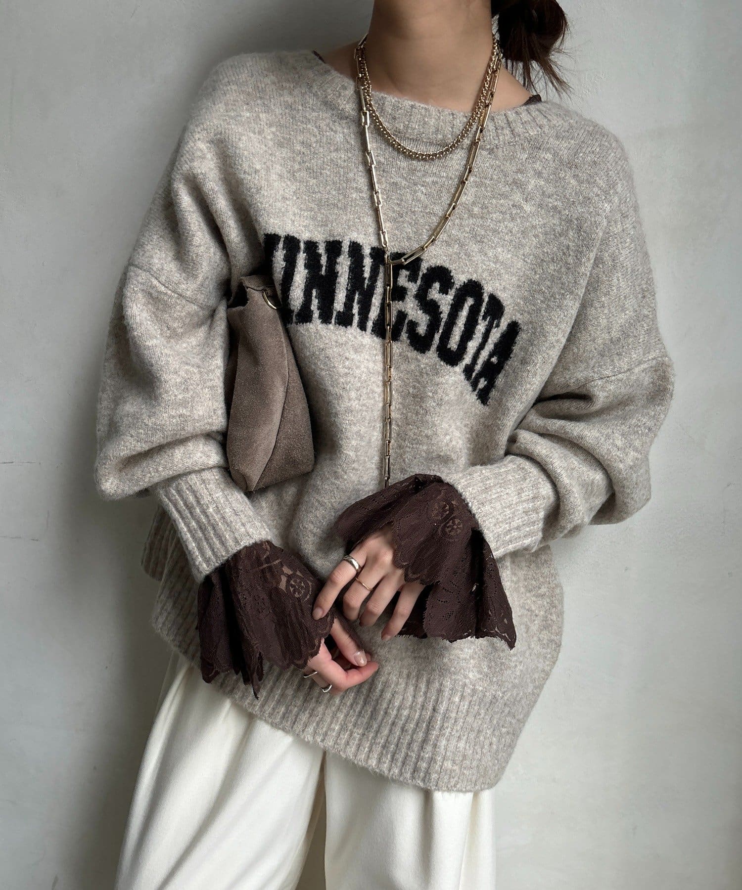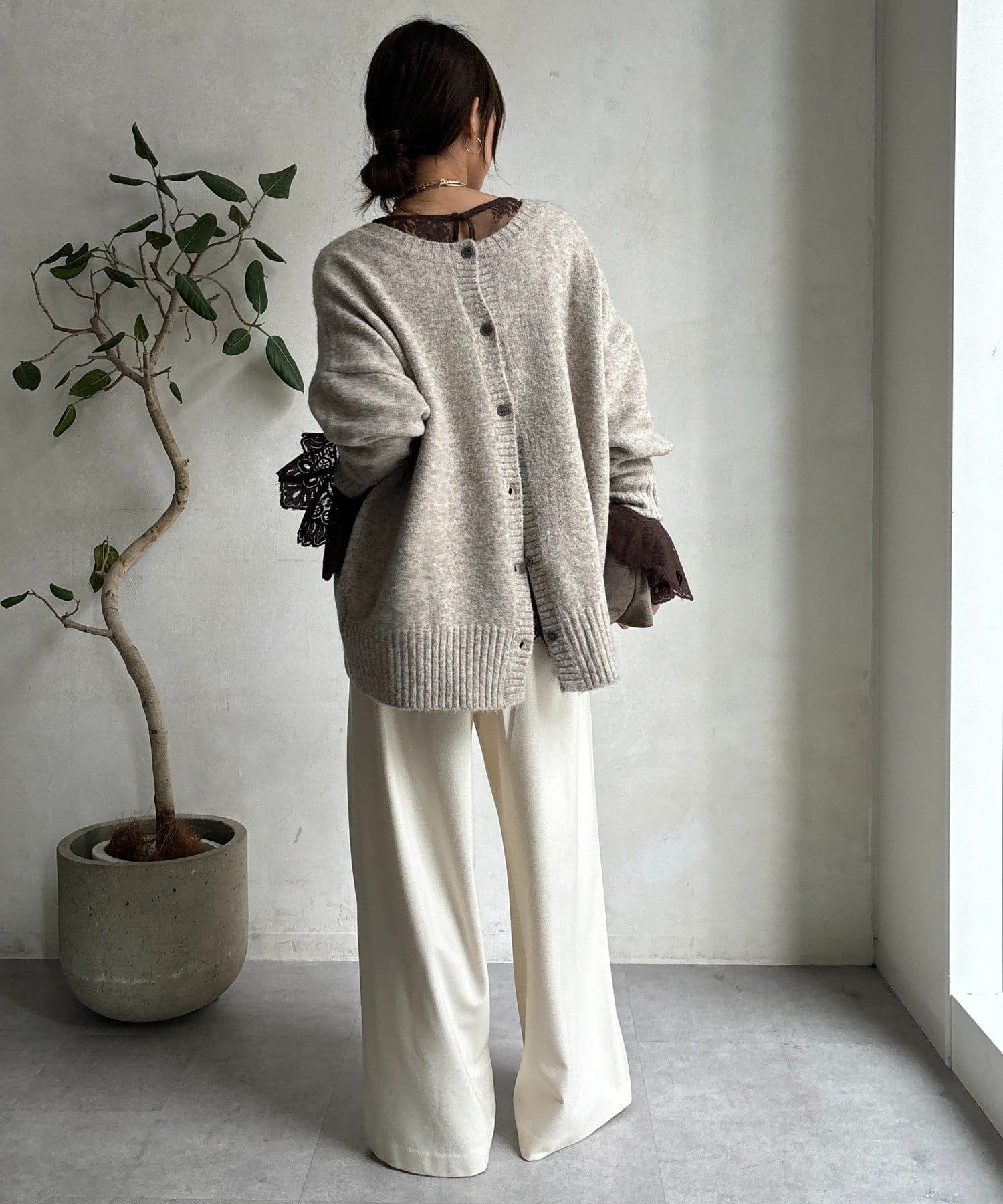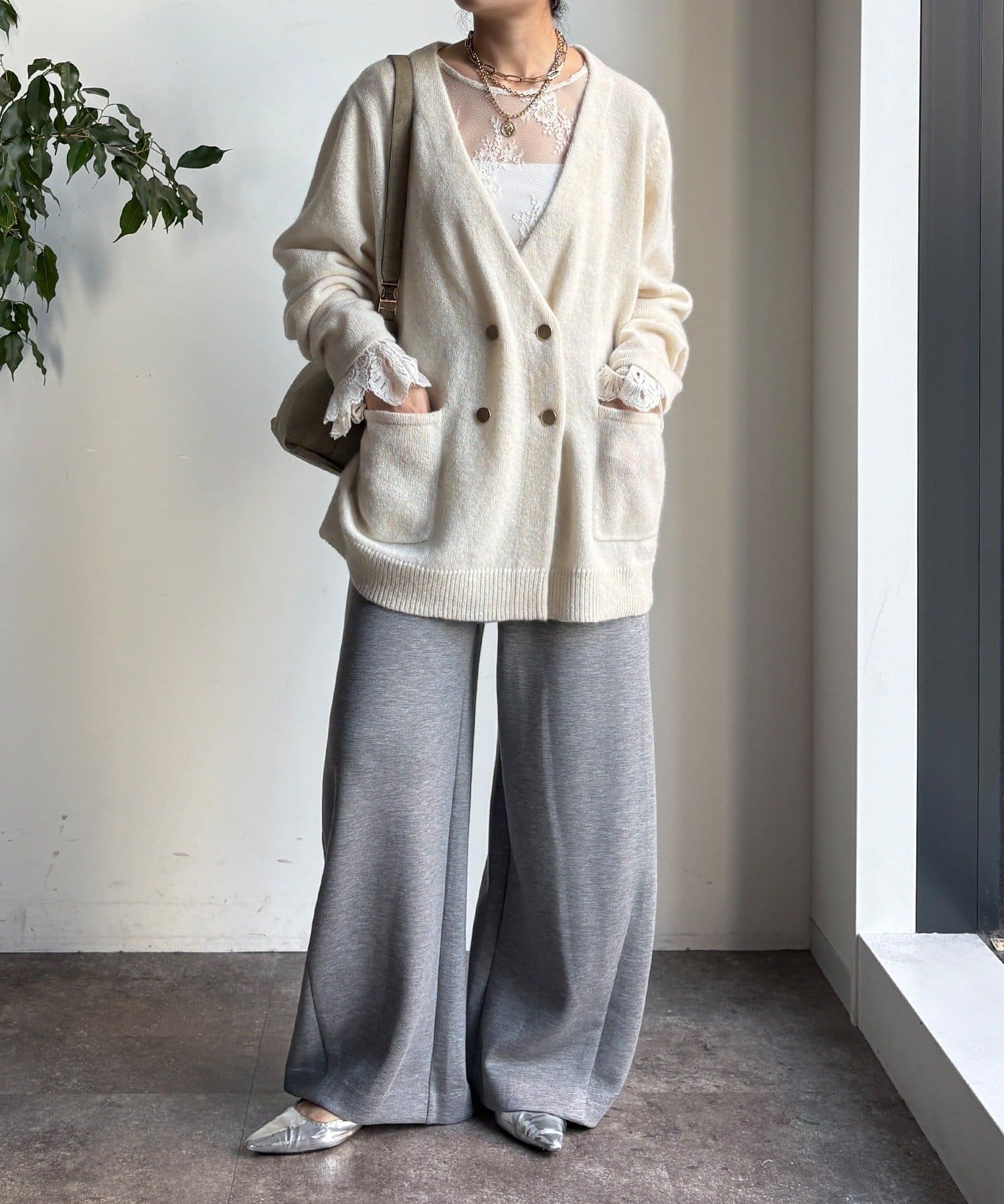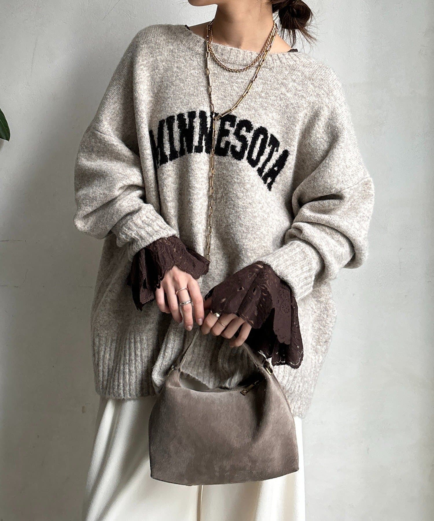お袖はフレアに広がるシルエットのため、ニットやスウェットからだしたスタイルがおすすめ。