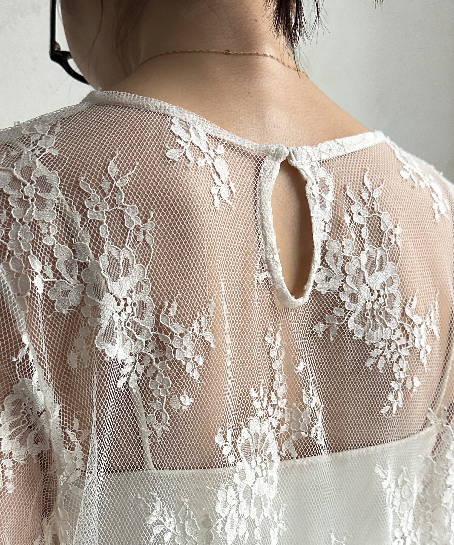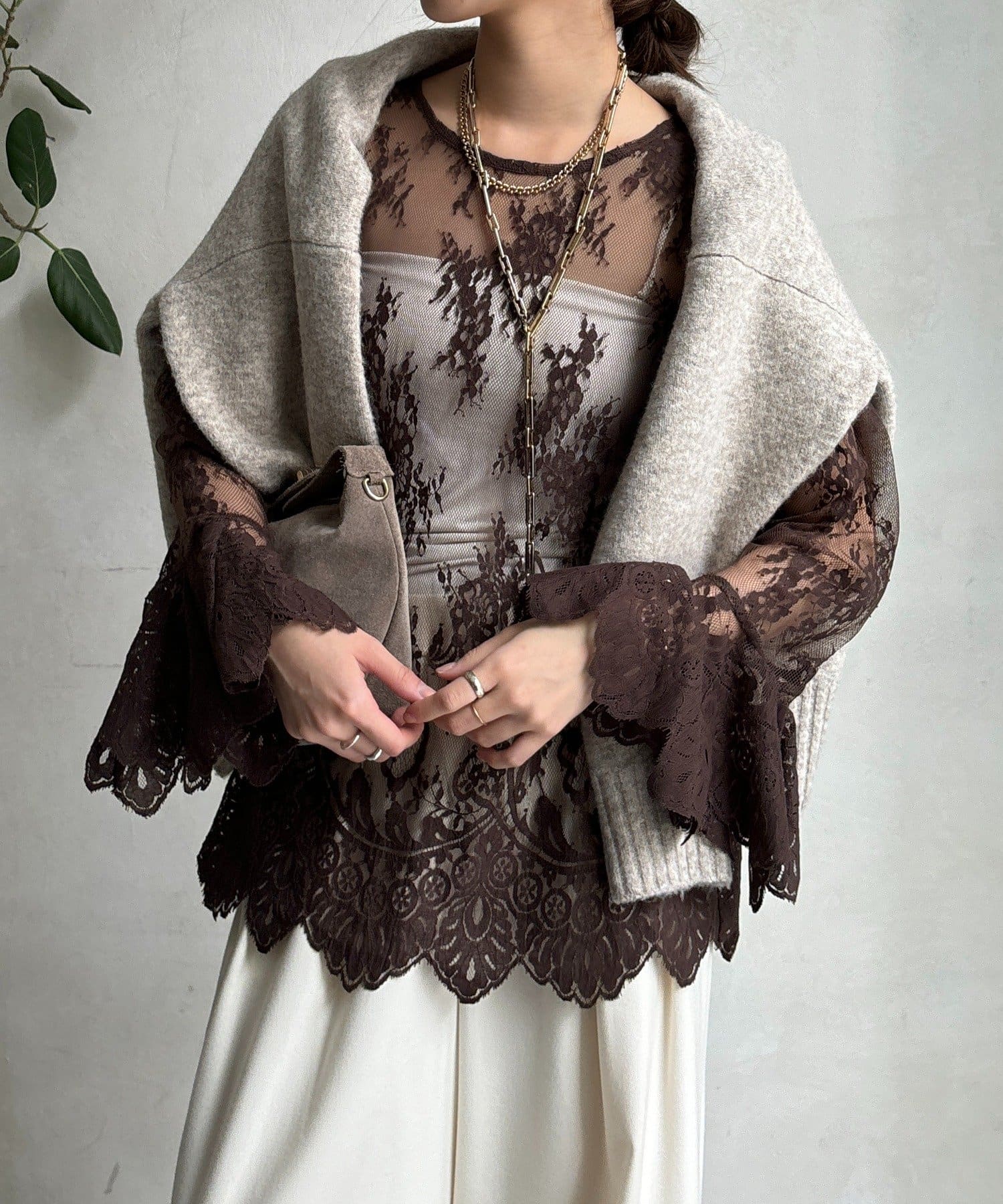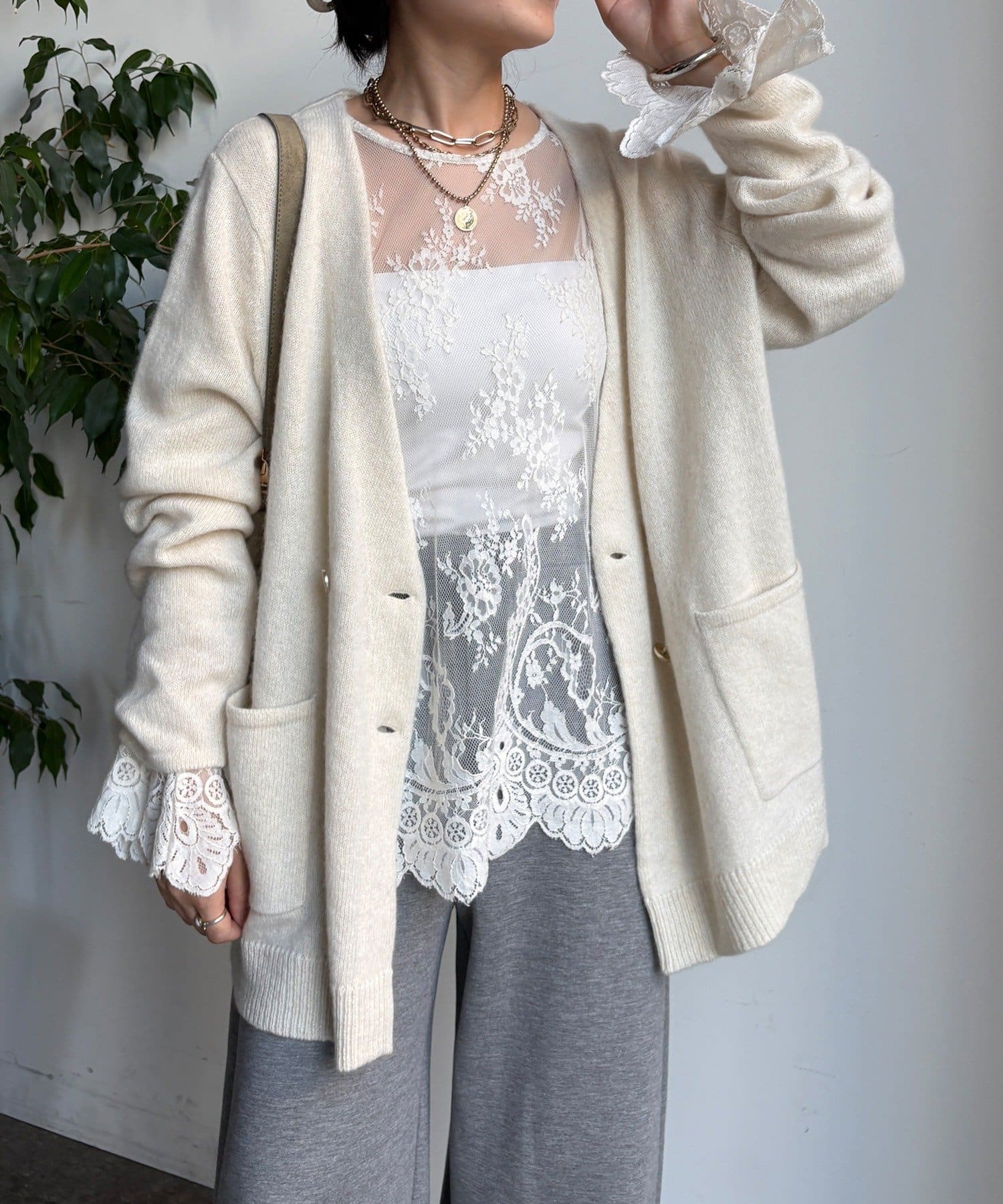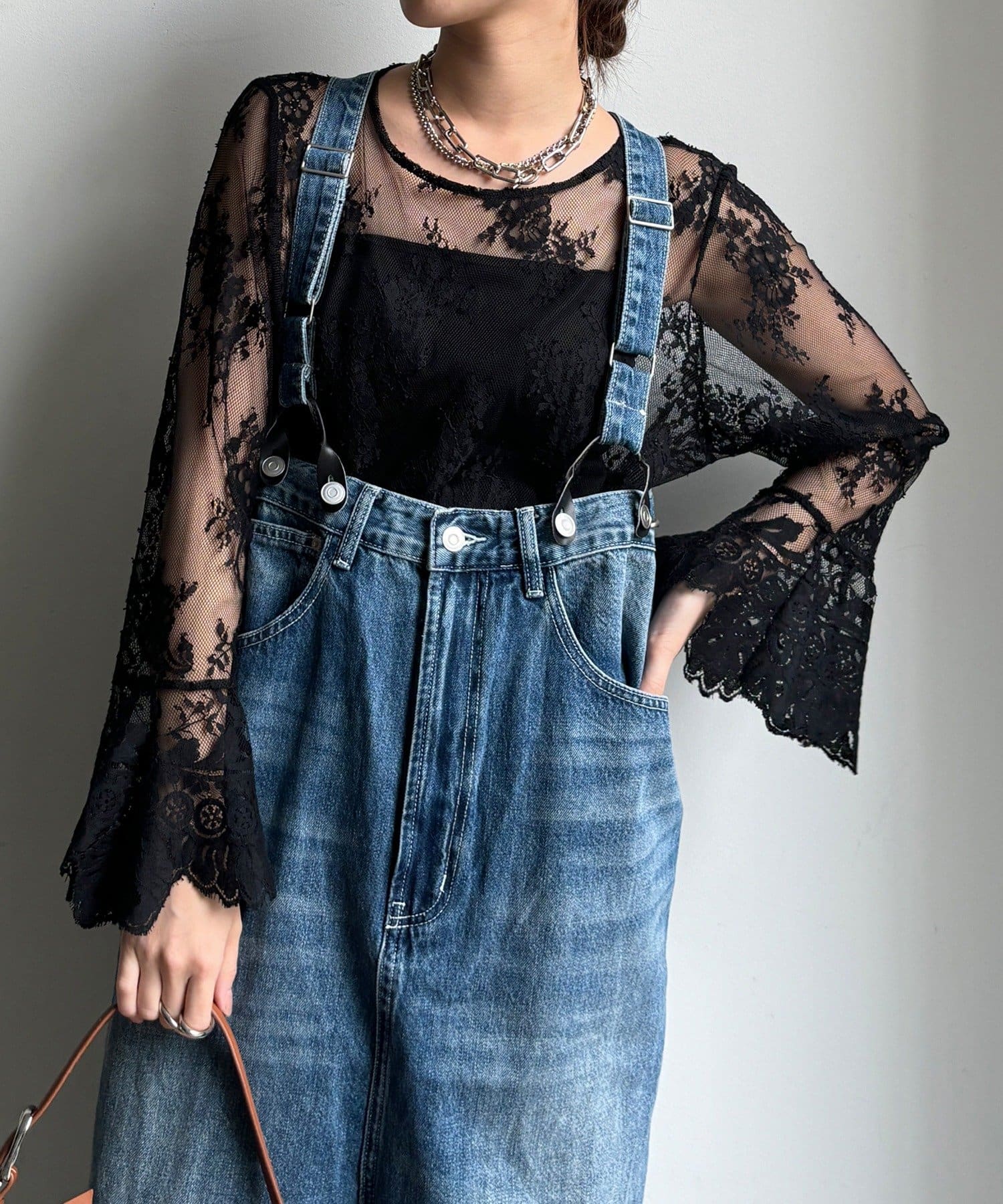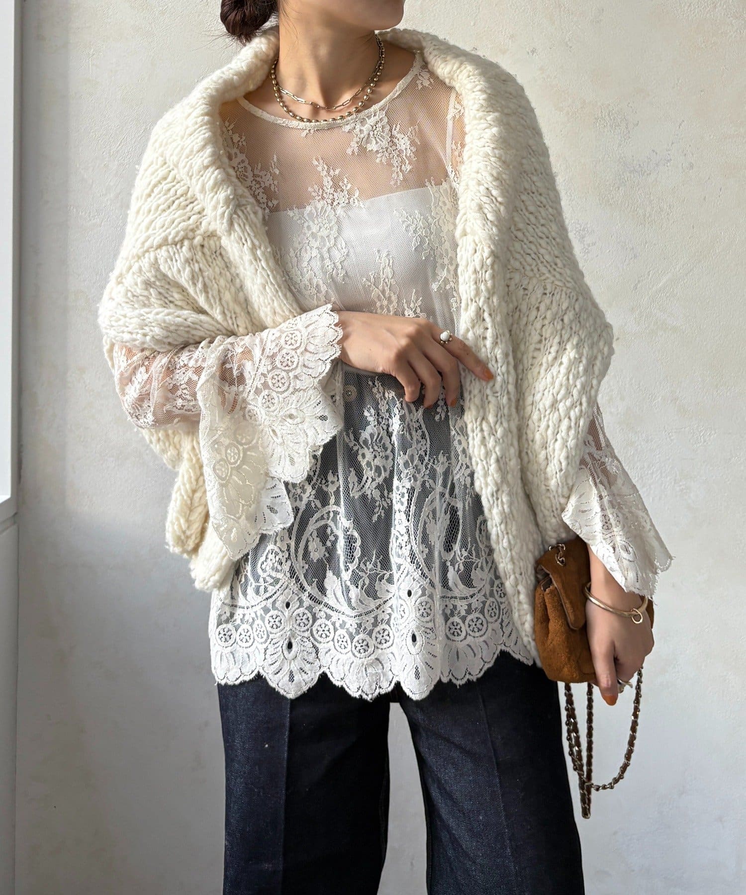 総レースの素材でコーディネートに少し甘めの要素をプラスしてくれます。