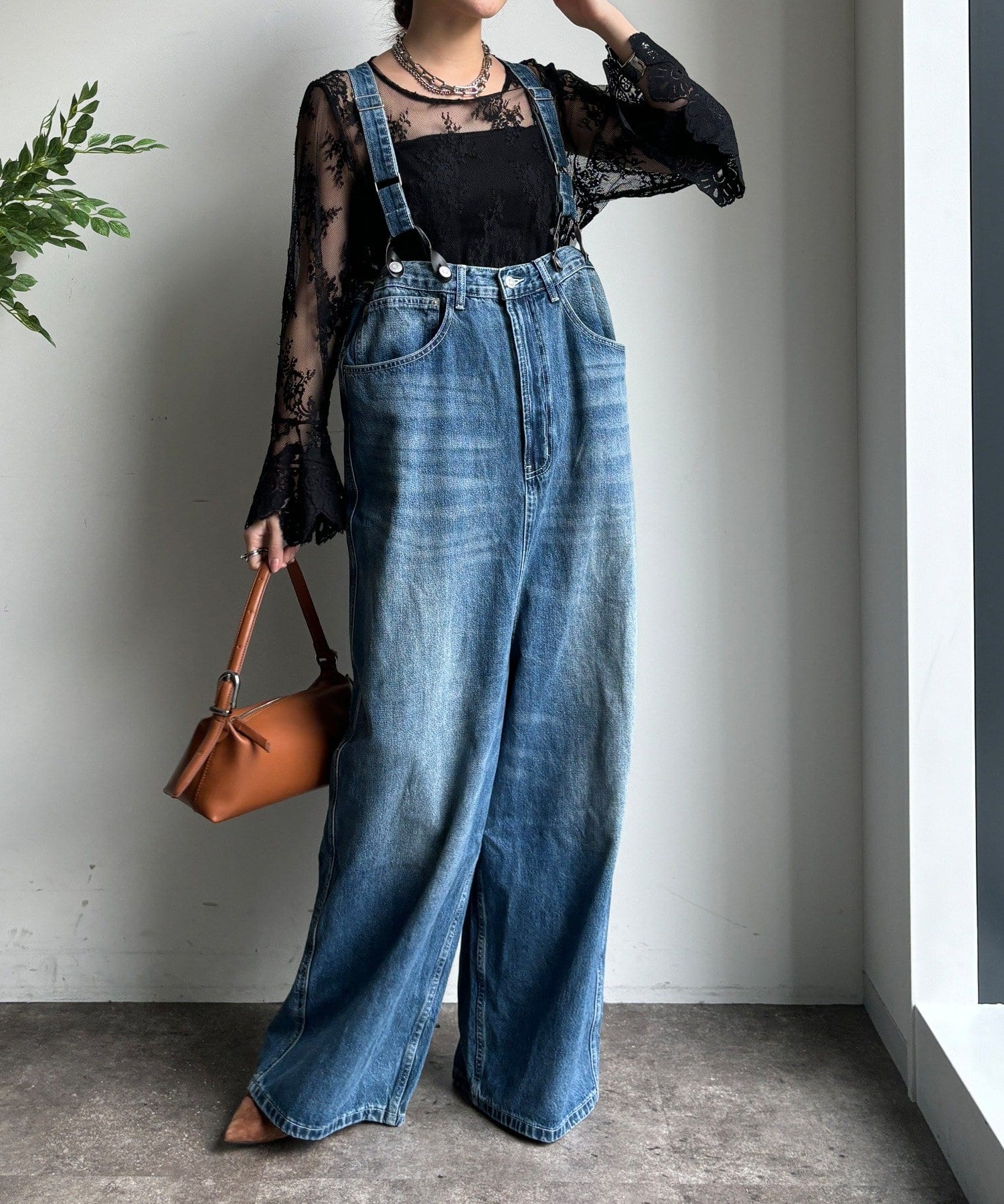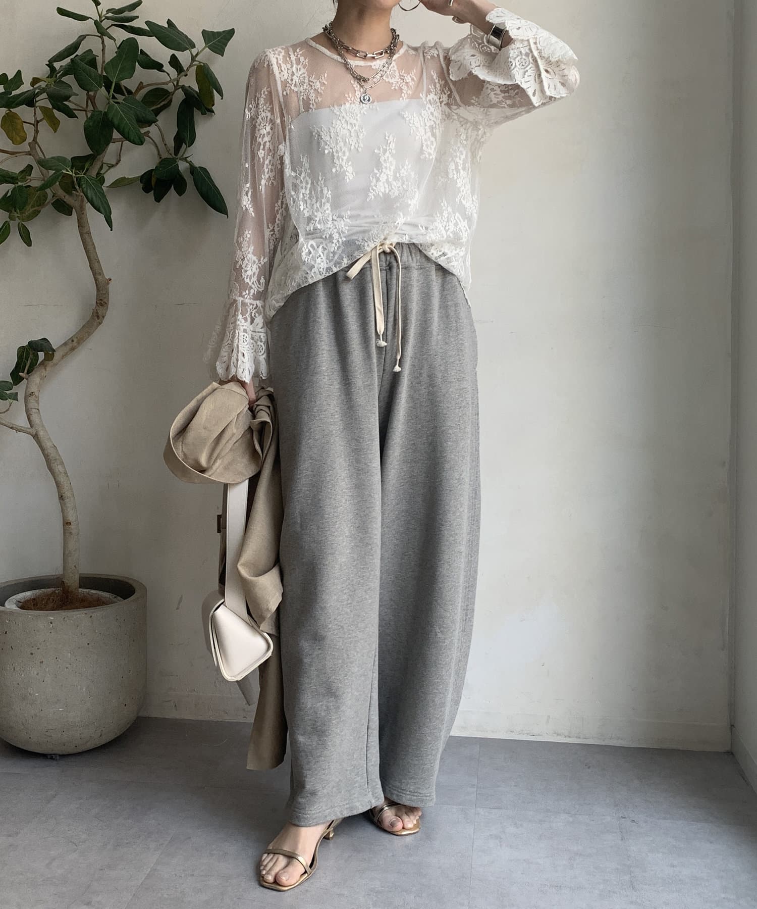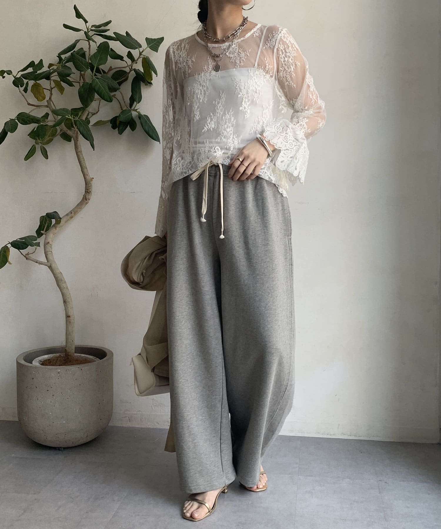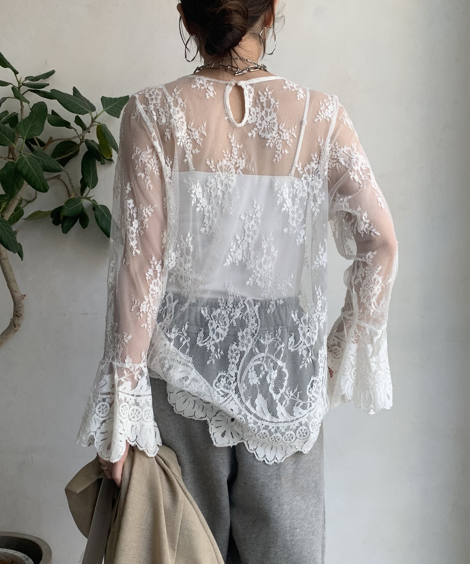 総レースの素材でコーディネートに少し甘めの要素をプラスしてくれます。