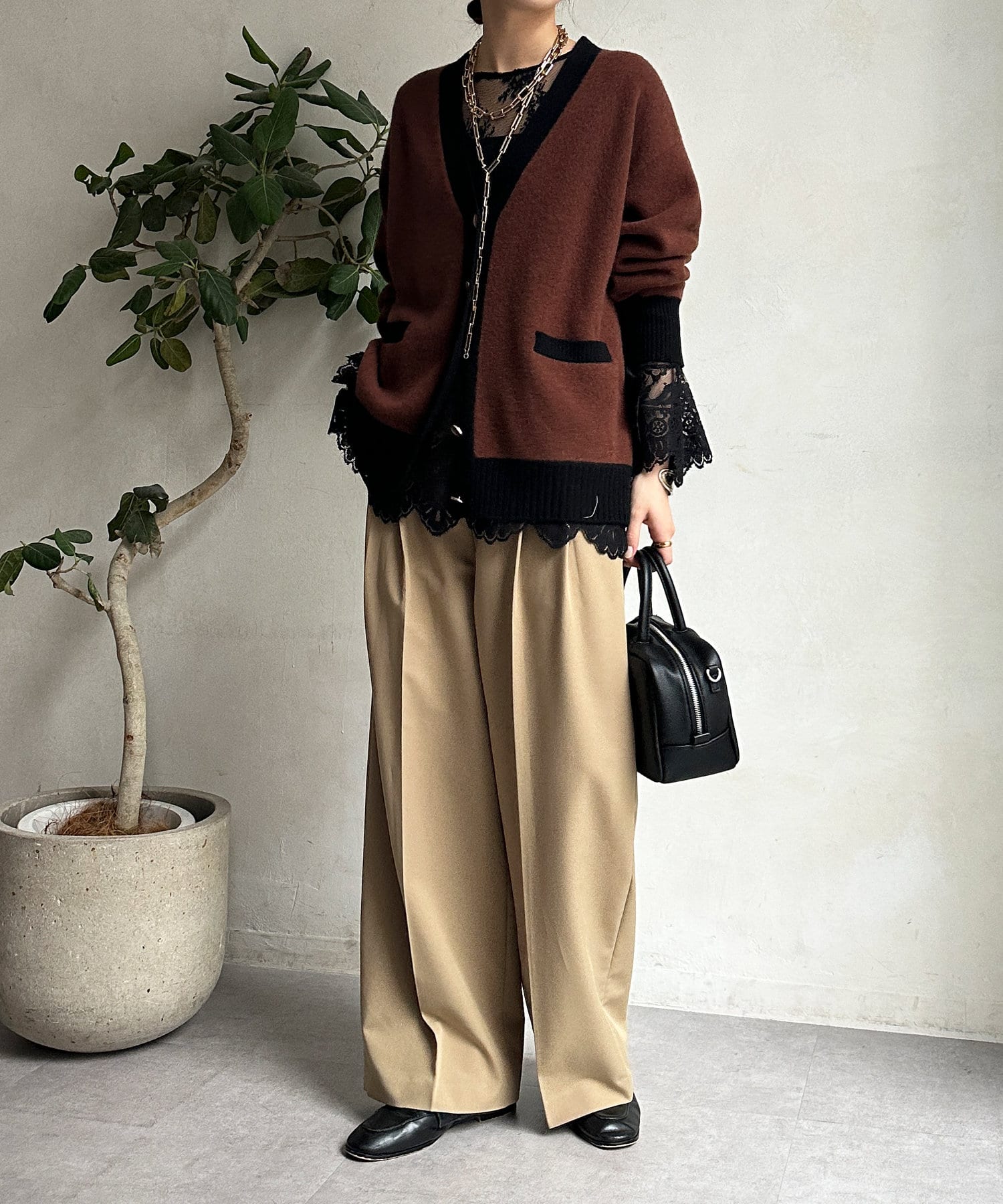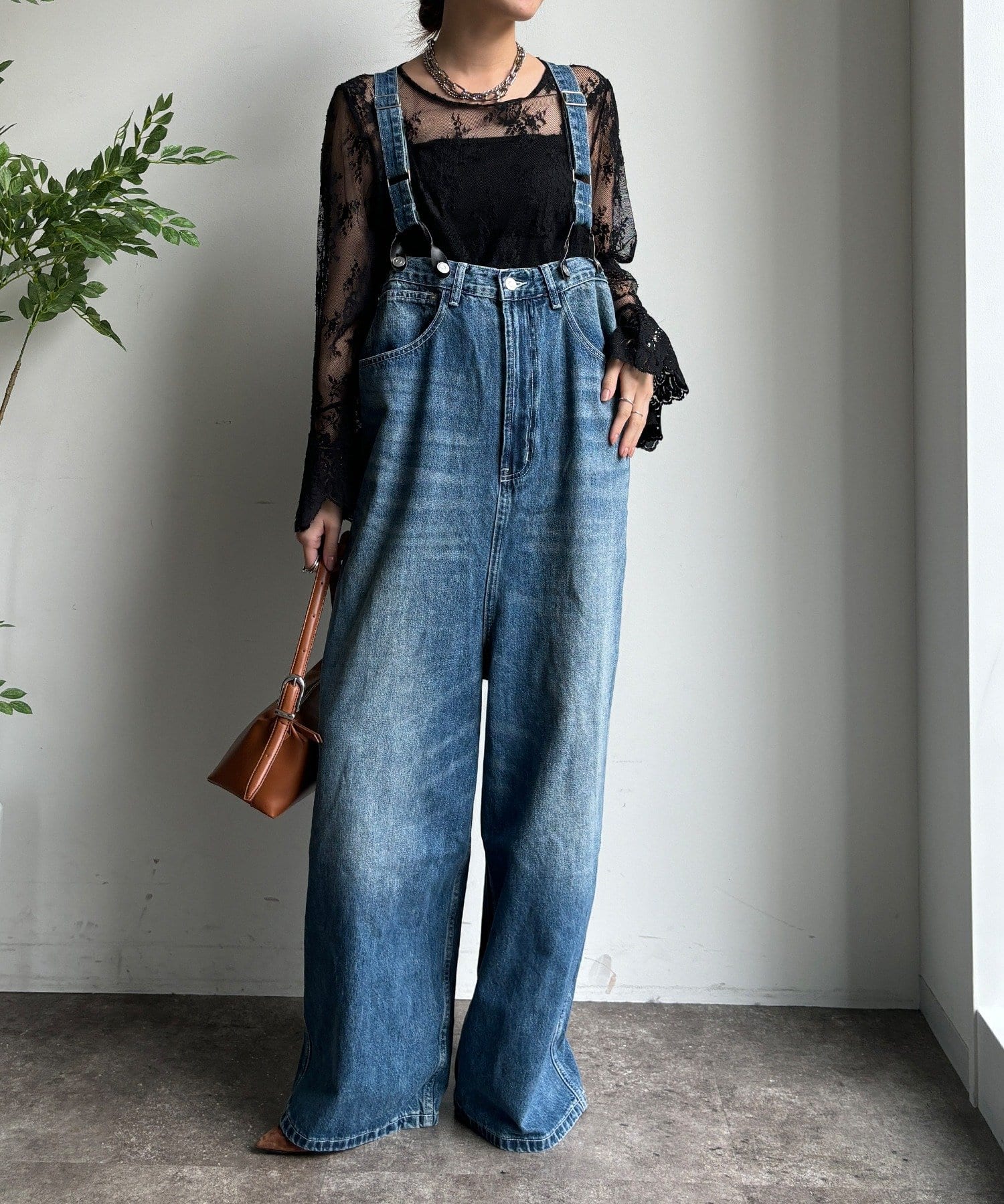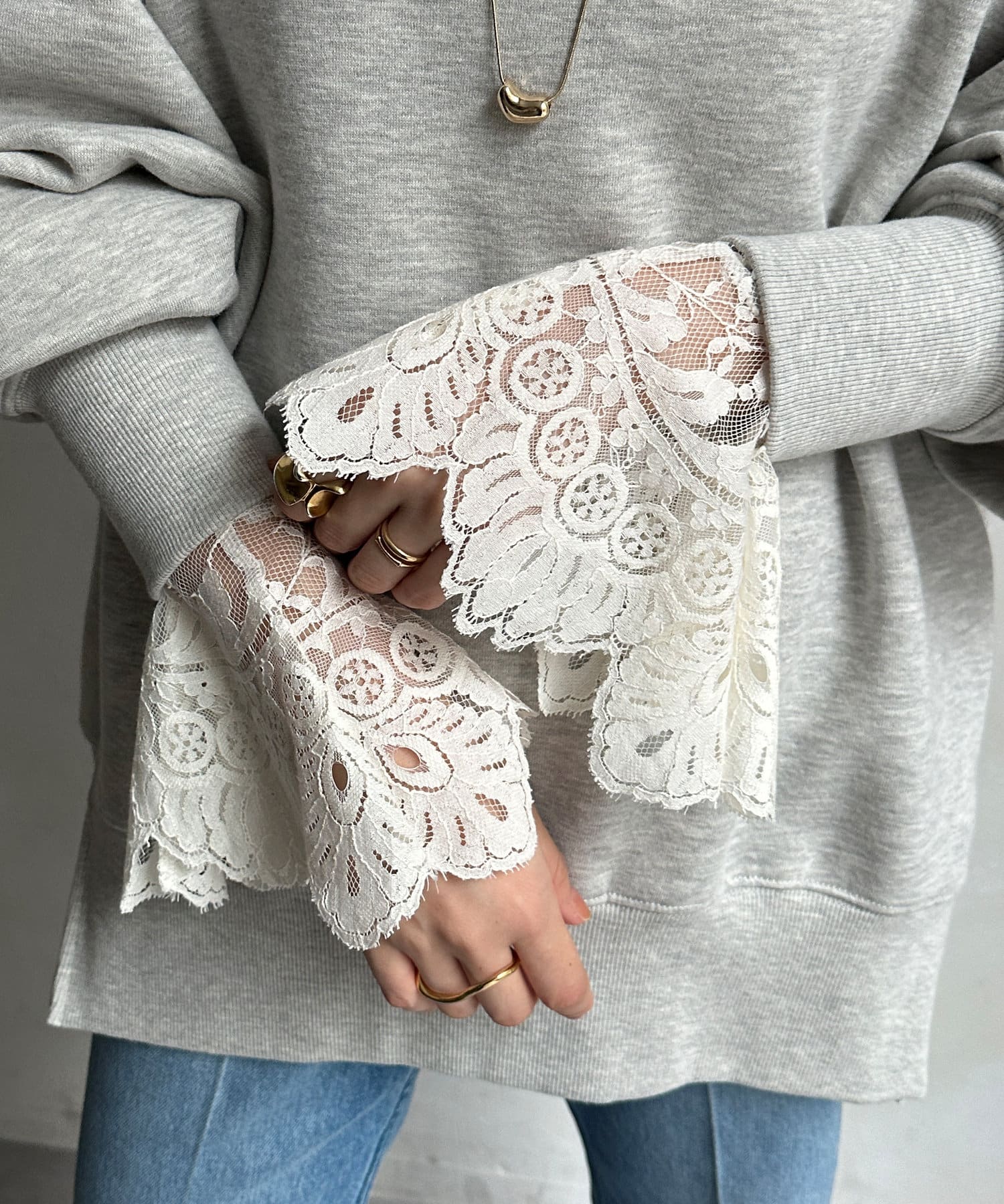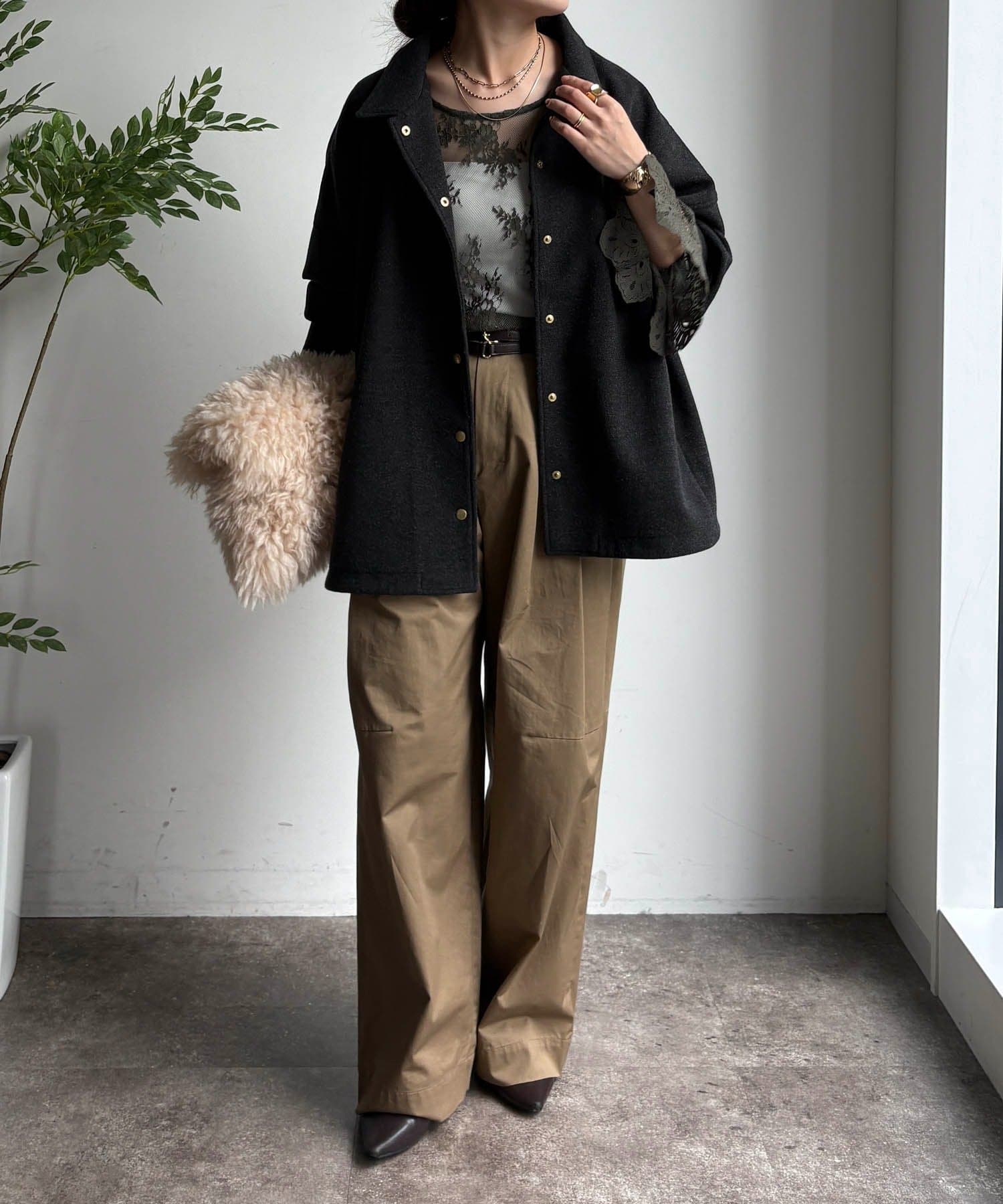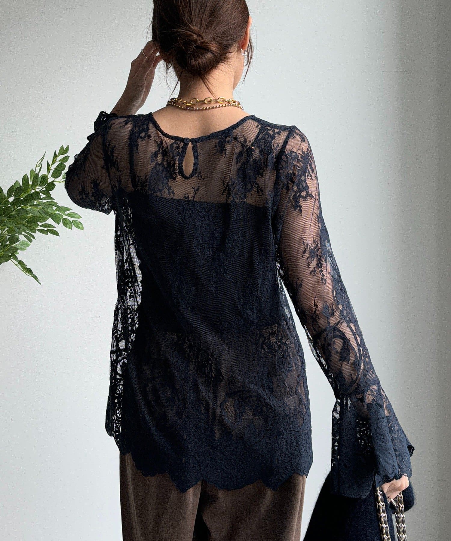 総レースの素材でコーディネートに少し甘めの要素をプラスしてくれます。