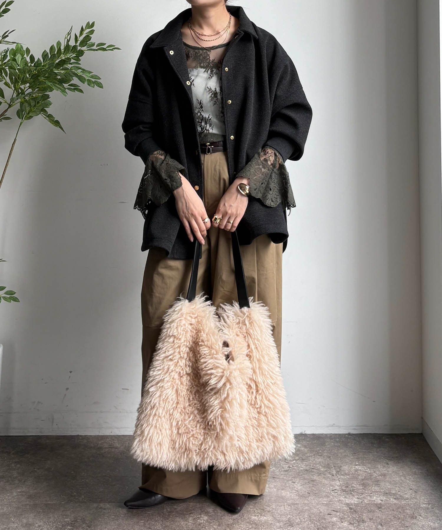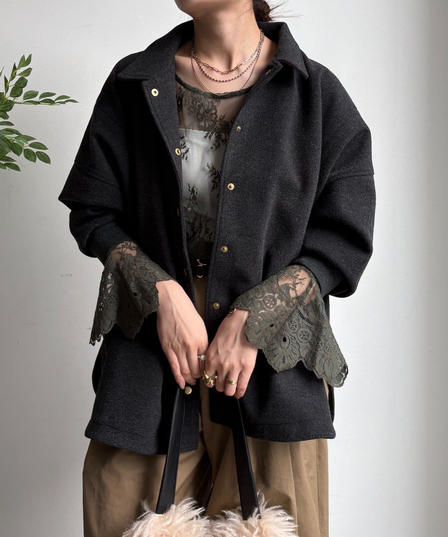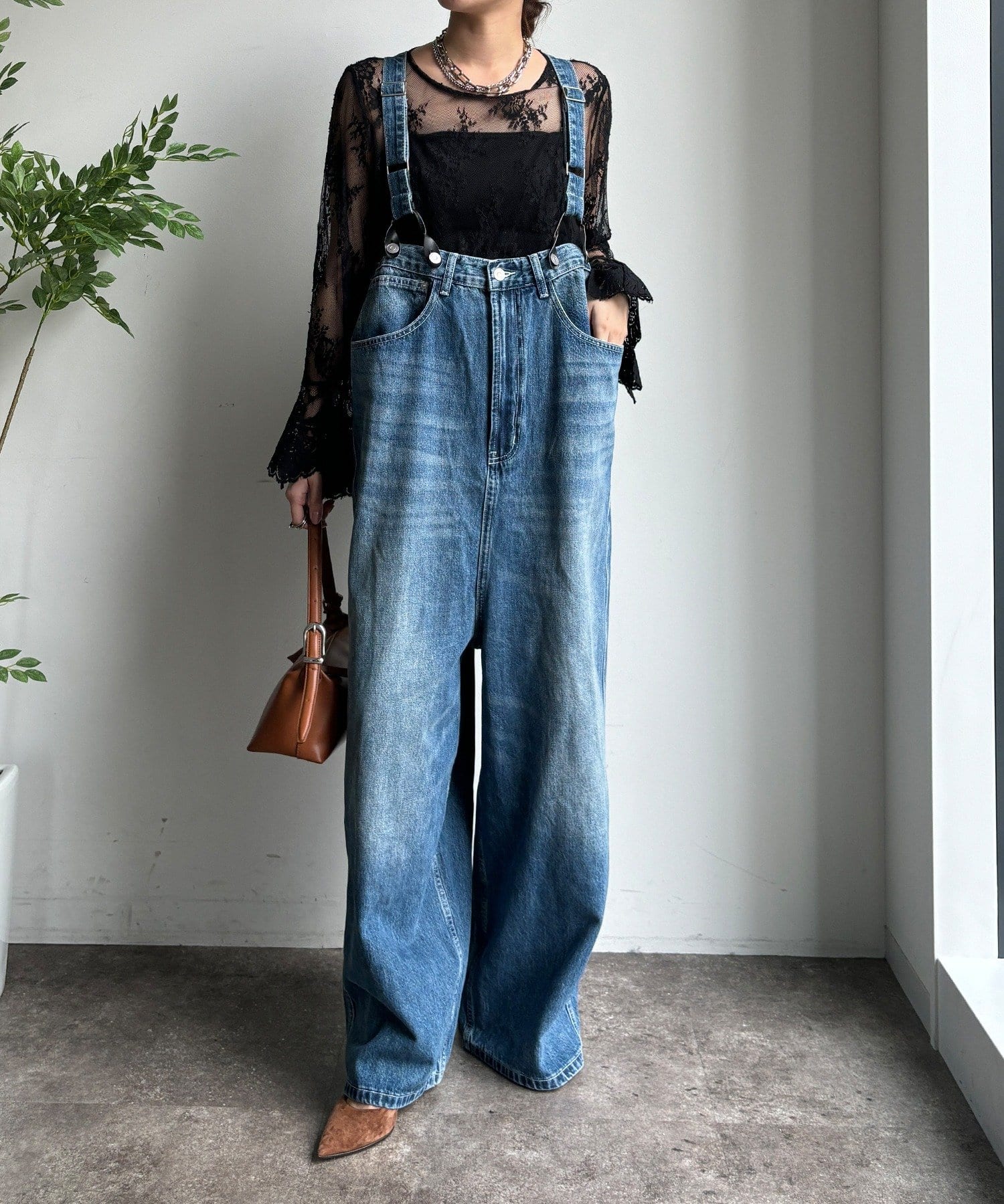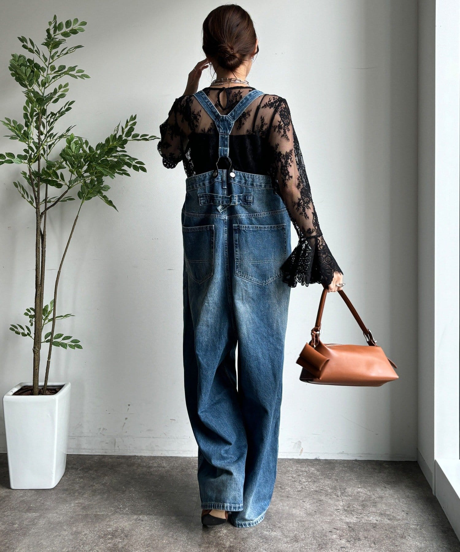 総レースの素材でコーディネートに少し甘めの要素をプラスしてくれます。