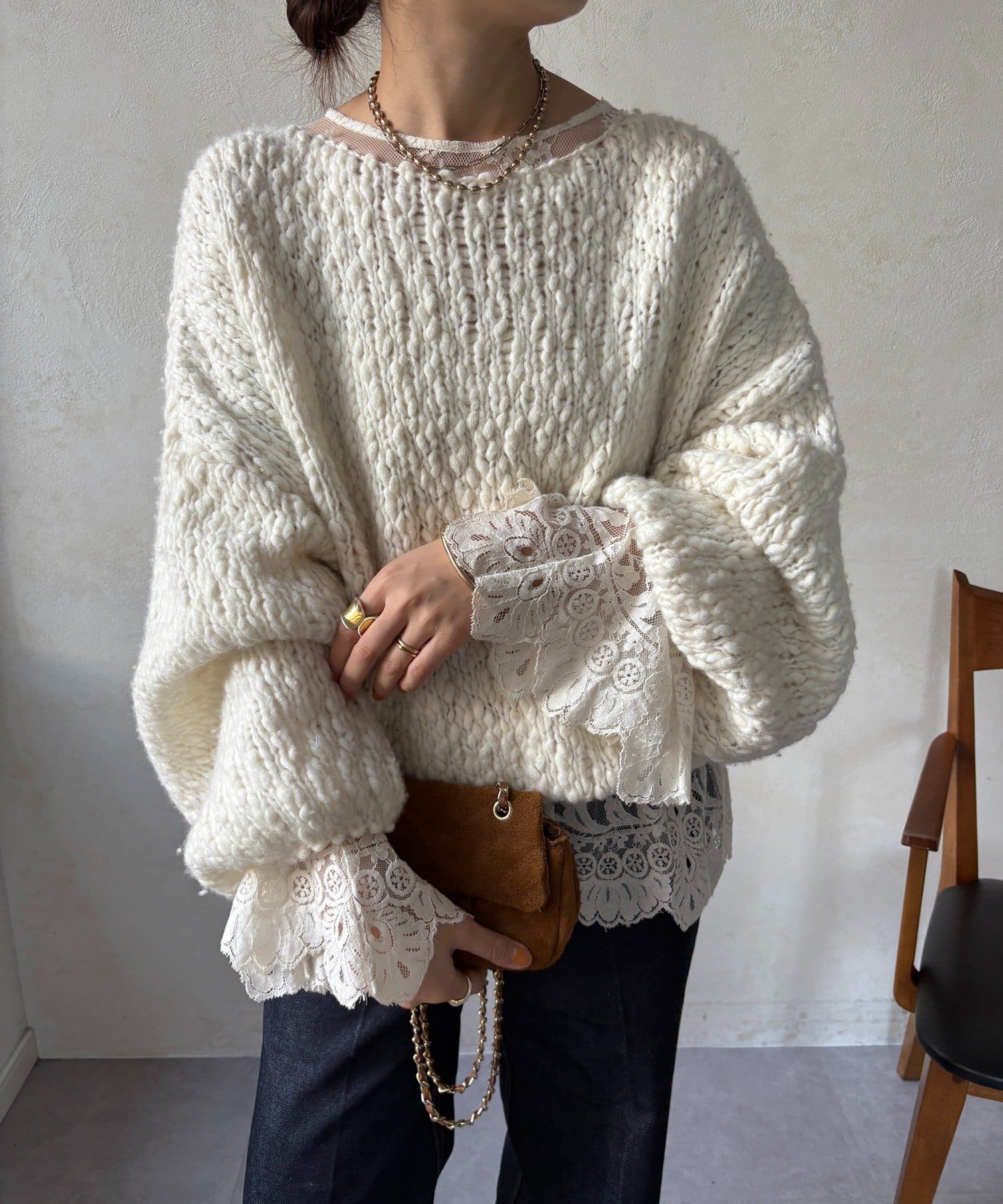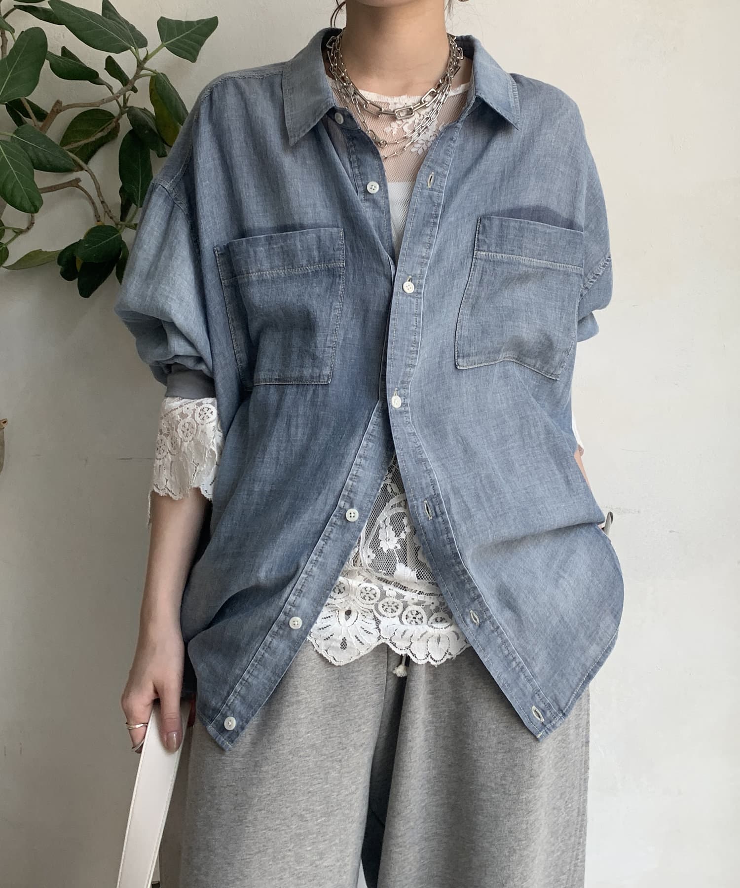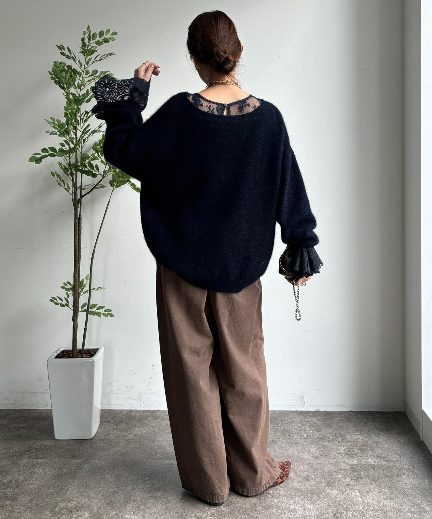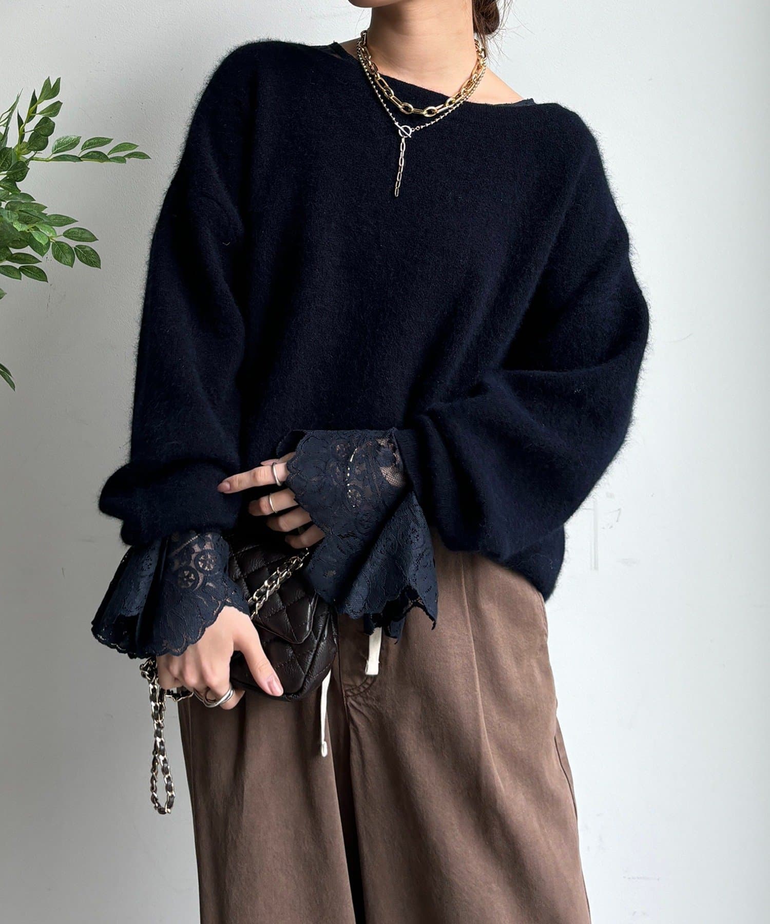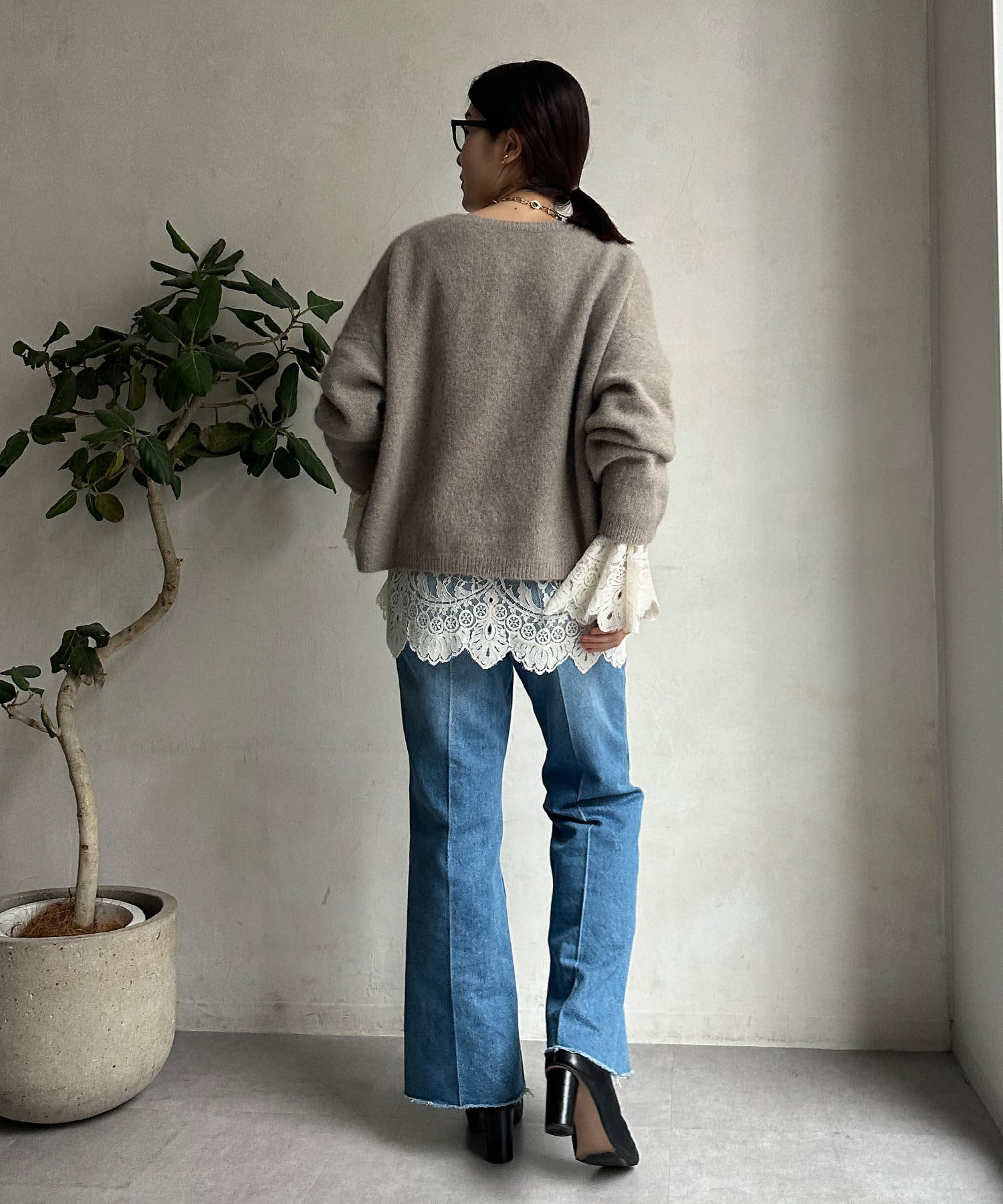 総レースの素材でコーディネートに少し甘めの要素をプラスしてくれます。