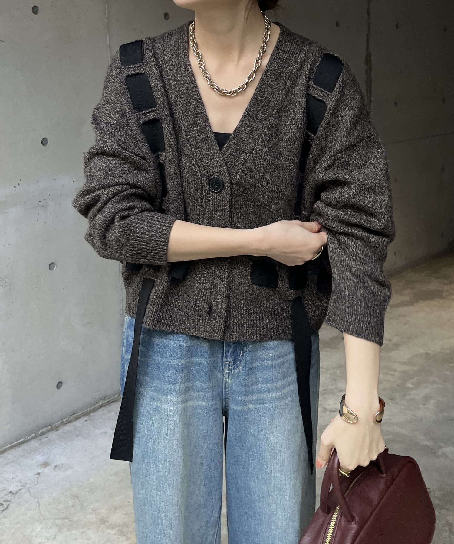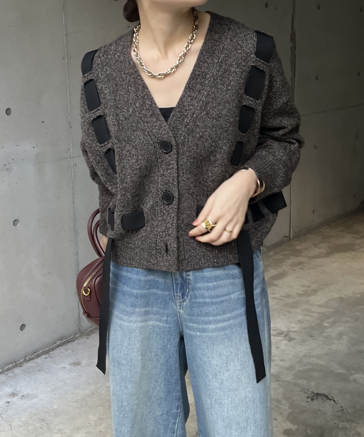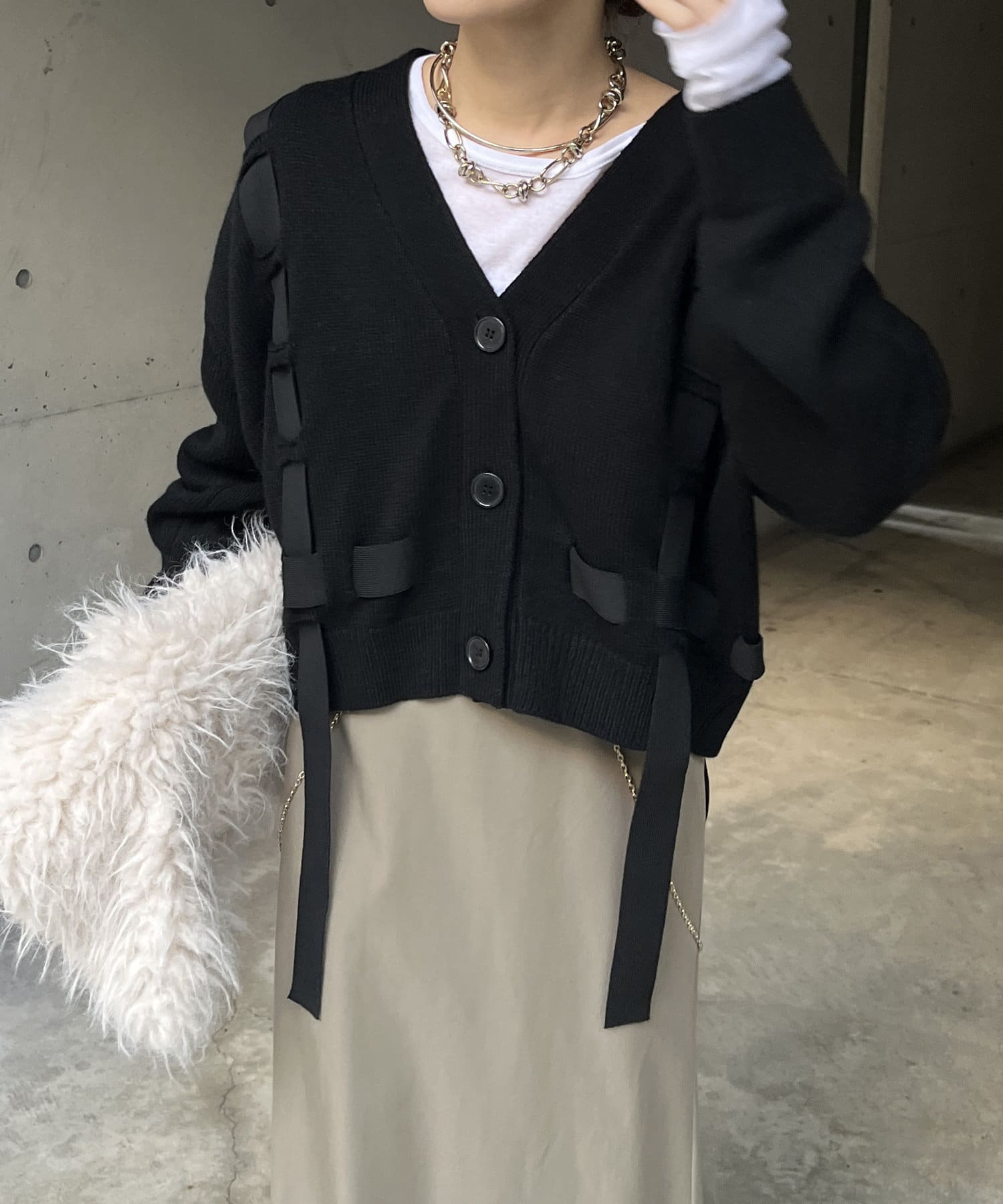 リボンデザインですが、甘くなりすぎないデザインがポイントのカーディガン!