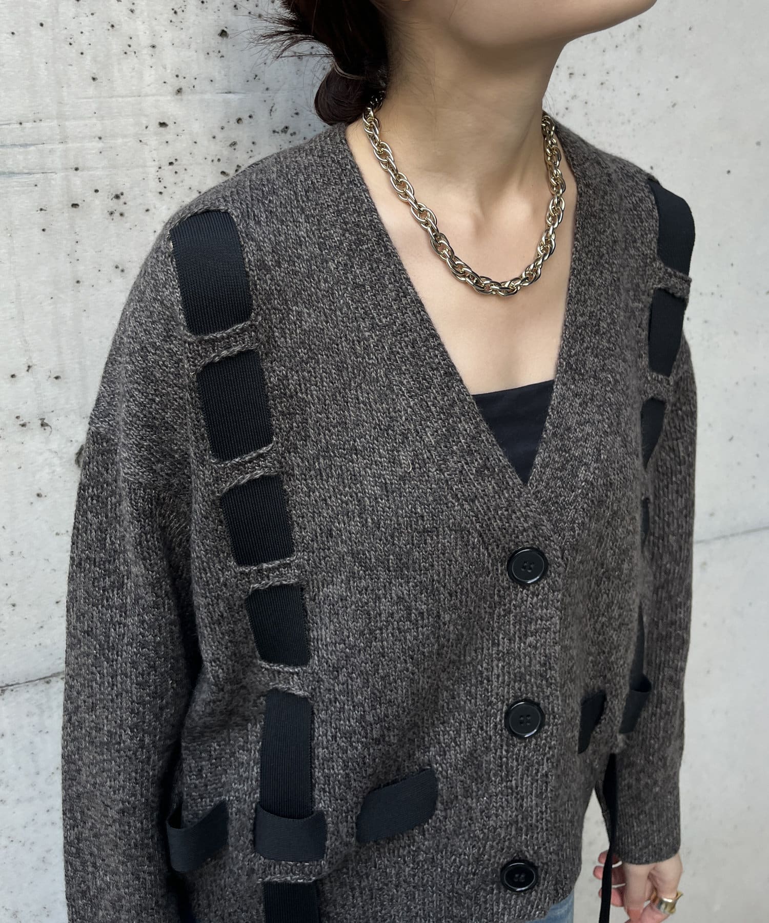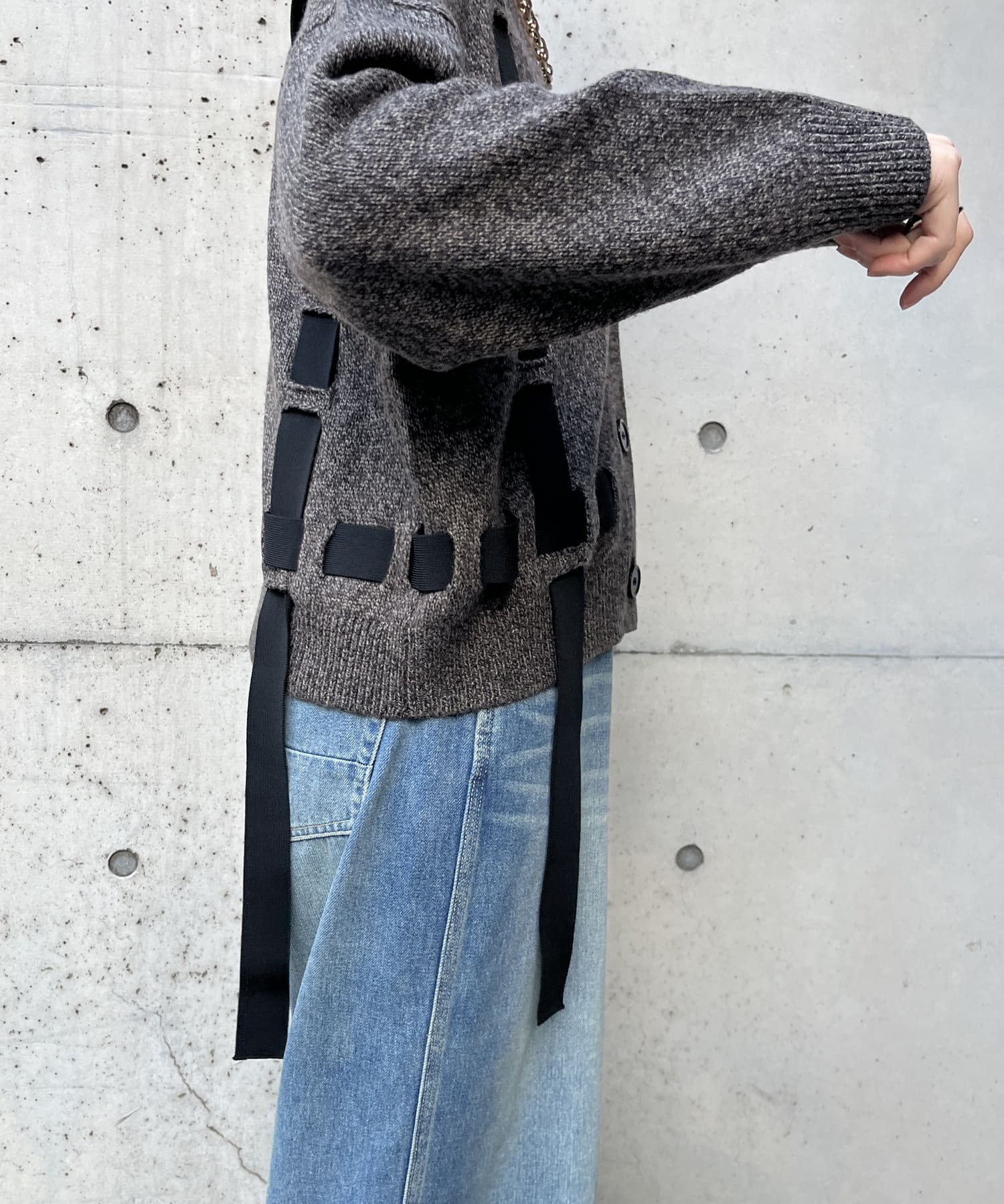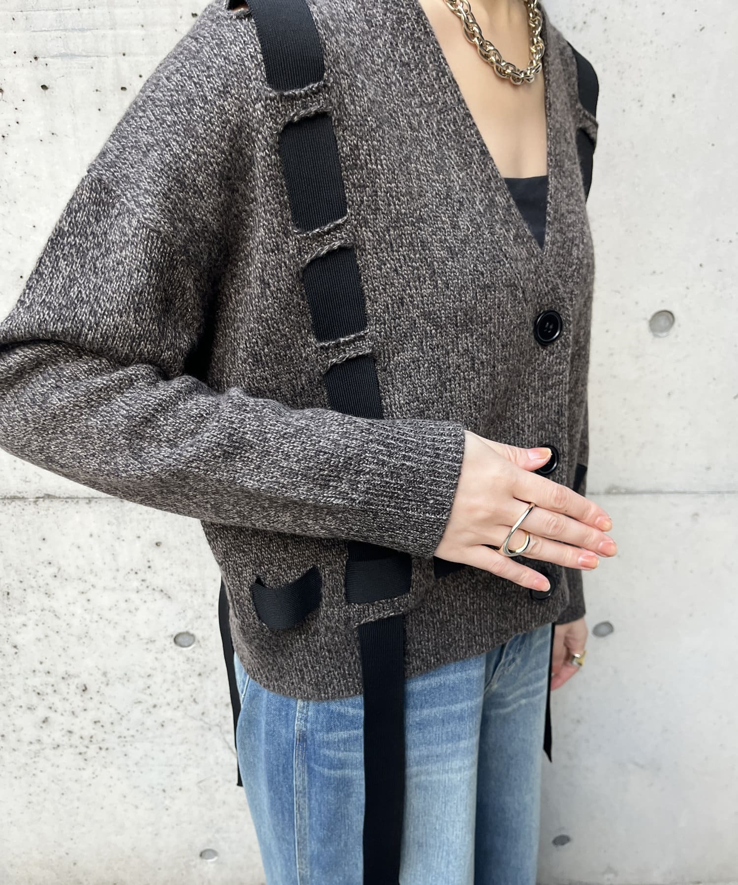リボンデザインですが、甘くなりすぎないデザインがポイントのカーディガン!