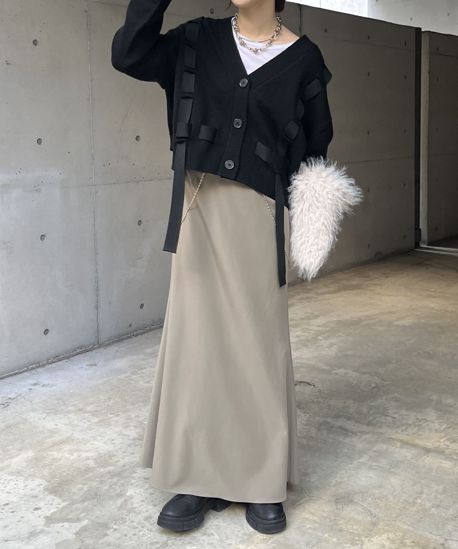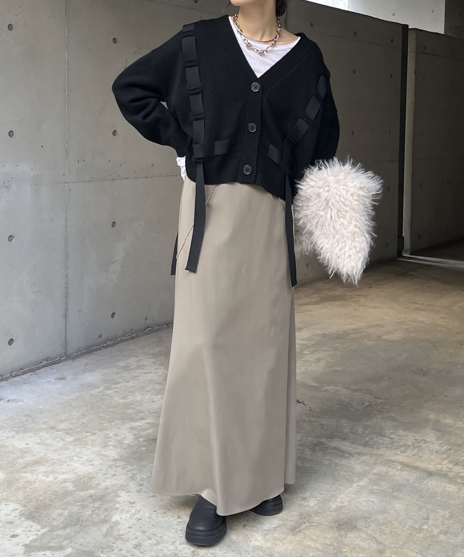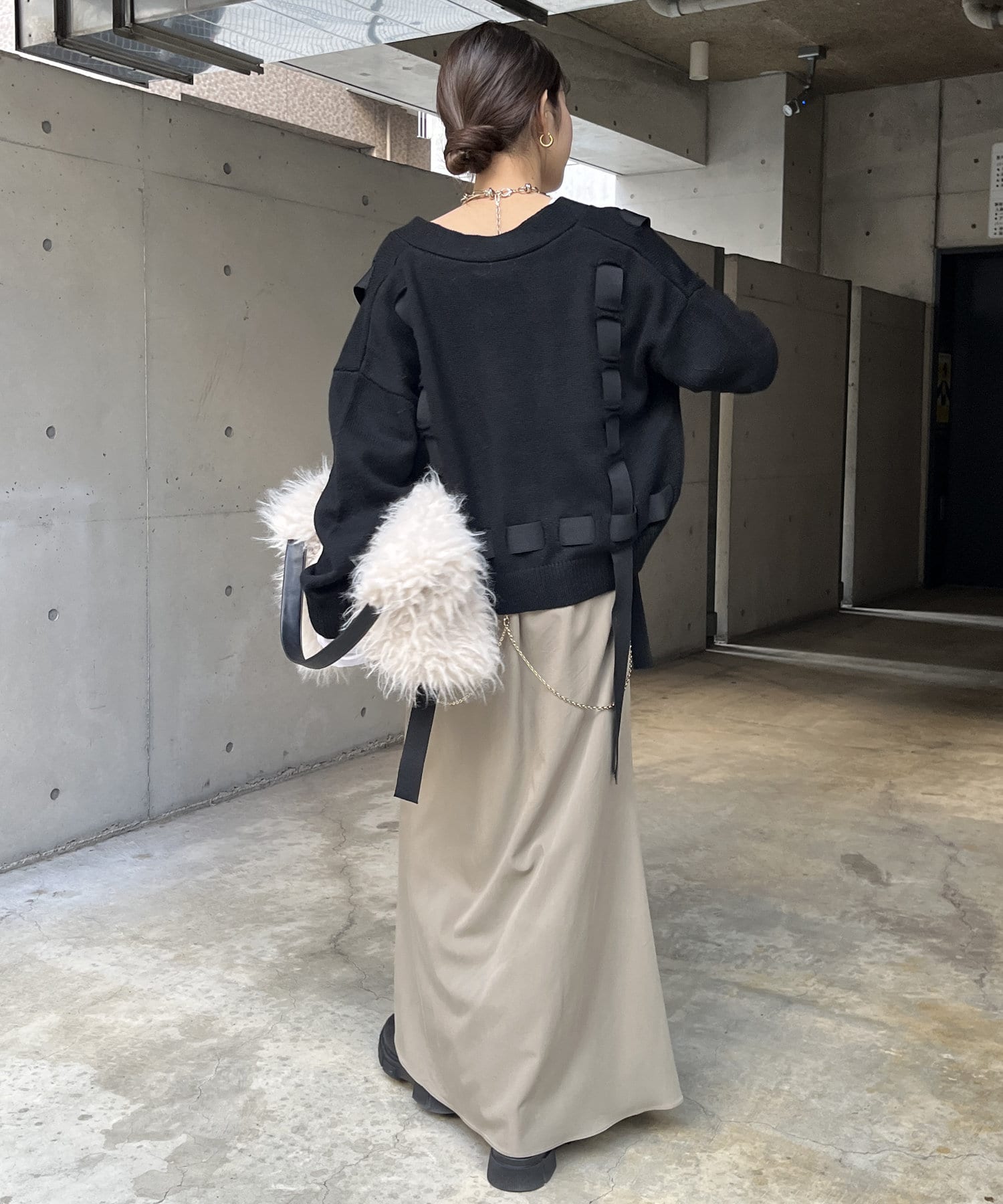 長く下に降りている大きいリボンデザインがコーディネートのアクセントになる