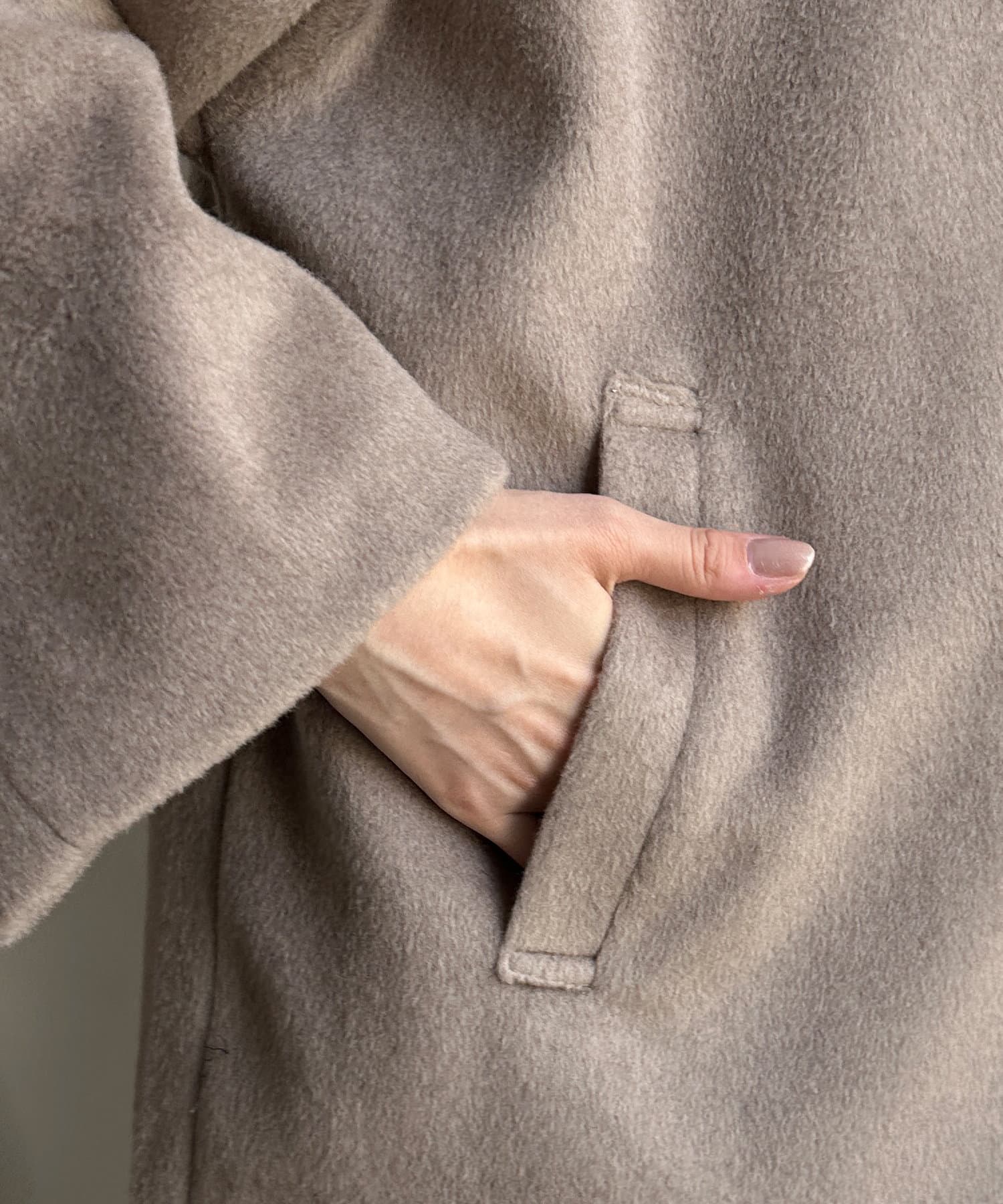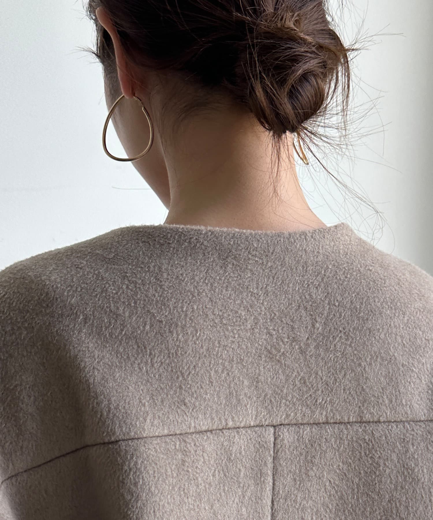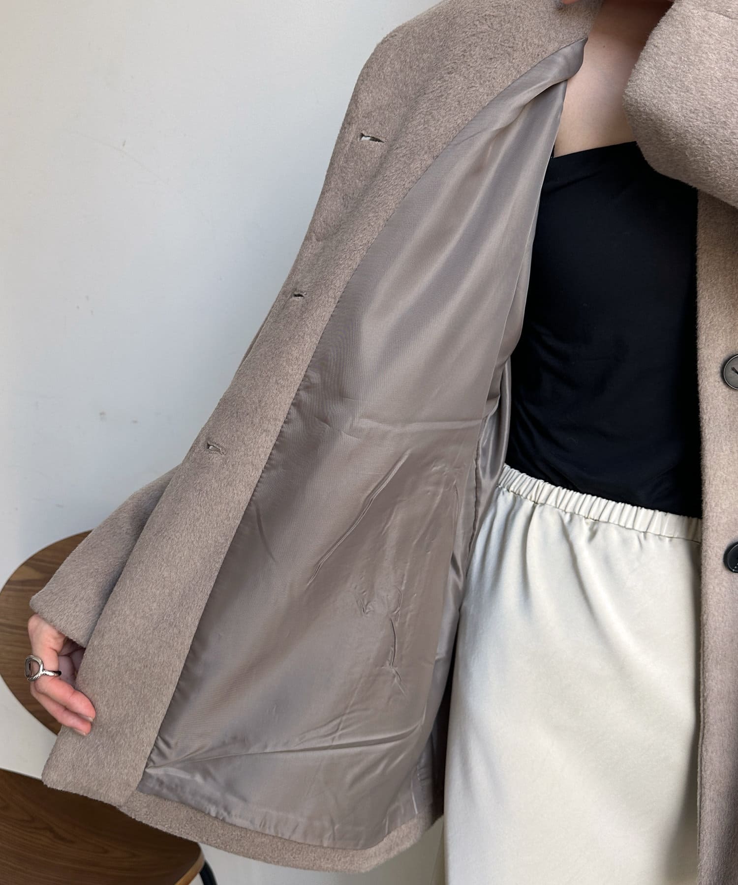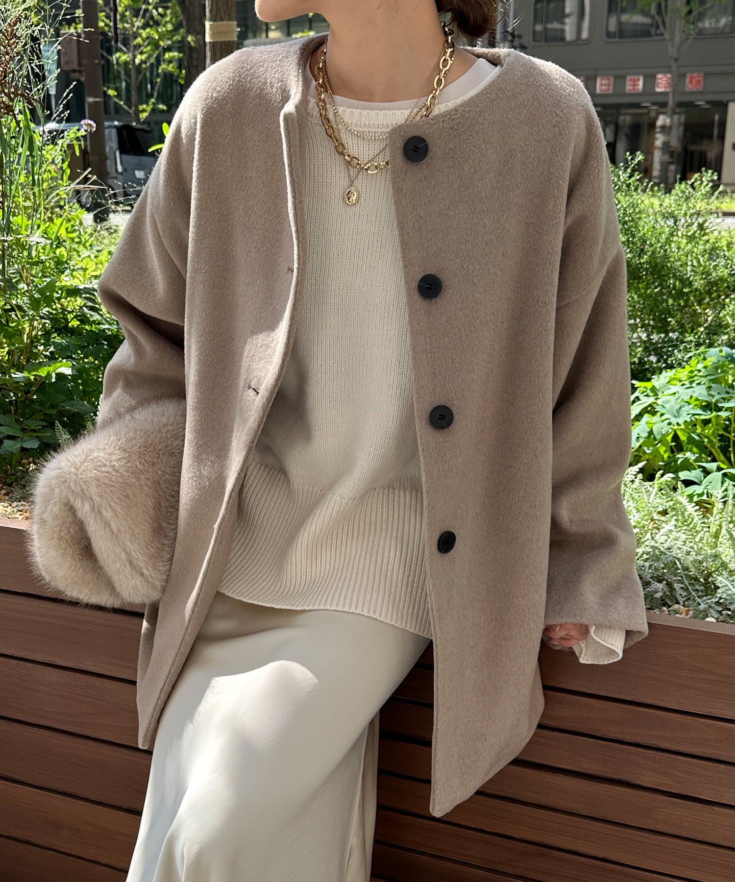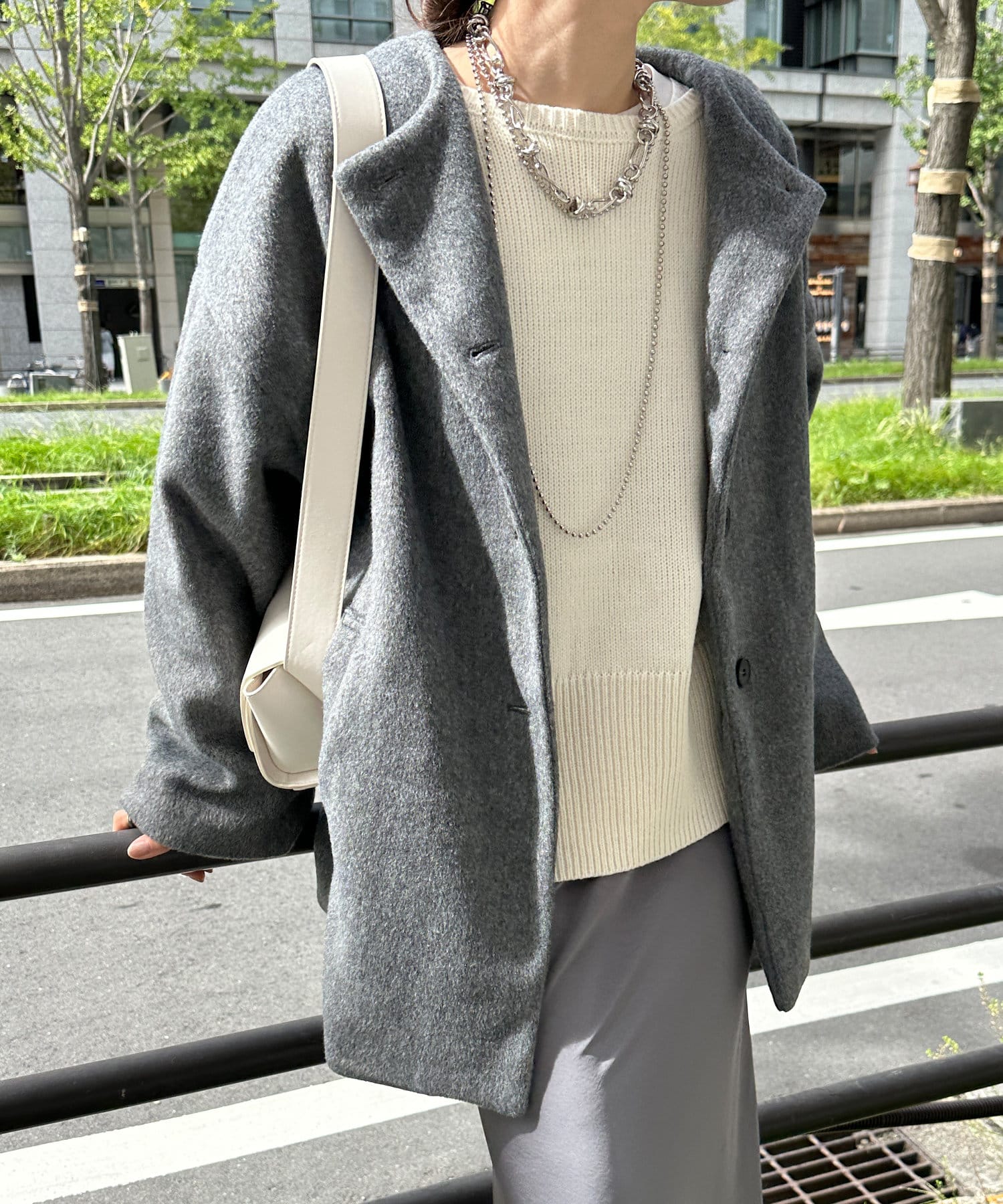 ボタンの開け閉めで印象が変わる大人カジュアルなノーカラーコート。