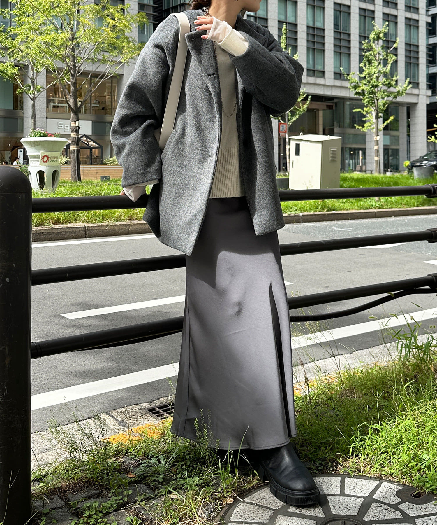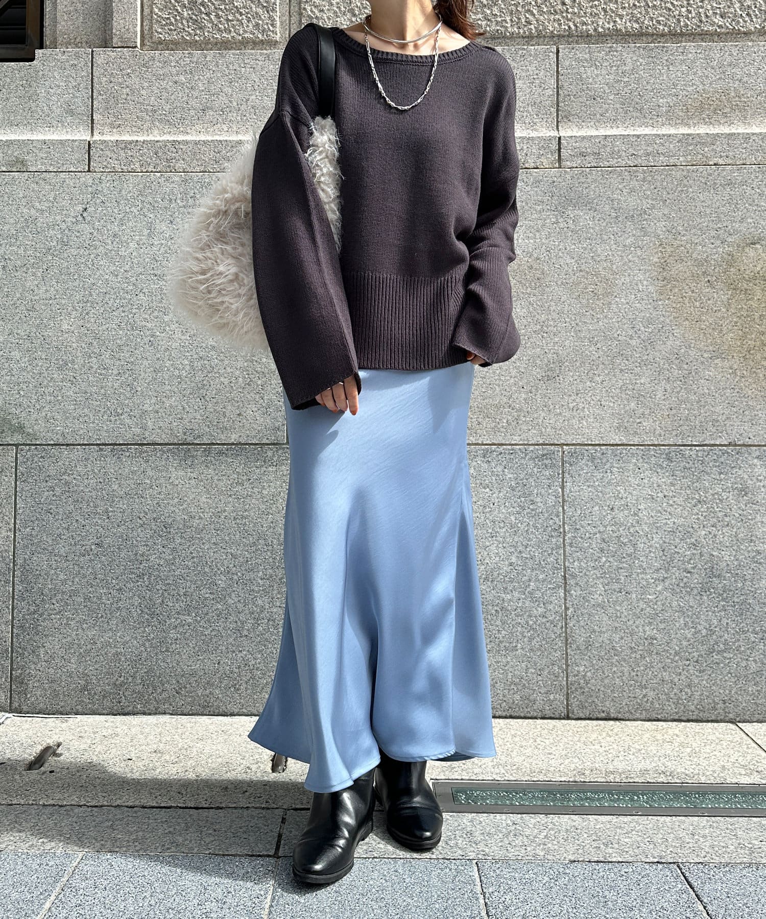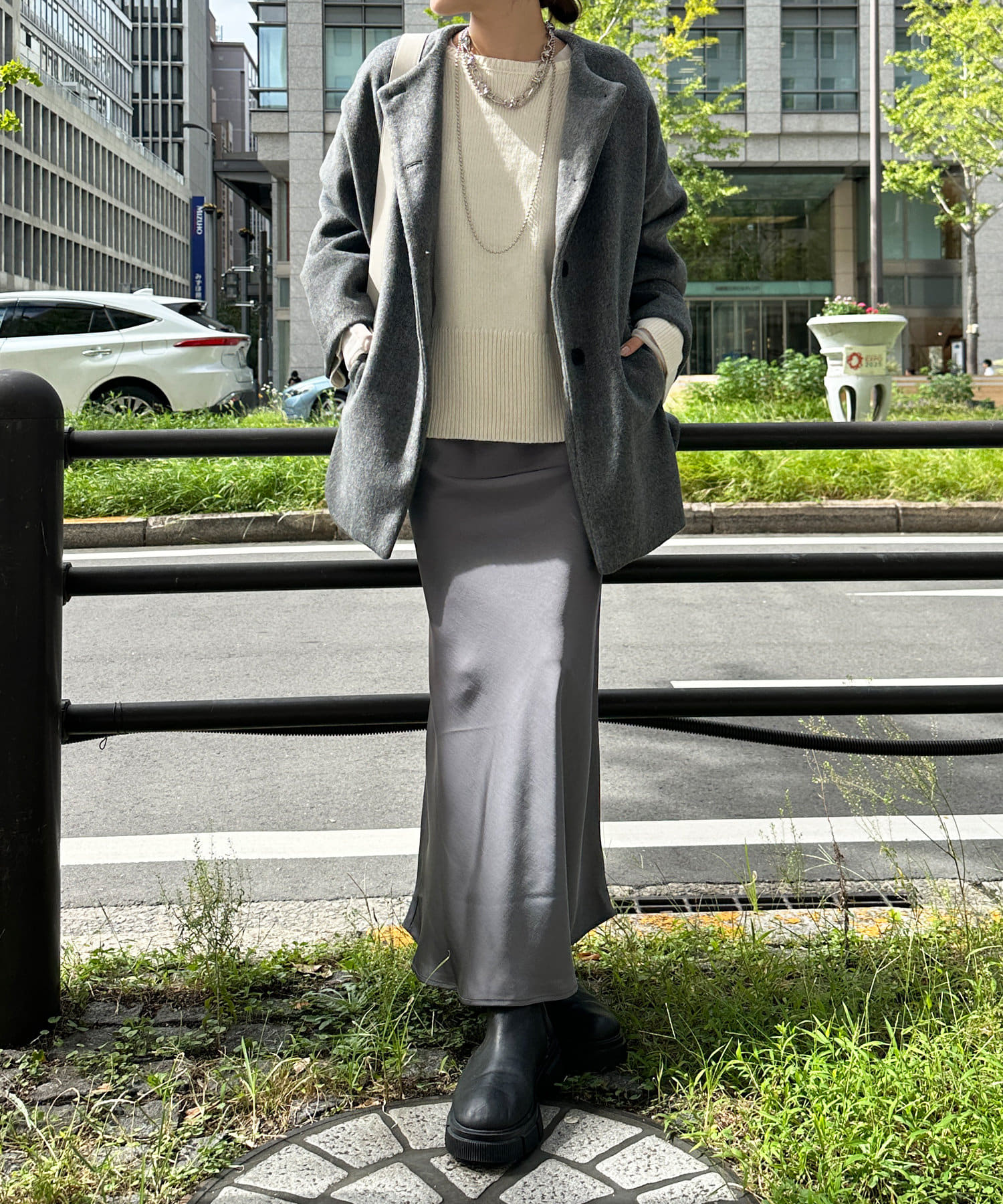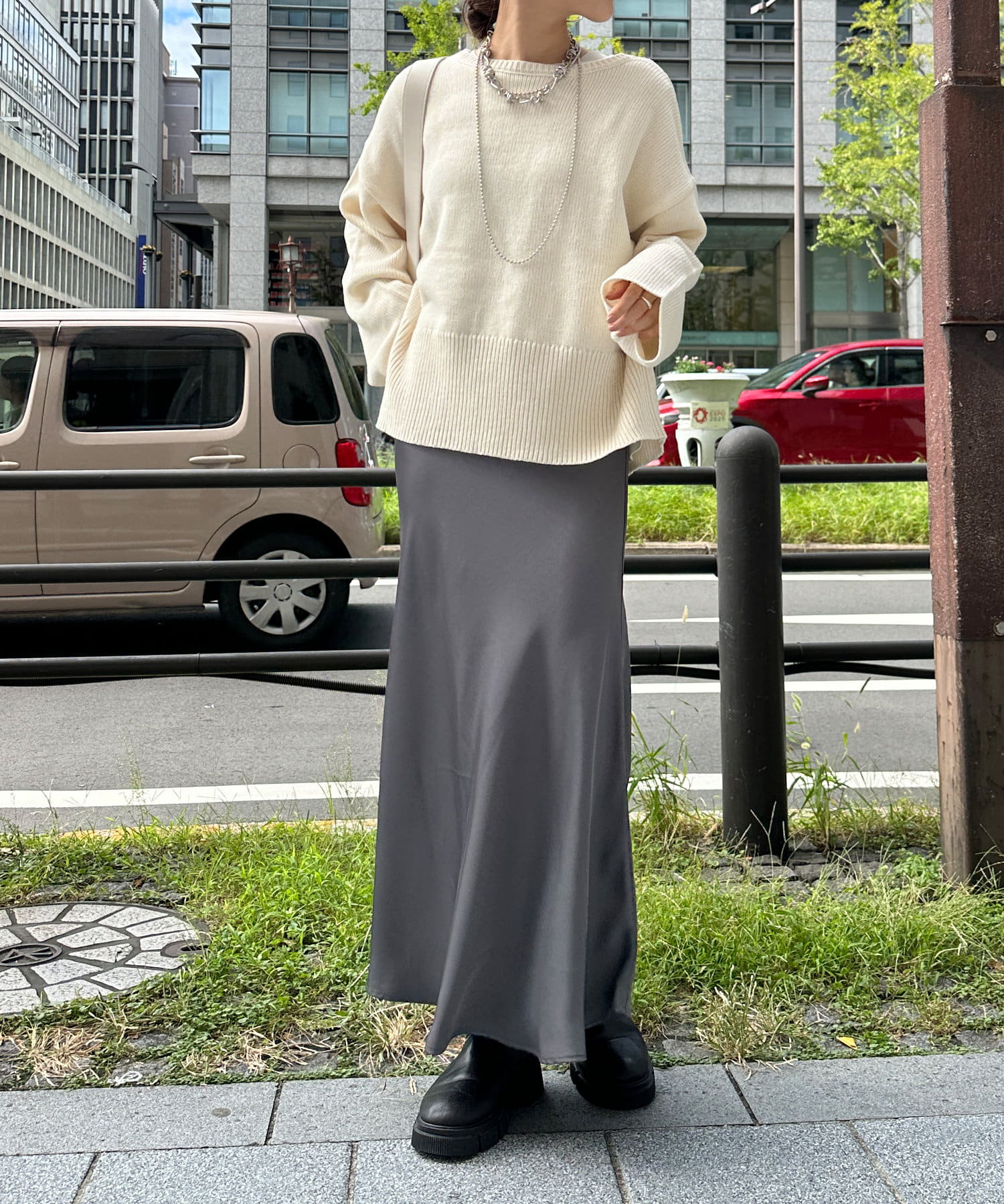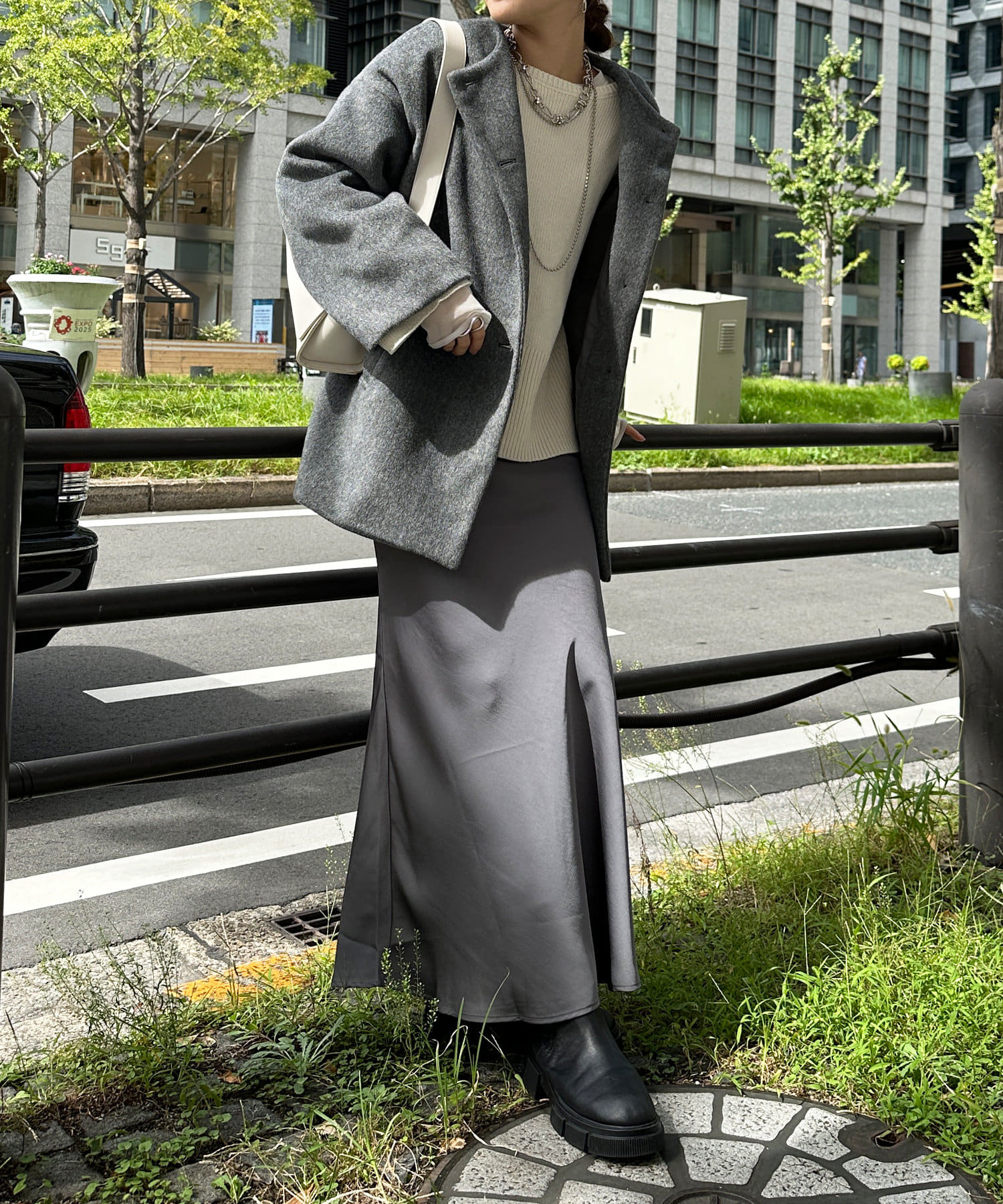 つや感のある素材がレディライクな印象溢れるマーメイドスカート。