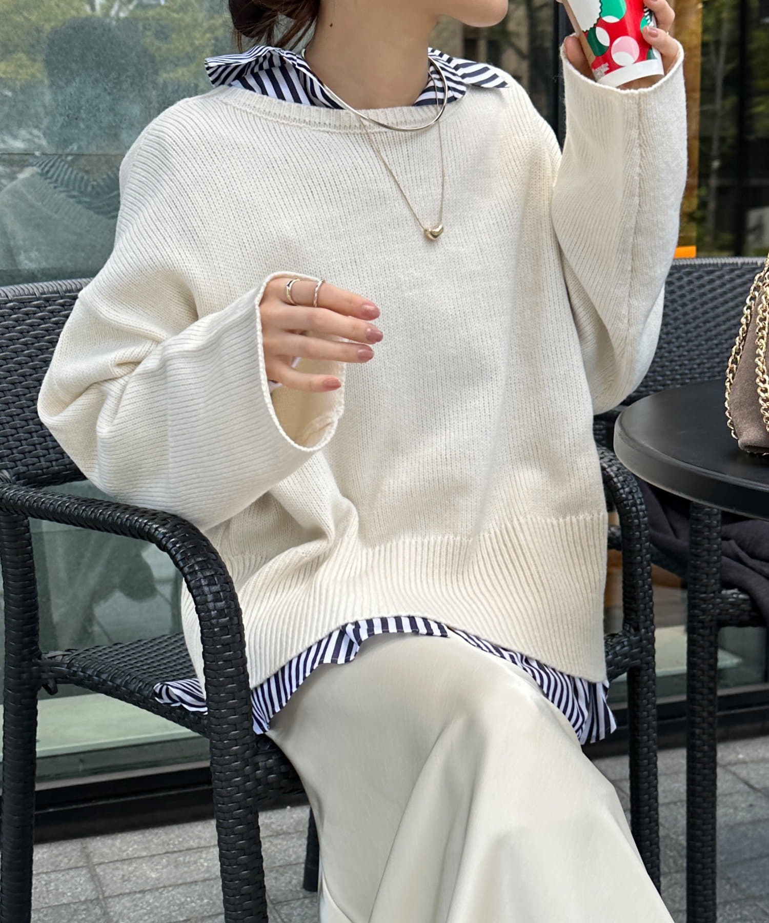 (ニット)着丈:57/64cm 身幅:60.5cm 肩幅:62cm 袖丈:47cm