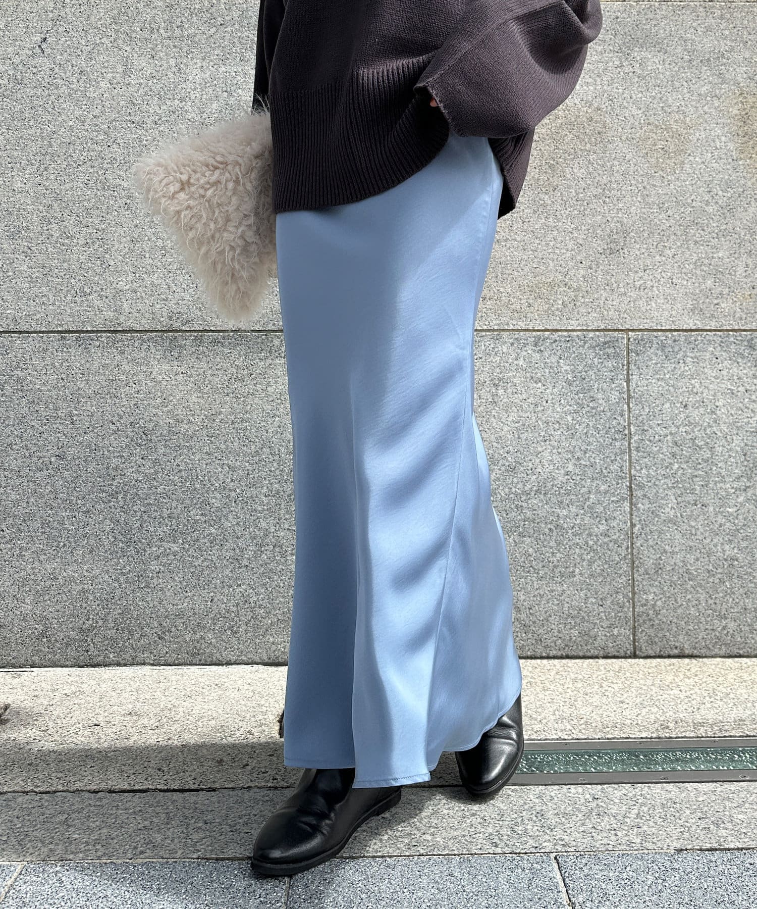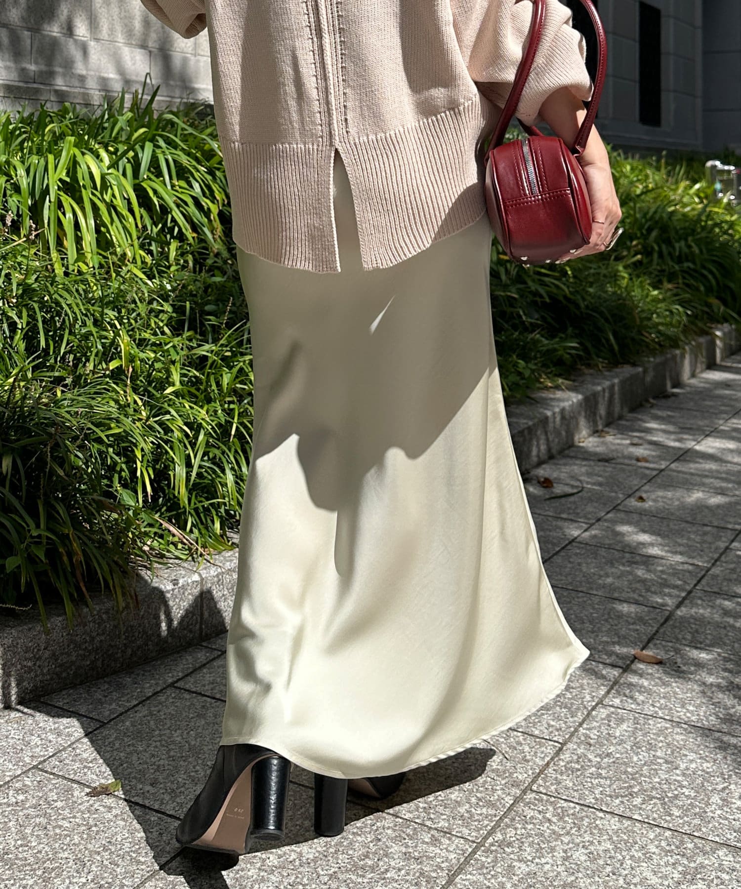 つや感のある素材がレディライクな印象溢れるマーメイドスカート。
