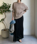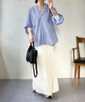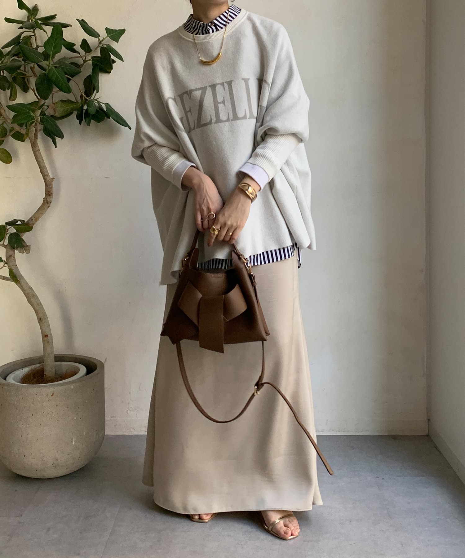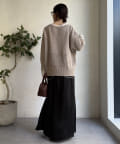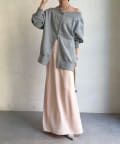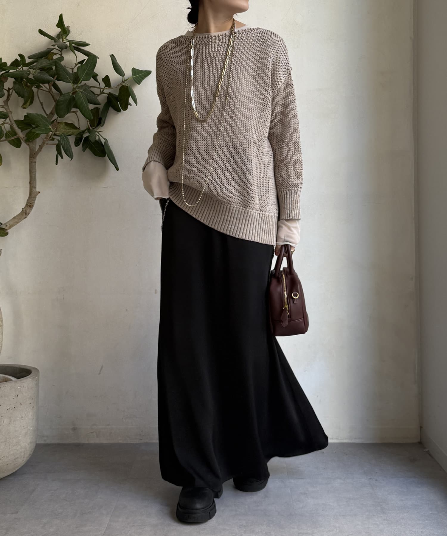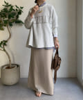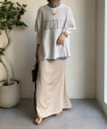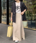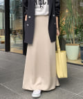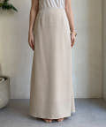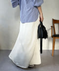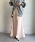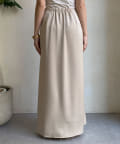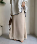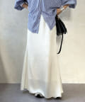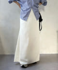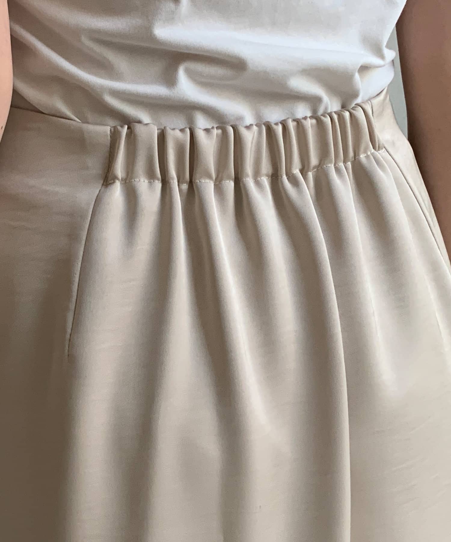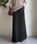 裾に向かってゆるやかに広がるマーメードシルエットできれいな印象を与えつつも、ウエストバックはゴム仕様になっている為、履き心地はリラクシーで楽々。