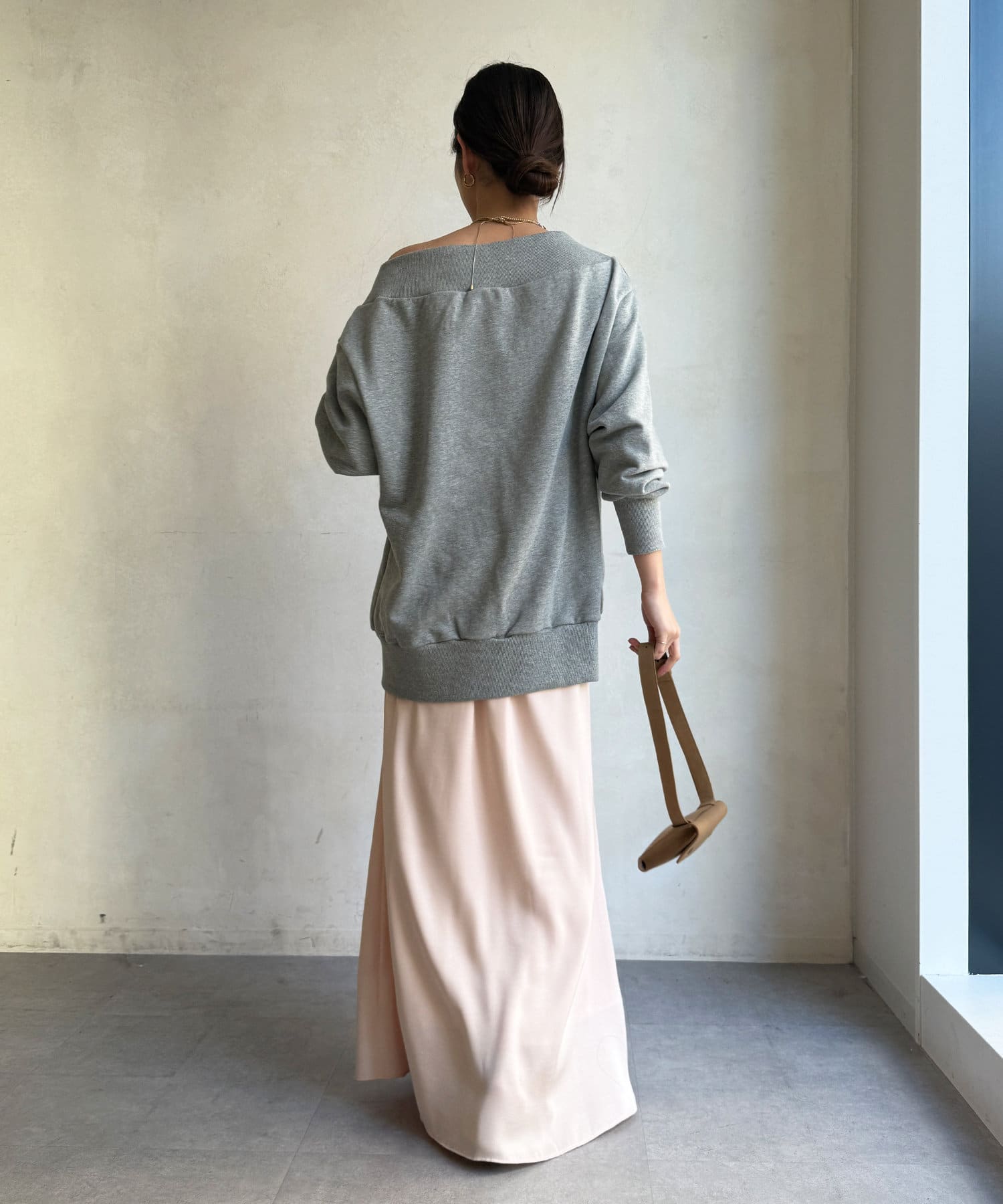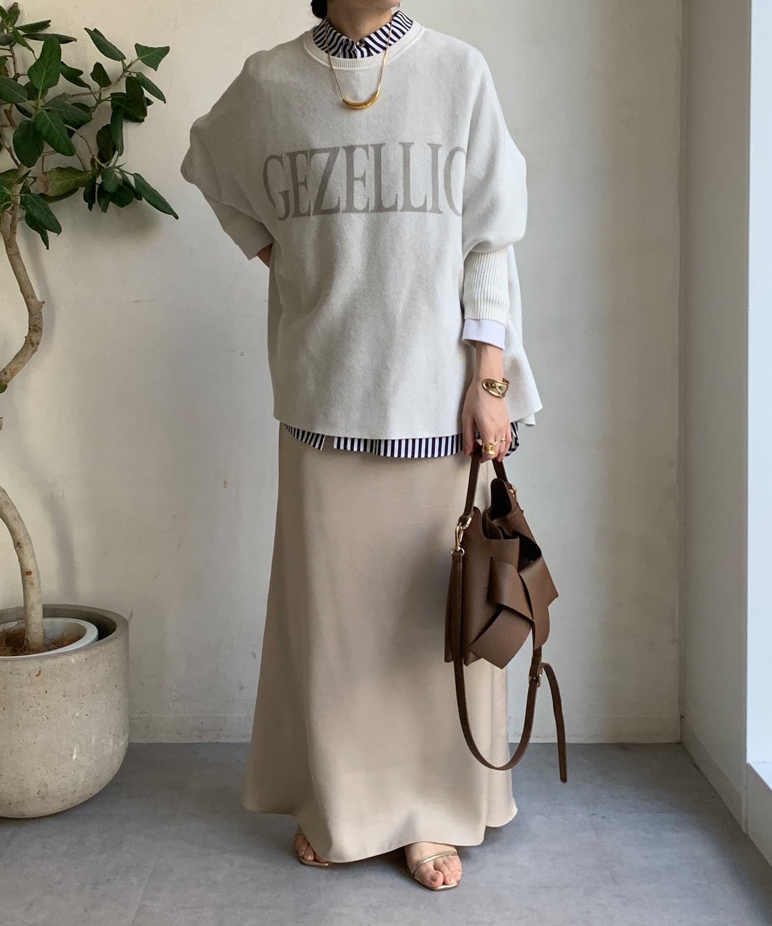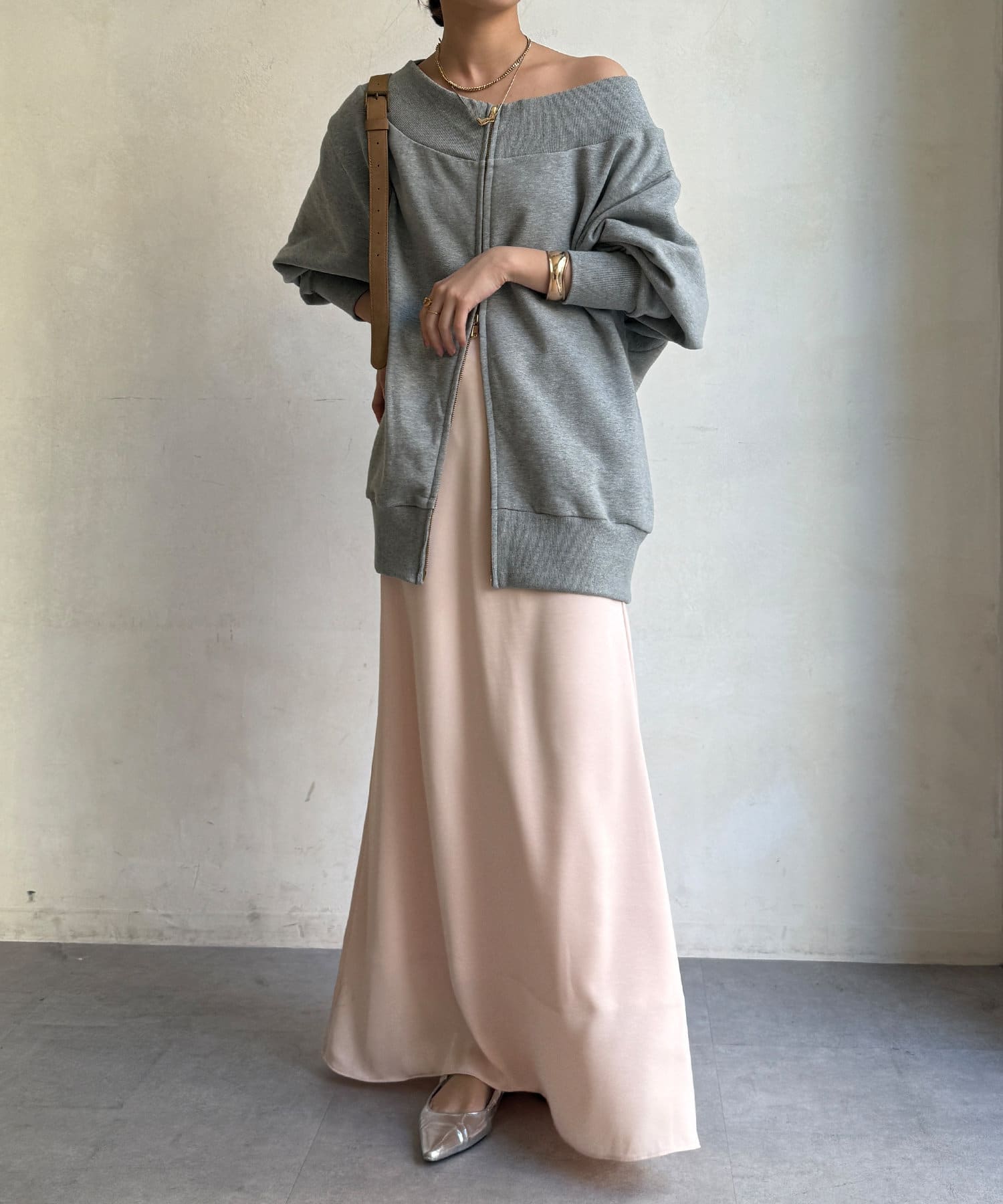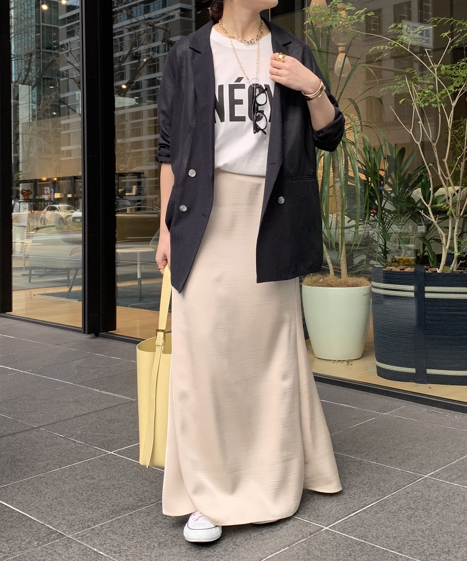 やや光沢感のある素材感が新鮮で、いつものスタイルをガラッと変えてくれます。
