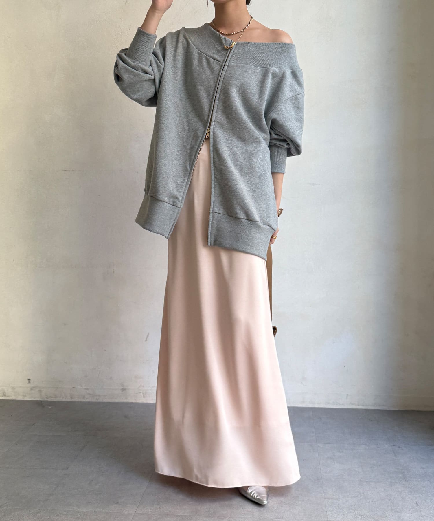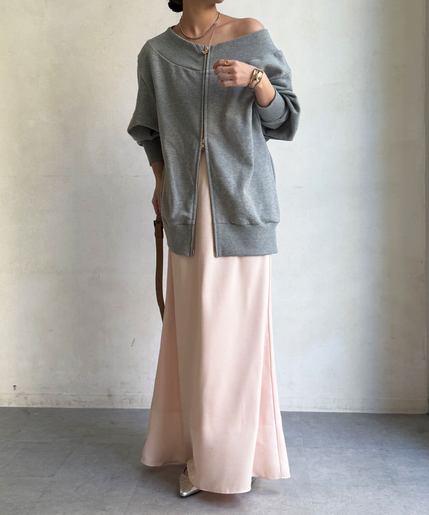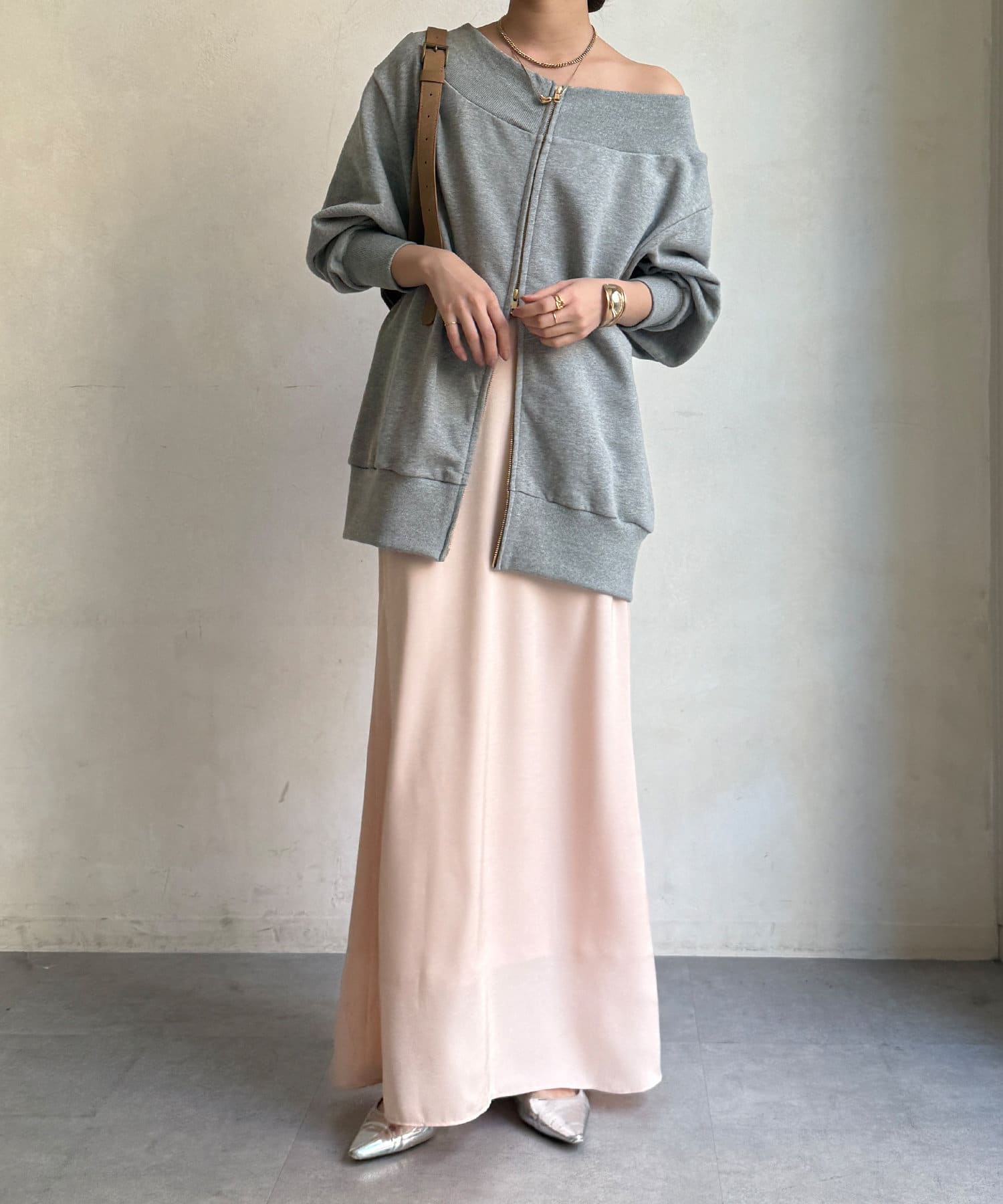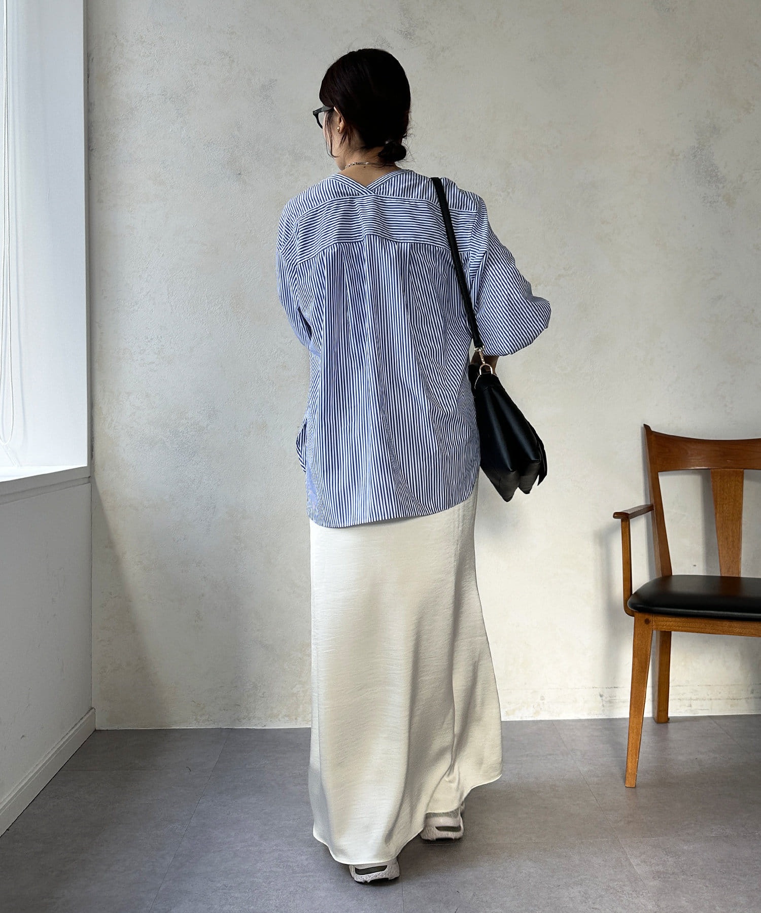 やや光沢感のある素材感が新鮮で、いつものスタイルをガラッと変えてくれます。