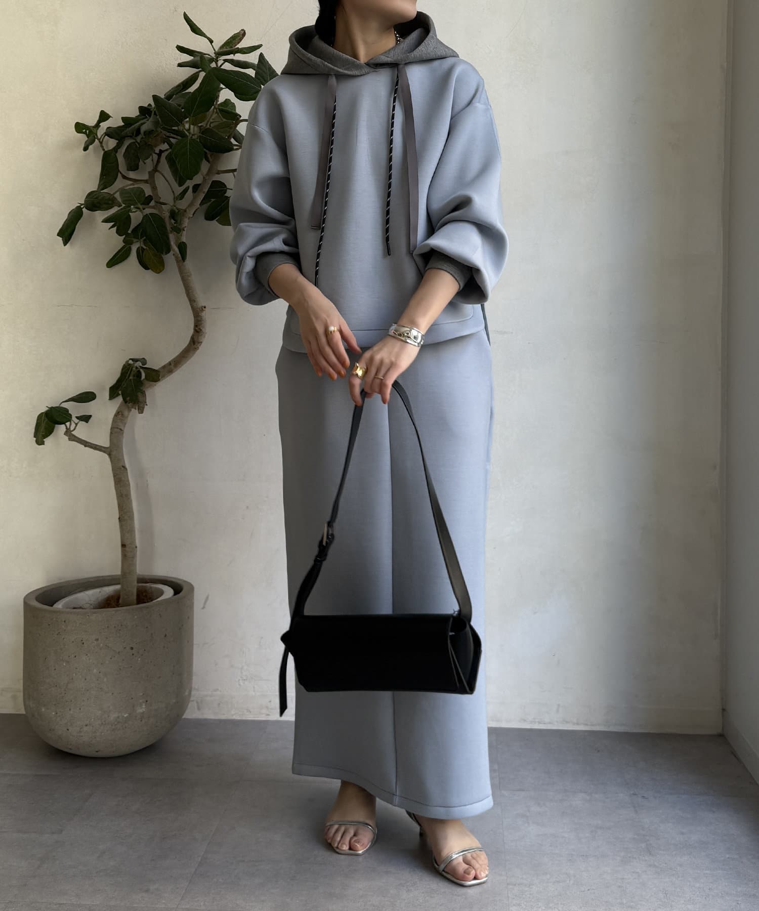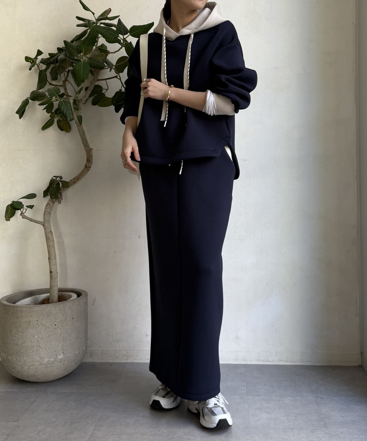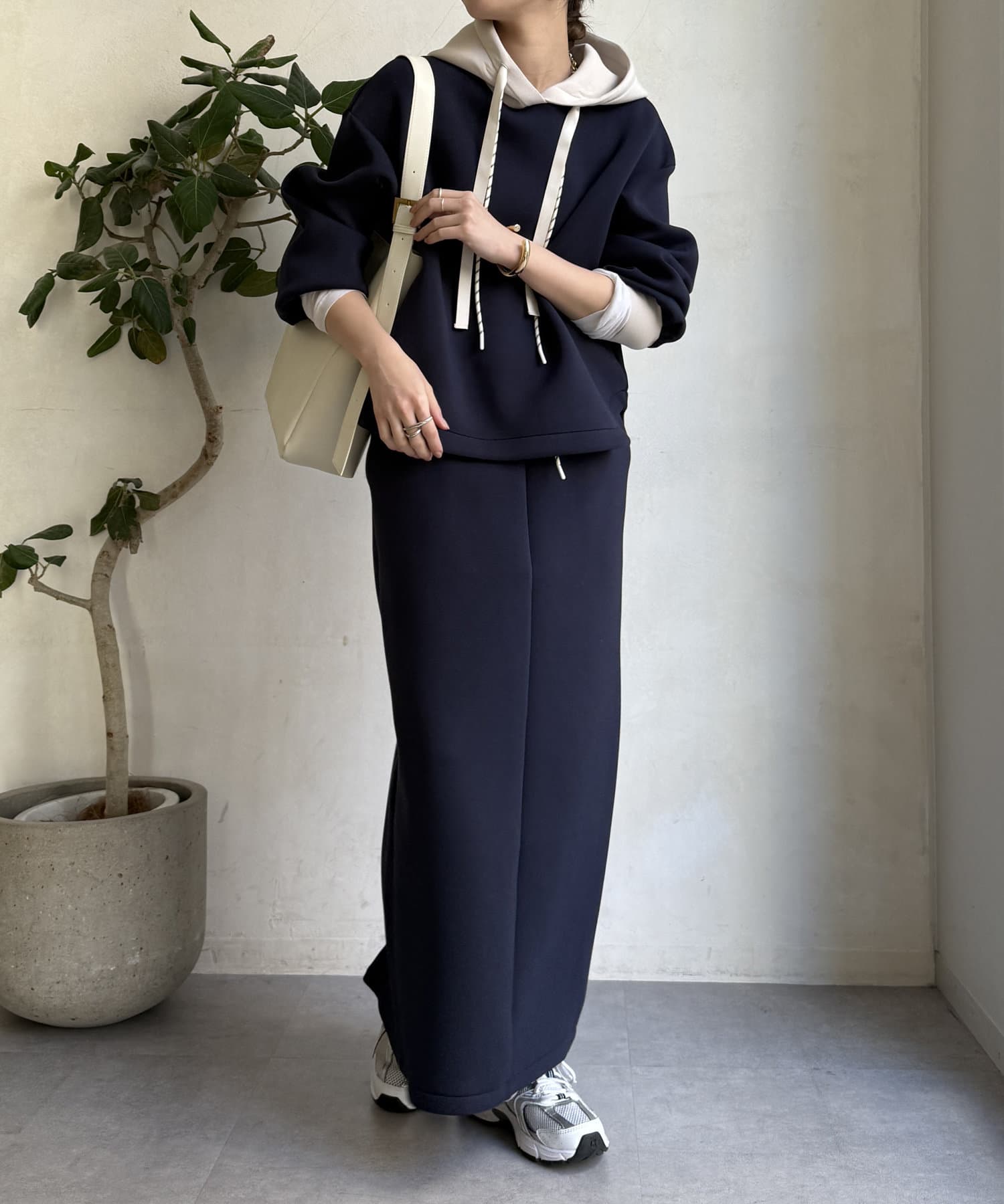 同素材のパーカー(【WEB限定】配色ダブルコードパーカー/DDZ1051106A0032)とのセットアップコーデがおススメです◎