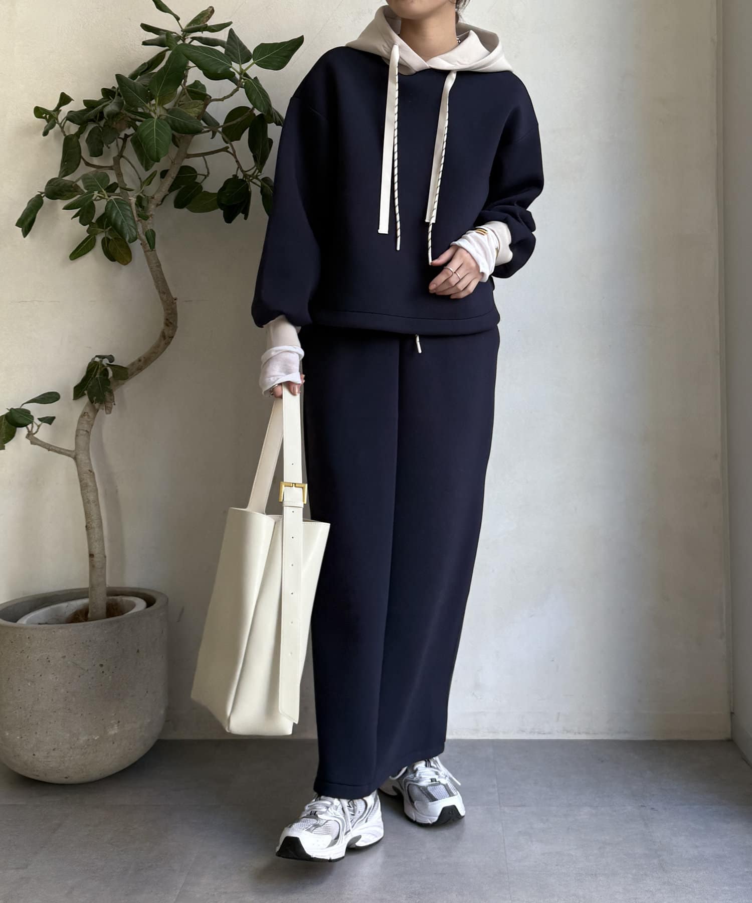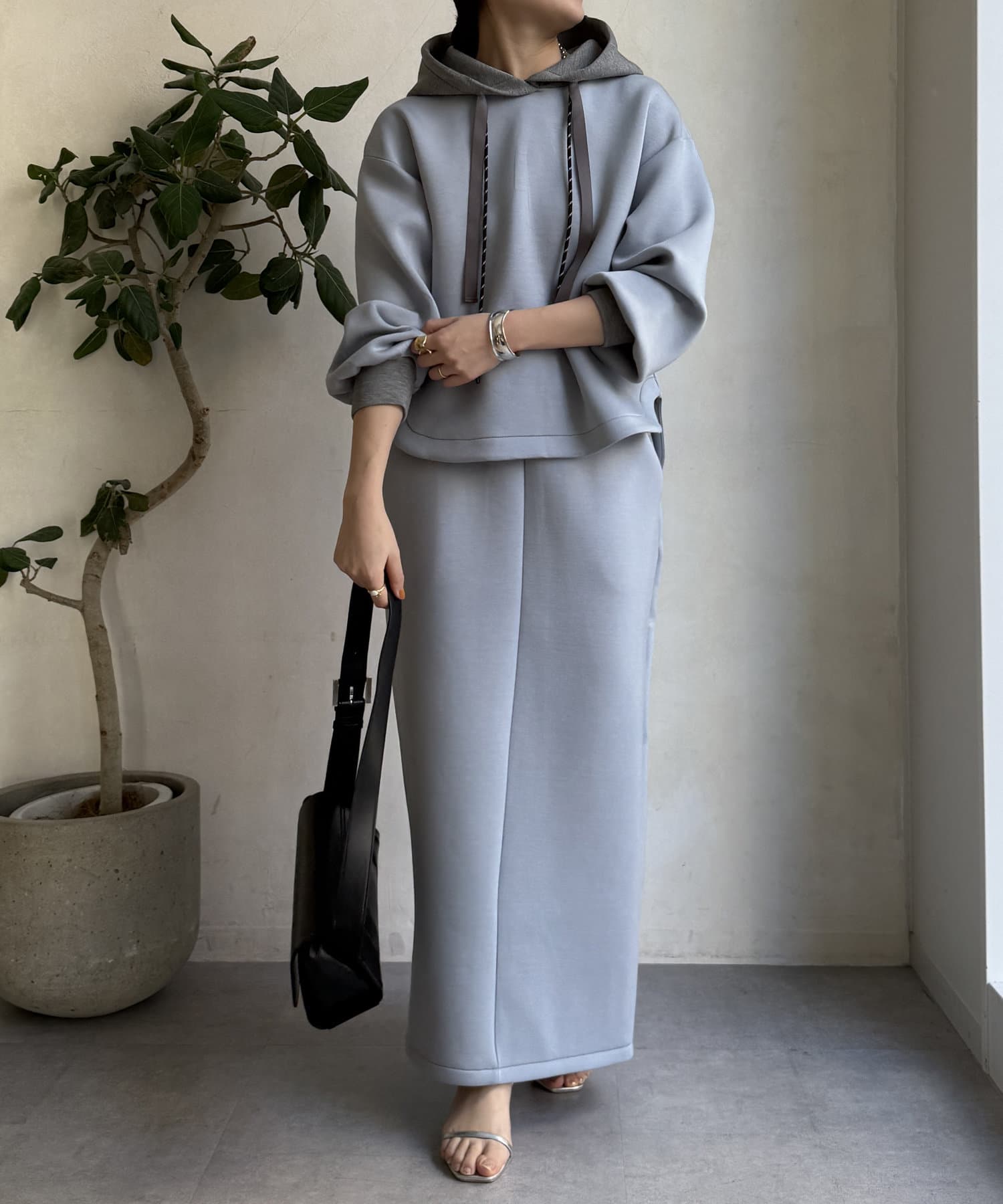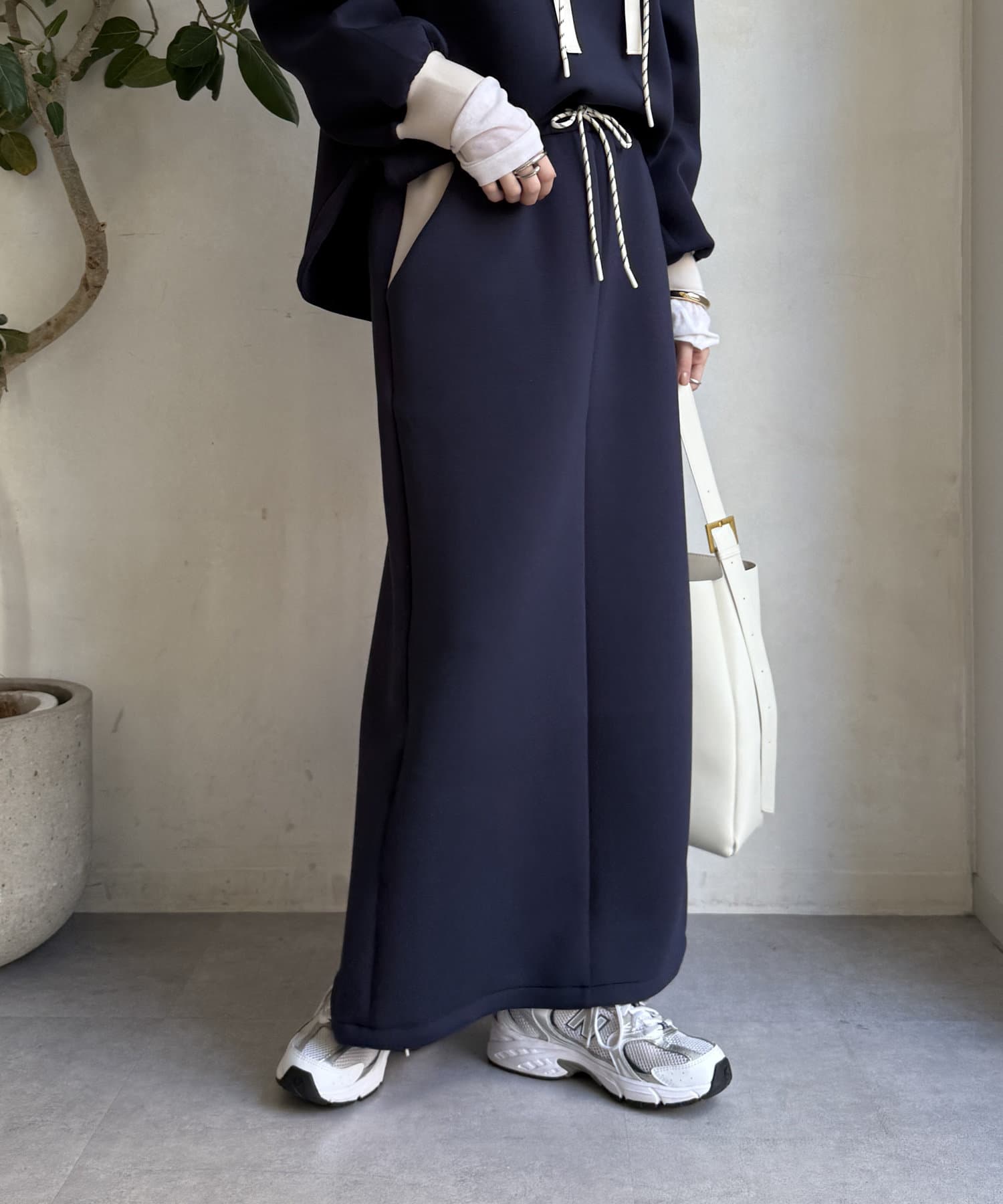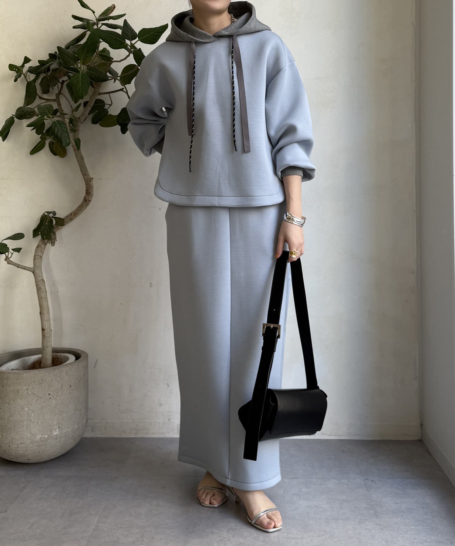 同素材のパーカー(【WEB限定】配色ダブルコードパーカー/DDZ1051106A0032)とのセットアップコーデがおススメです◎