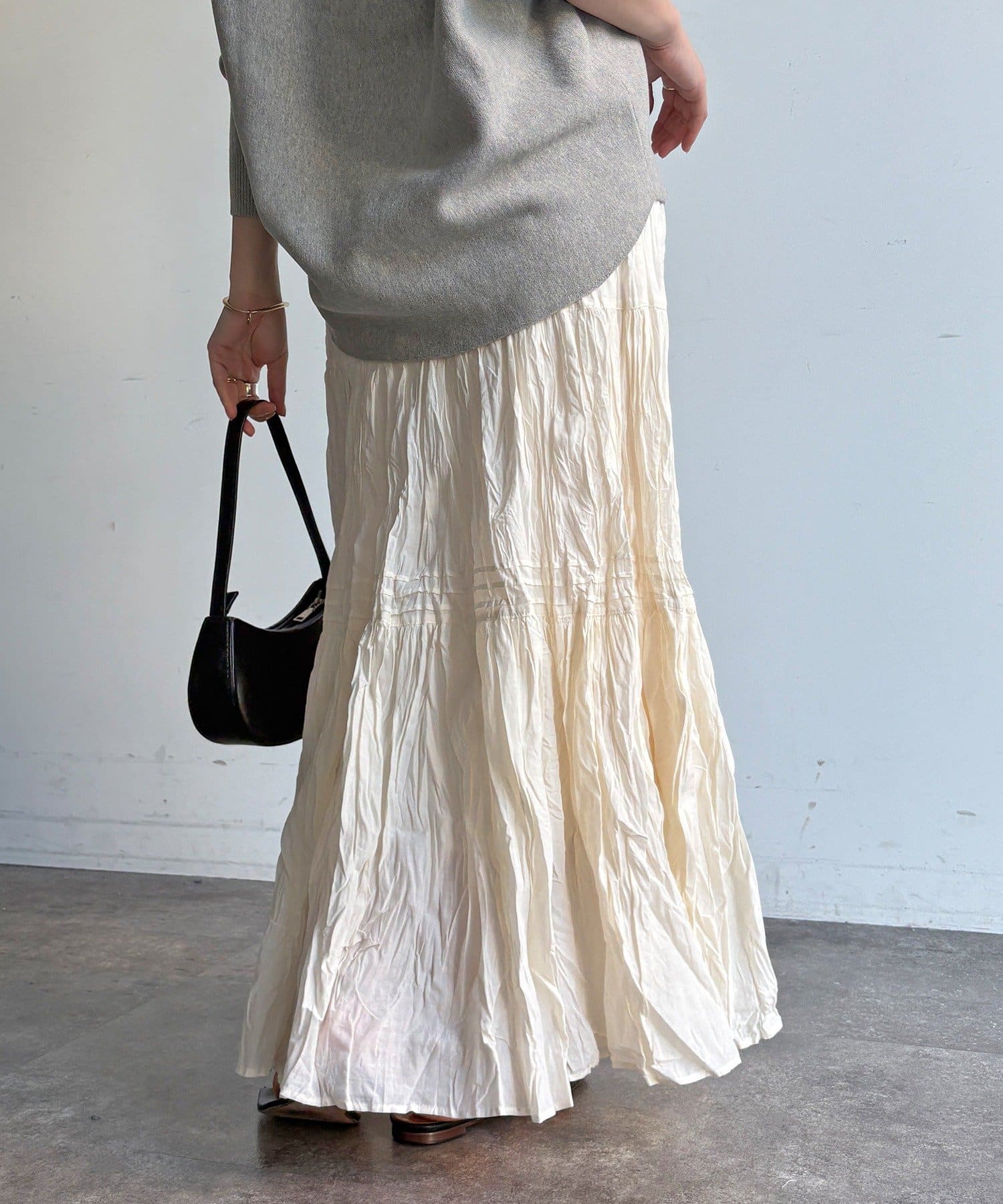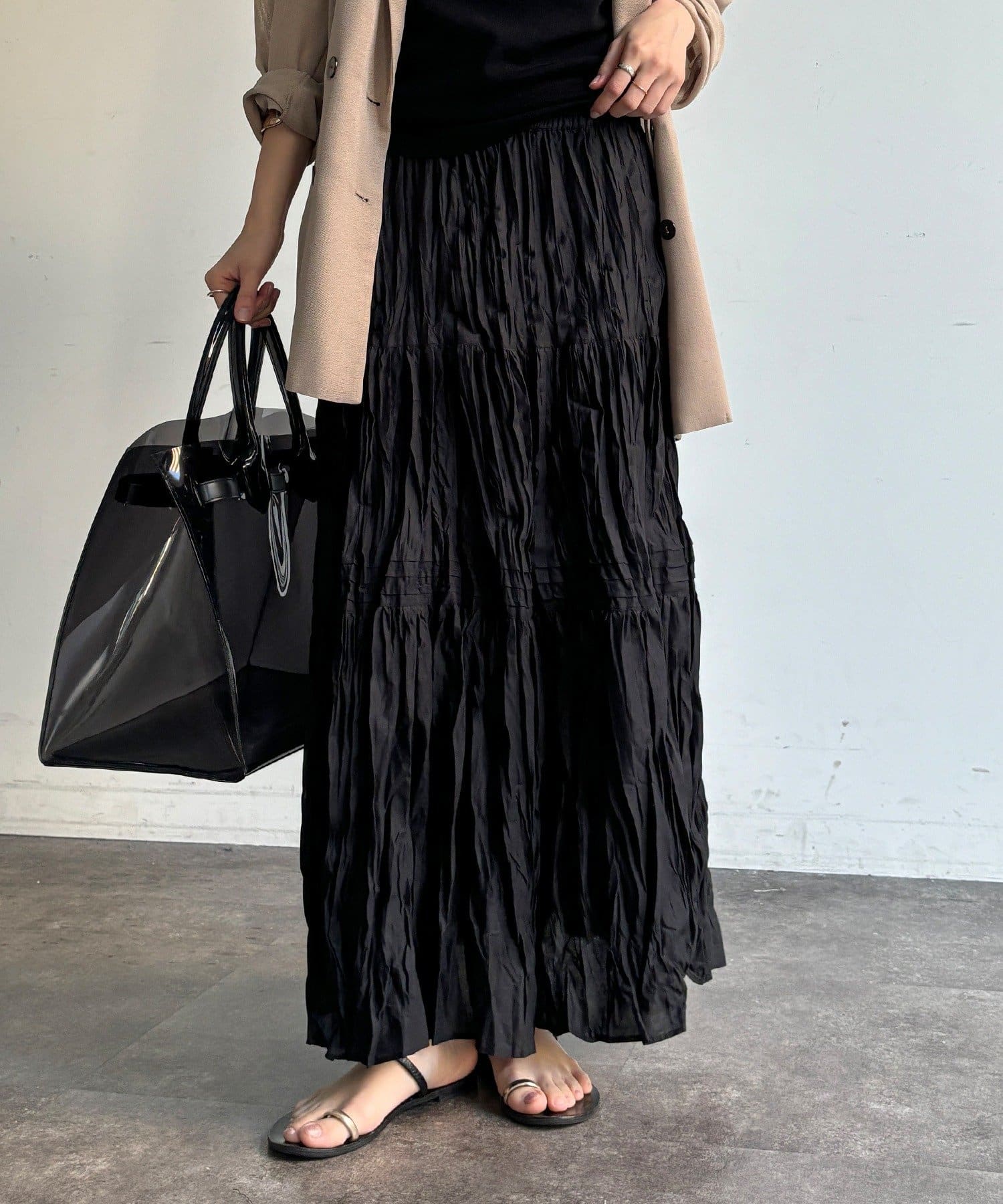 DOUDOU(ドゥドゥ) 【WEB限定】クリンクル加工ティアードスカート