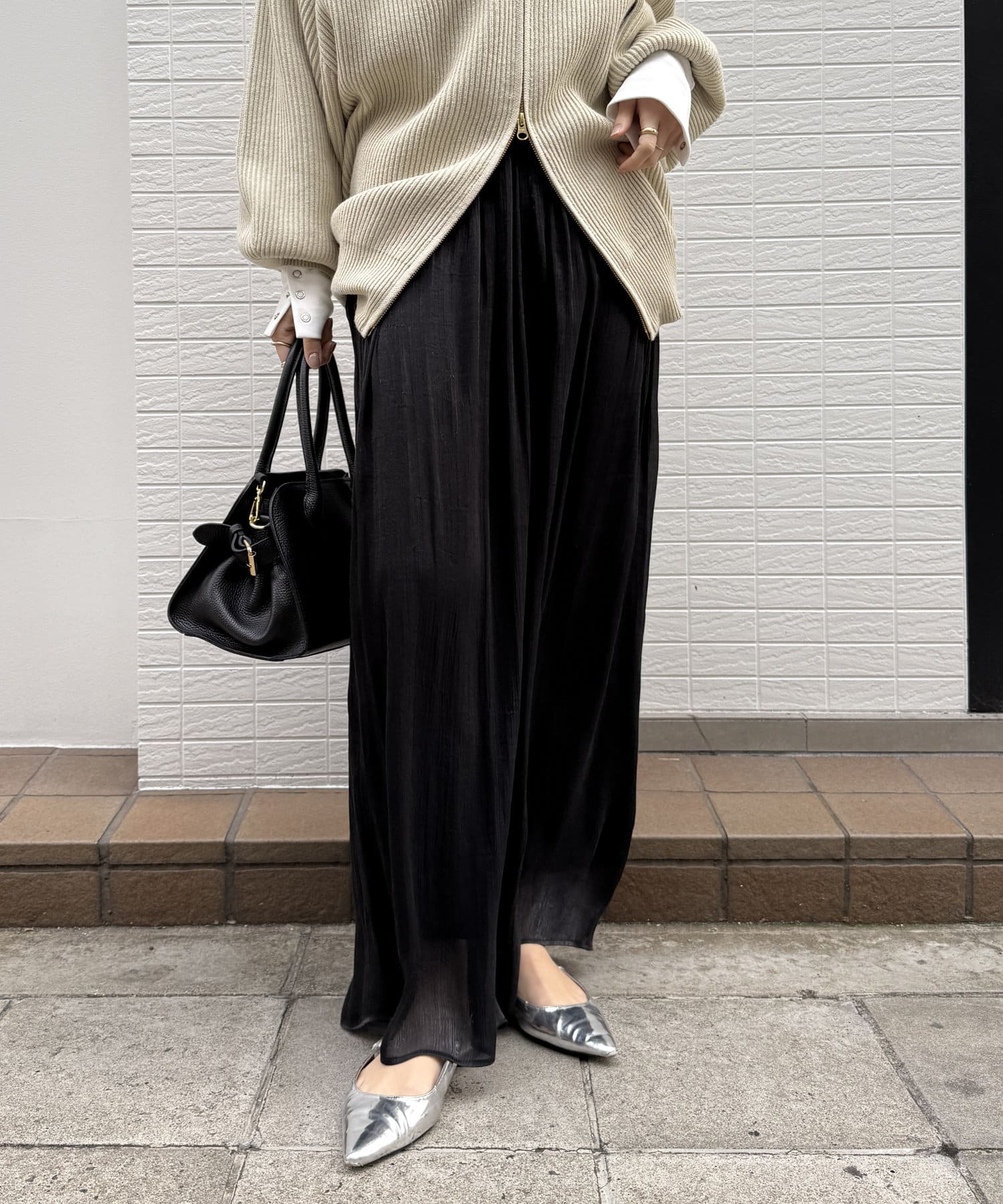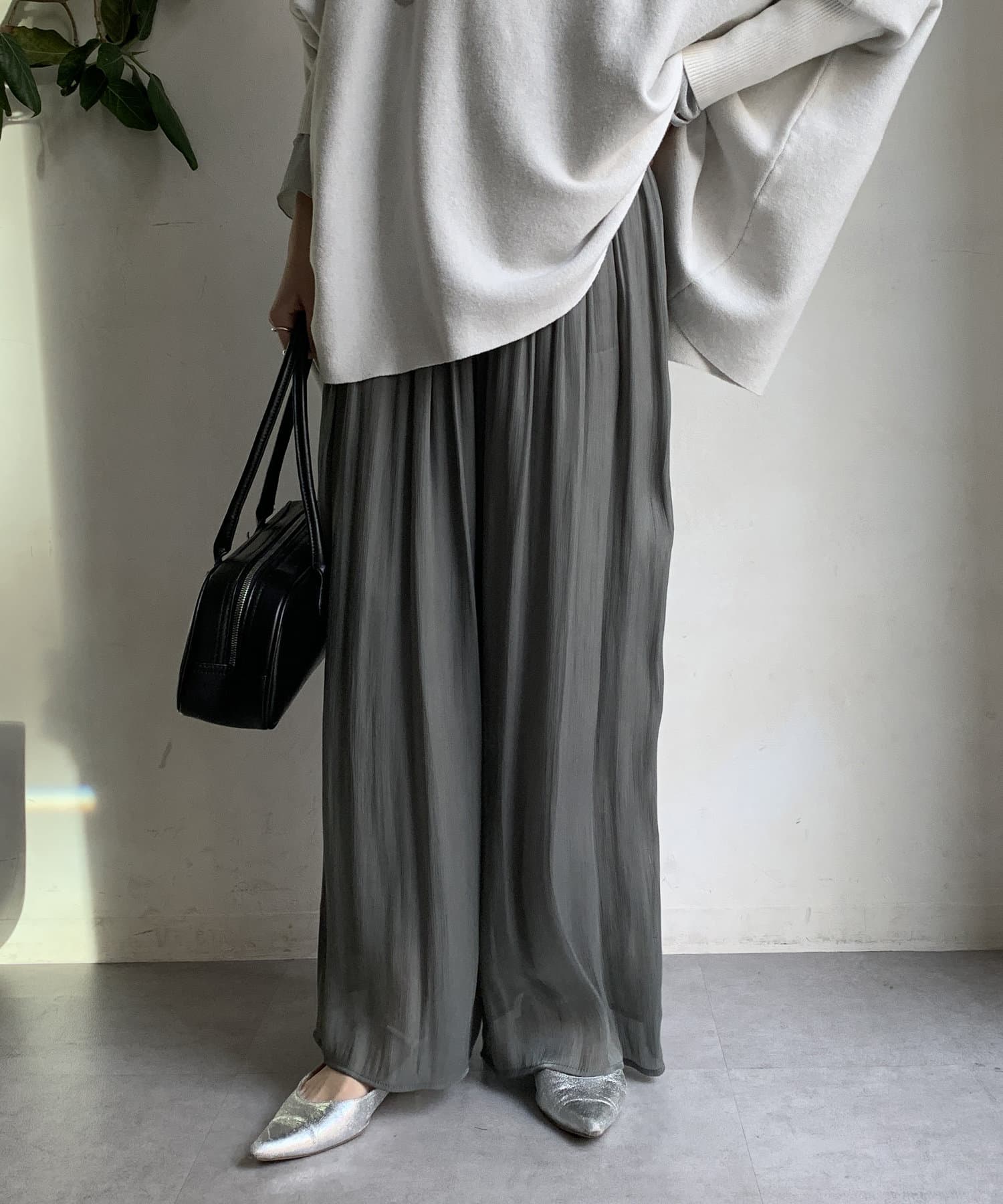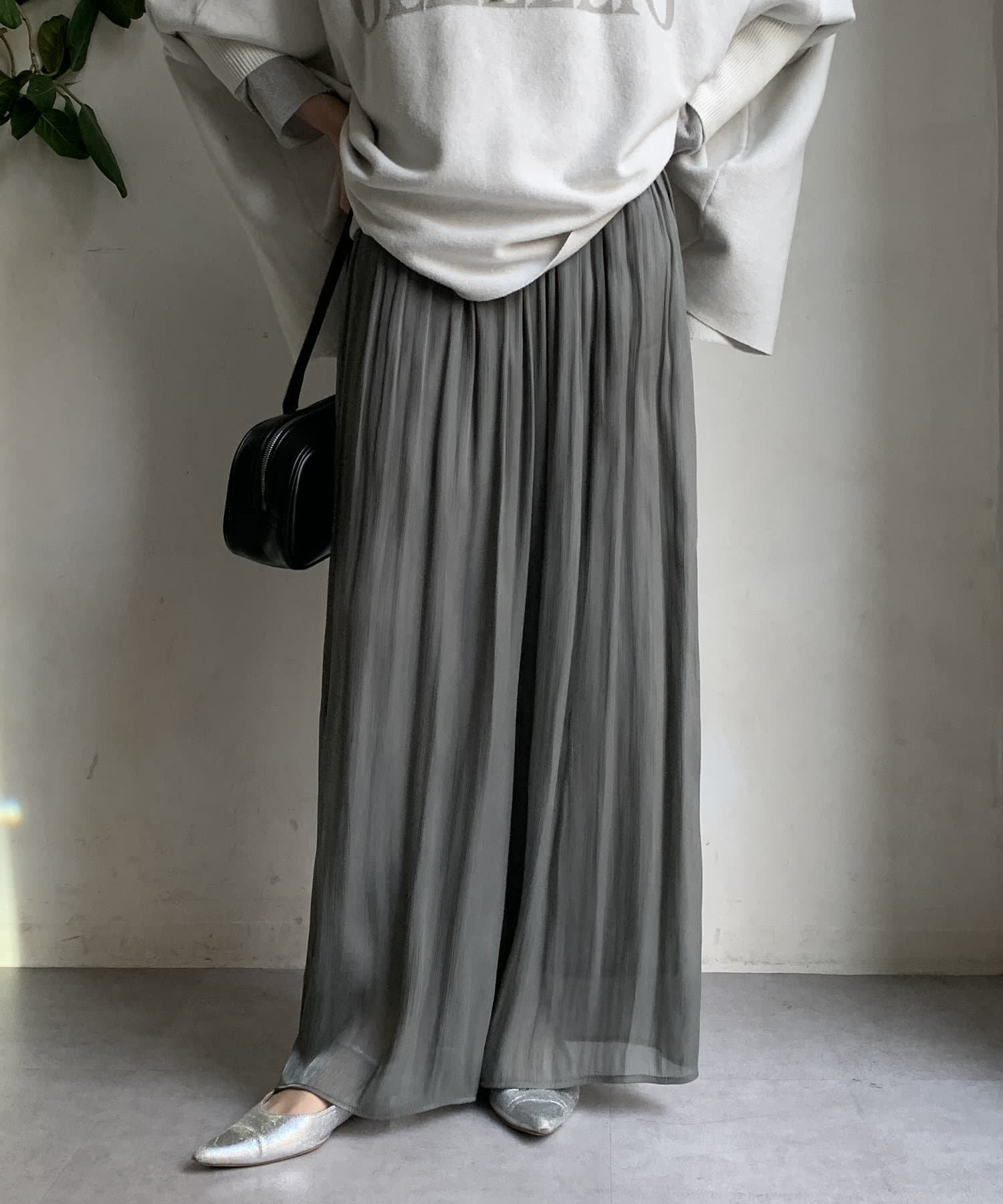 ウエスト部分からたくさんのギャザーが施された透け感のあるギャザーパンツが登場!