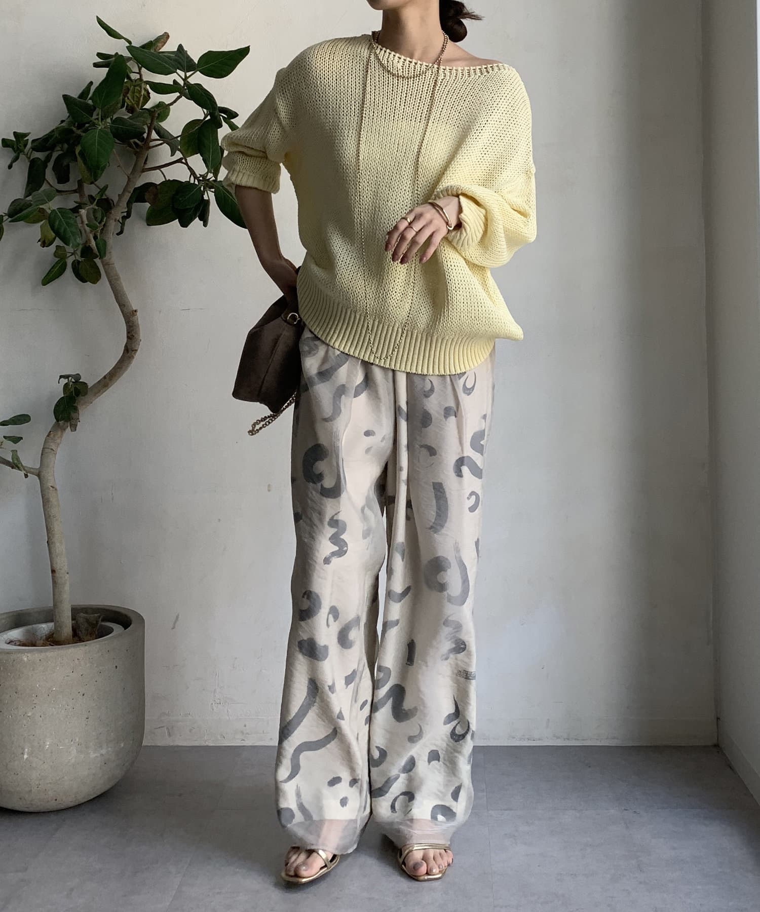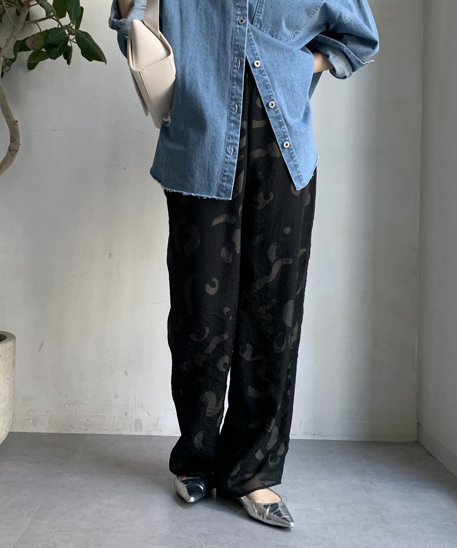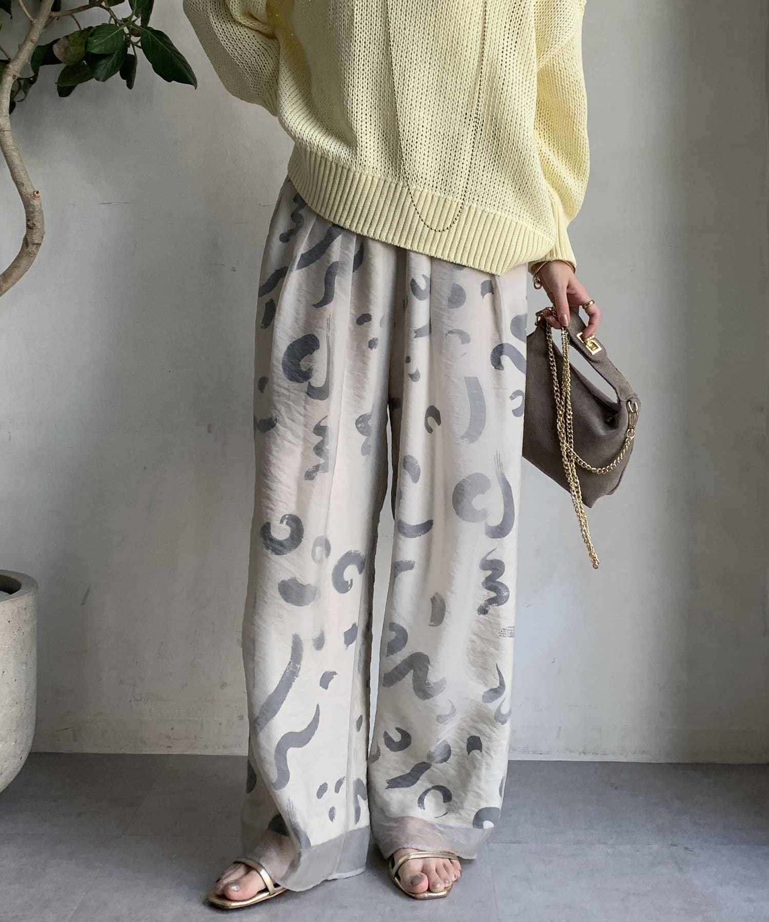プリント柄にオーガンジーをレイヤードさせたデザインパンツ!