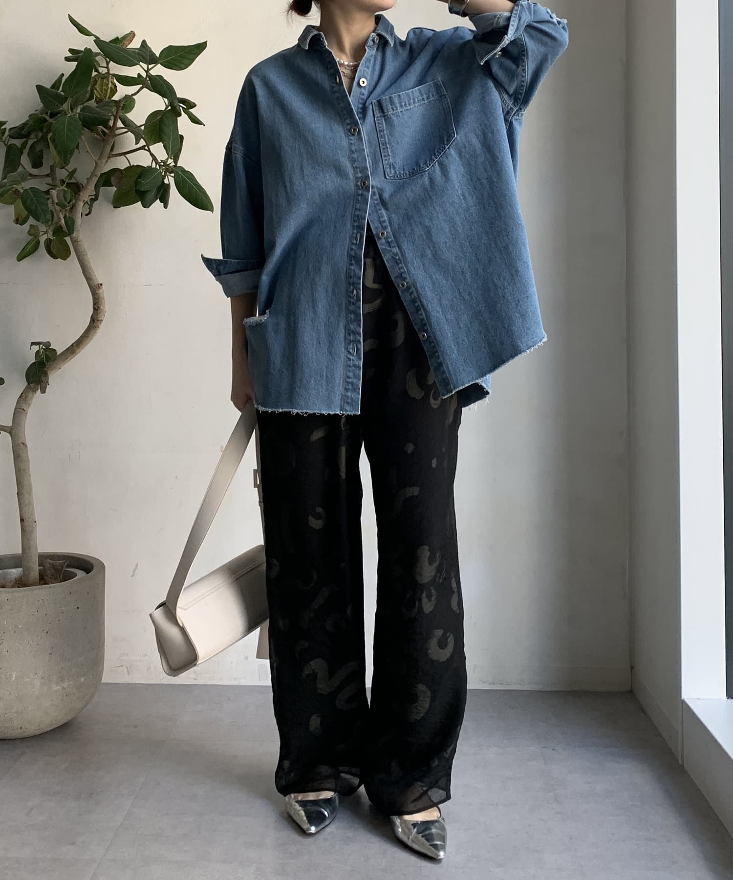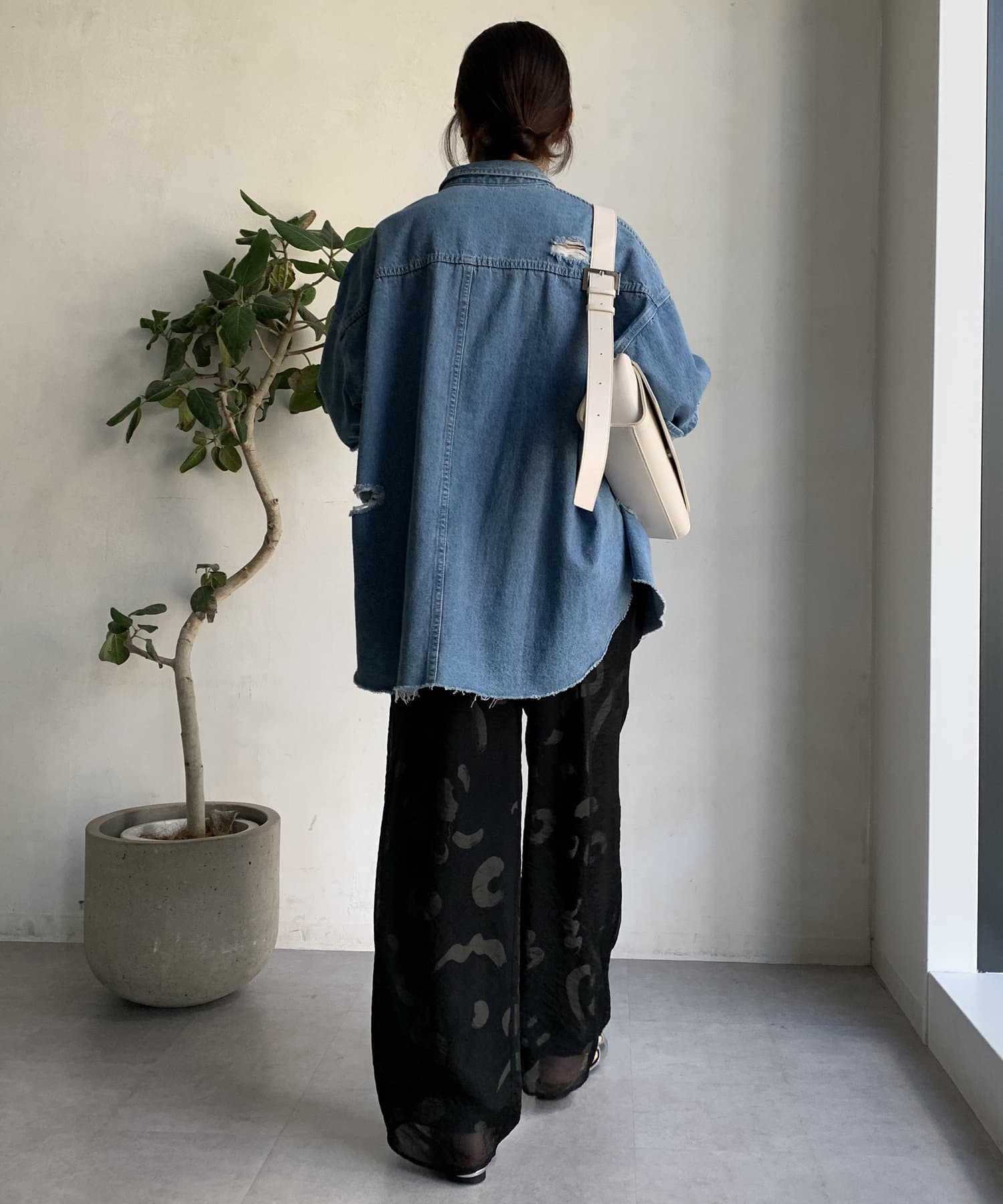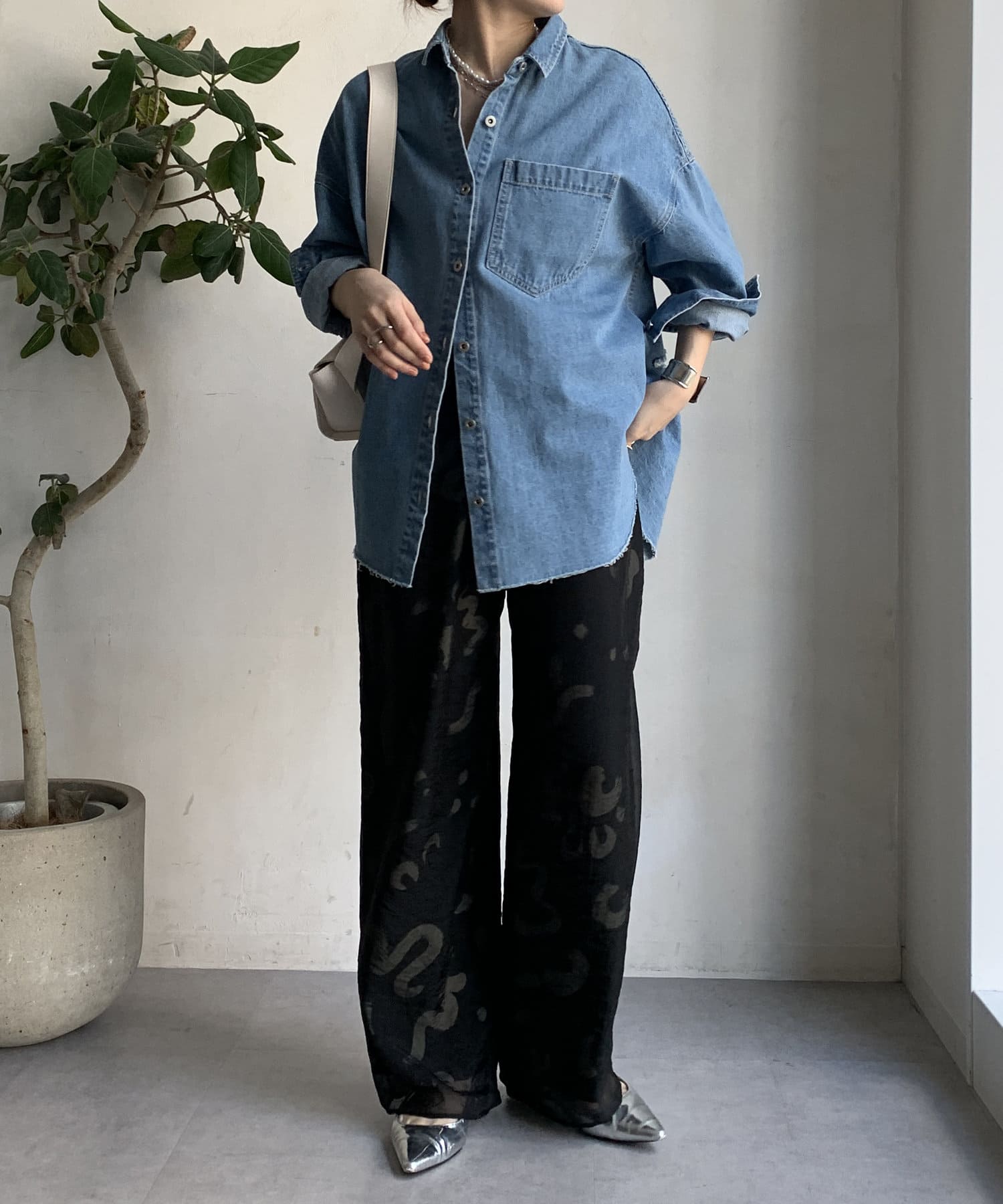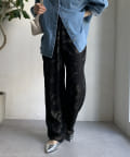 プリント柄にオーガンジーをレイヤードさせたデザインパンツ!