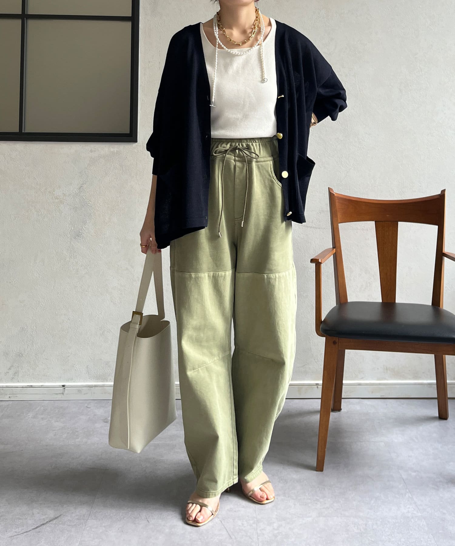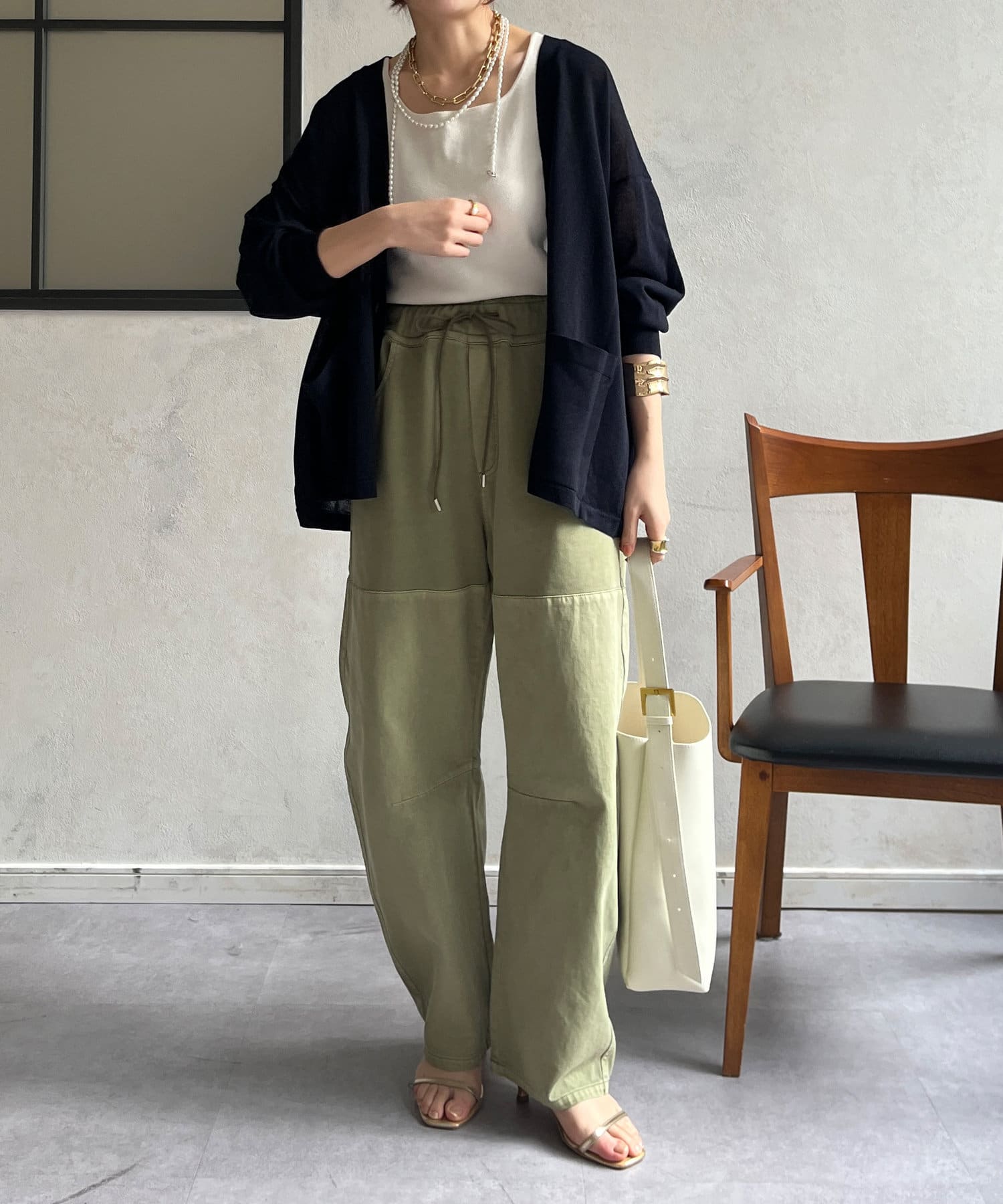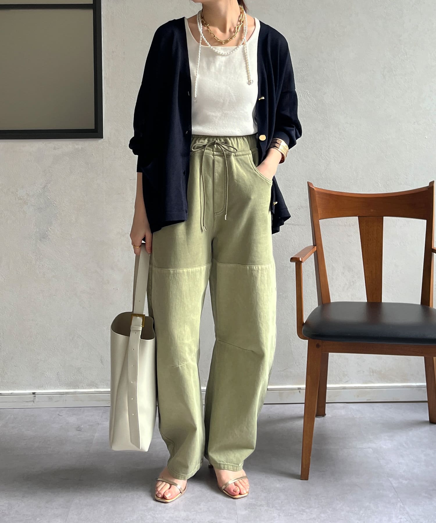 ウエスト回りは紐で調節可能でラフな履き心地のため、デイリー使いにぴったりですよ。