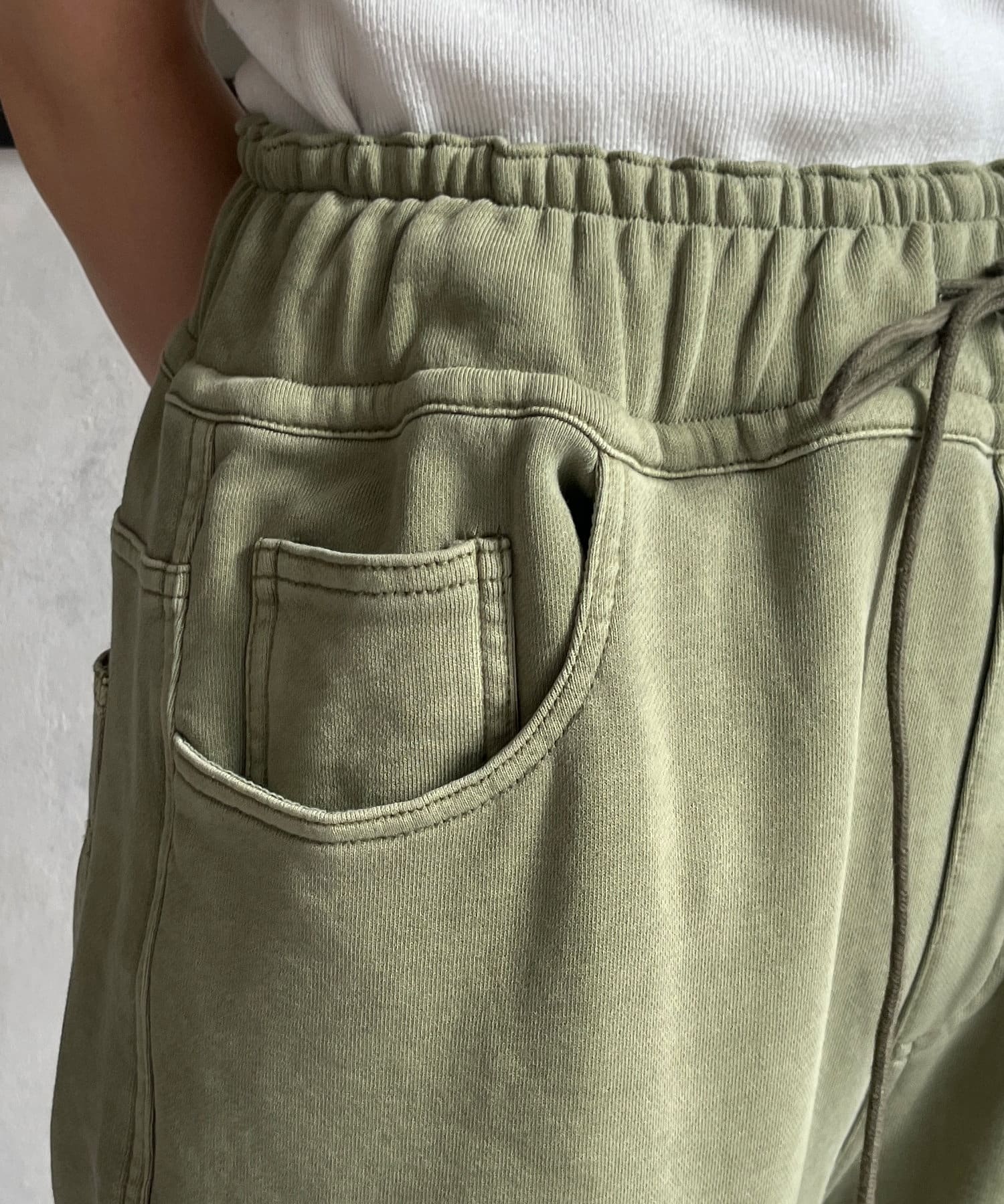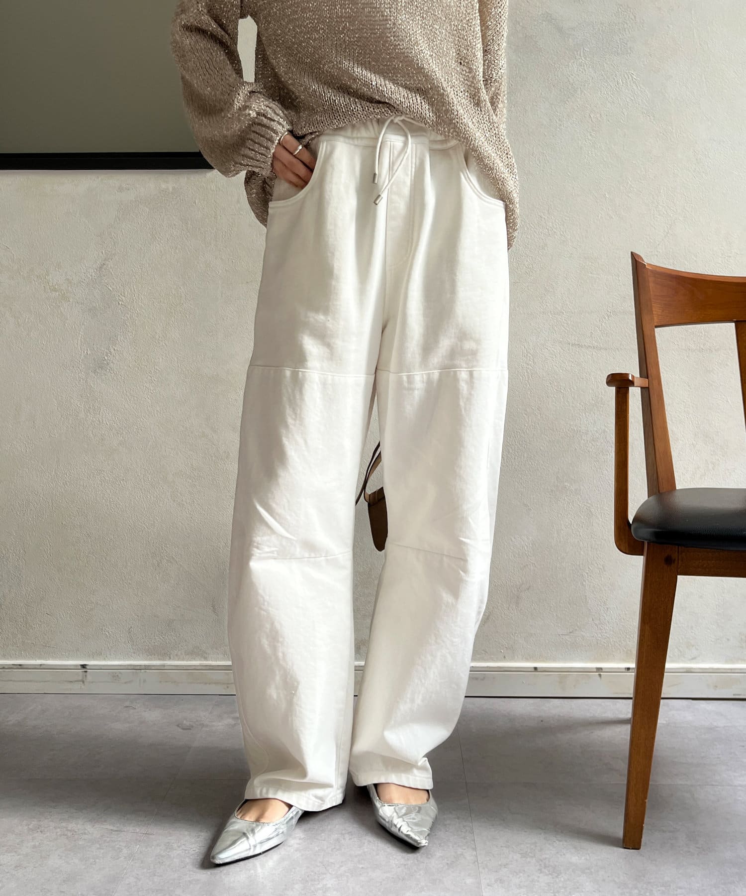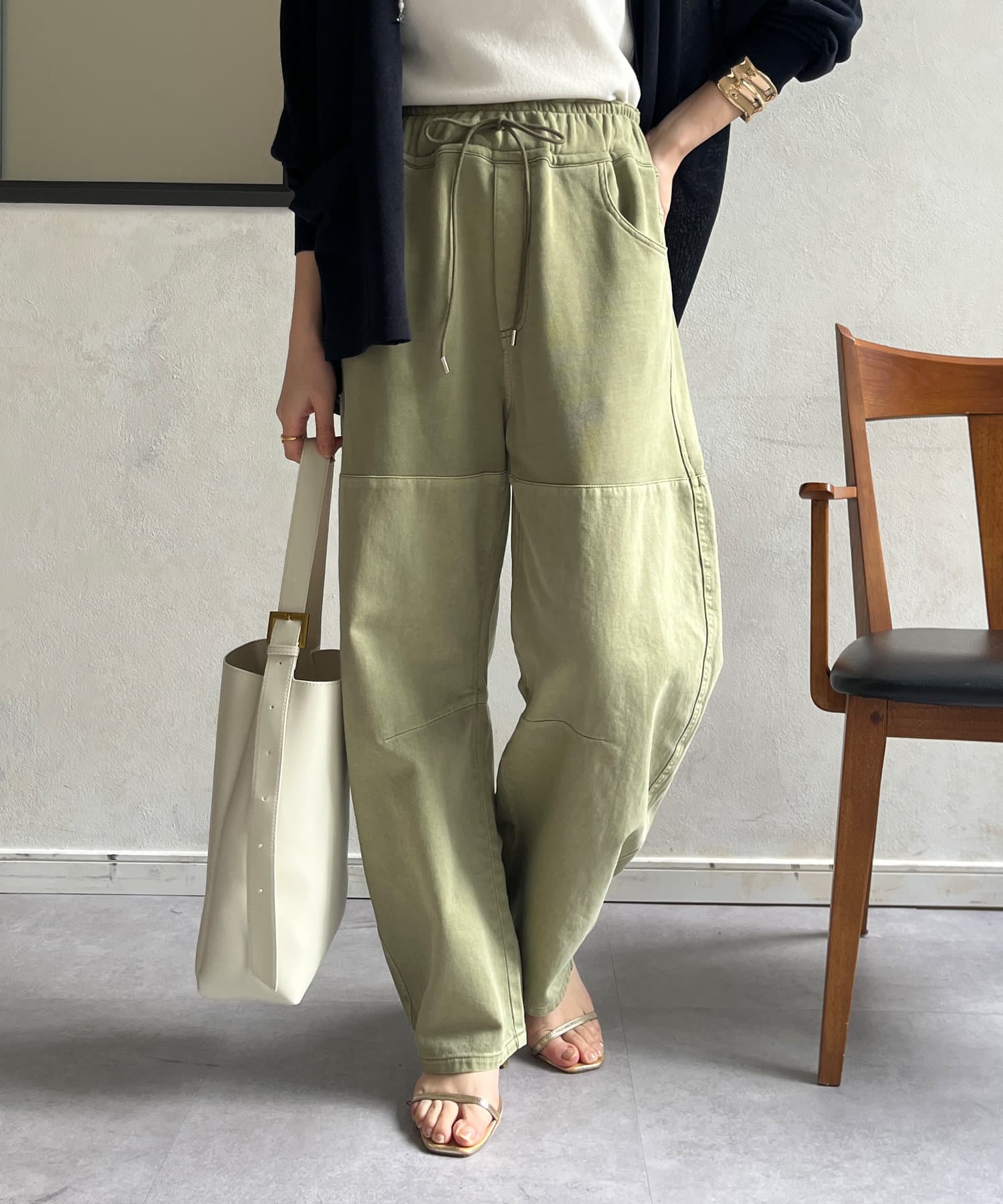 ウエスト回りは紐で調節可能でラフな履き心地のため、デイリー使いにぴったりですよ。