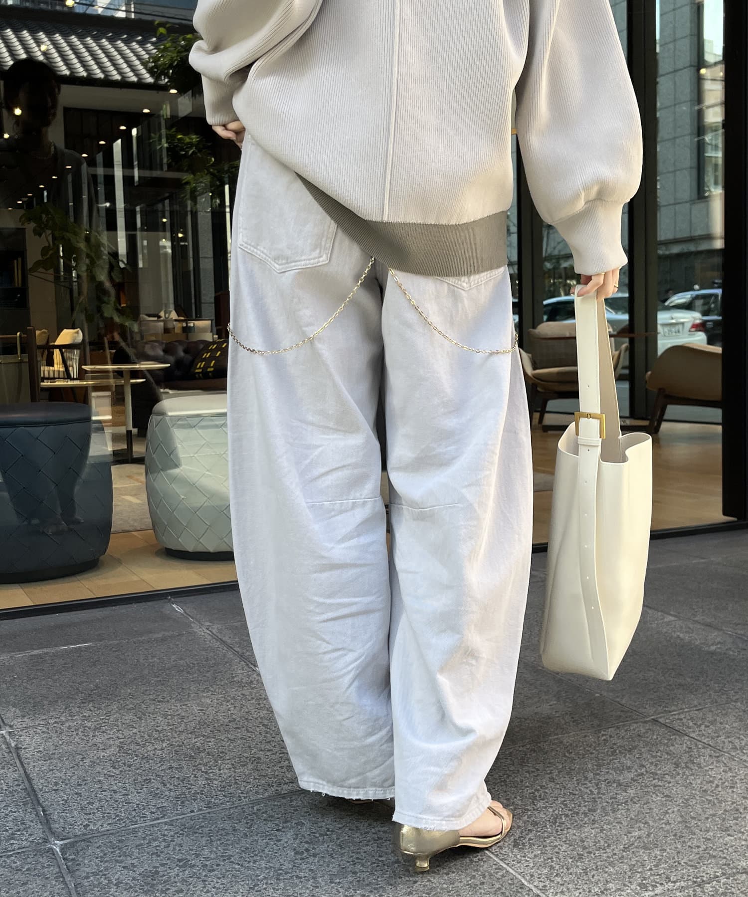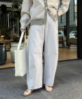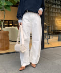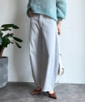 ヒップラインや脚のラインなど気になる部分をカバーしながら、裾にかけて細見になるシルエットに。
