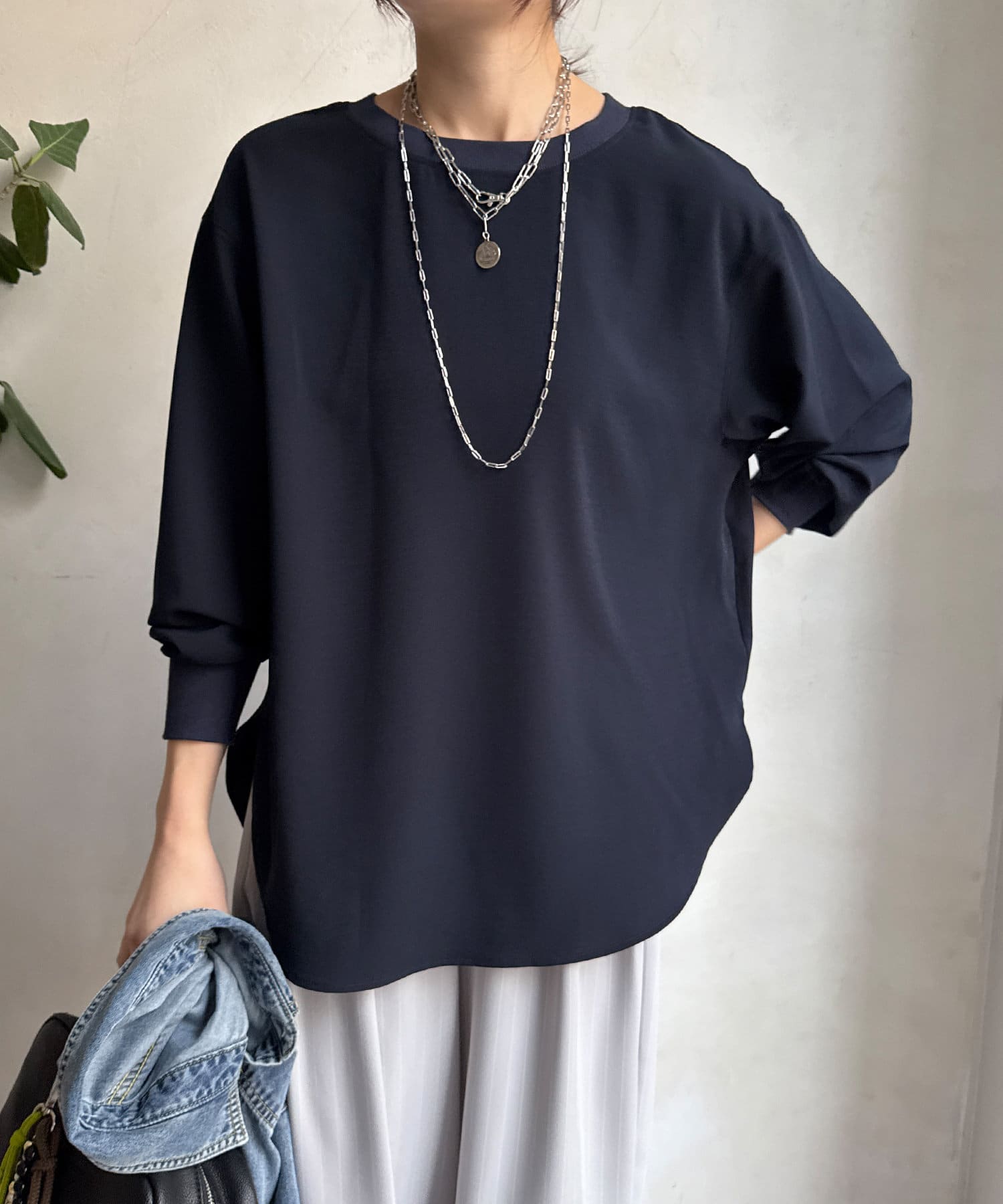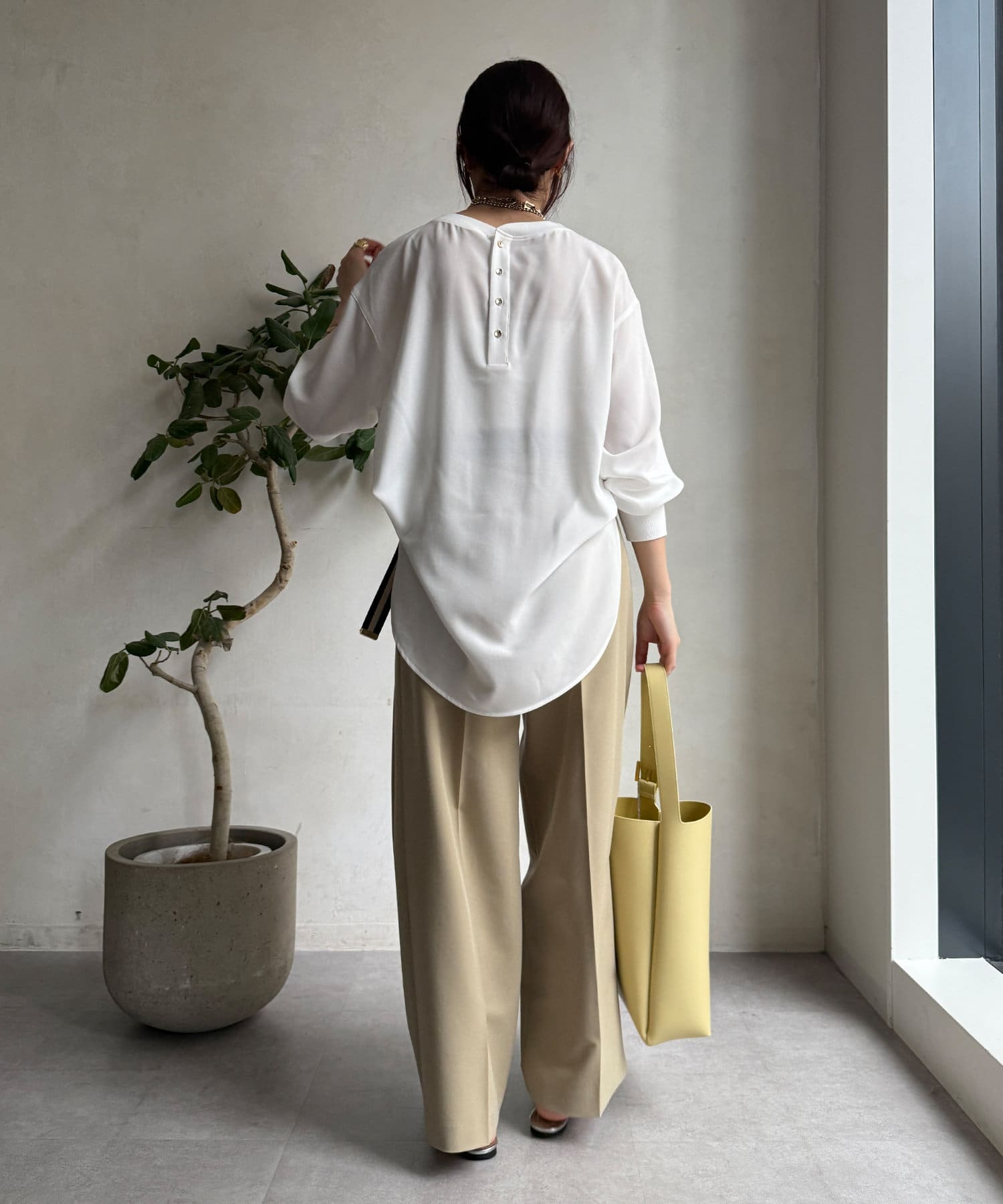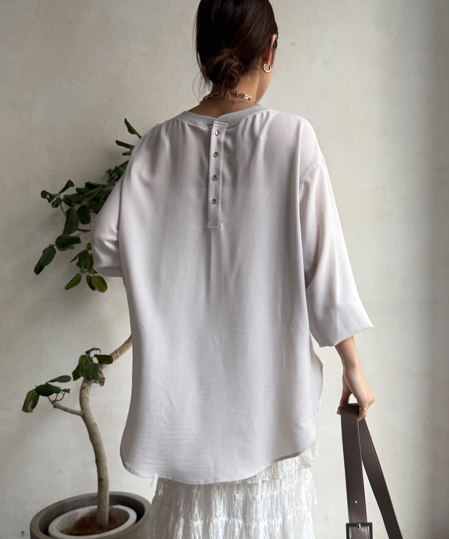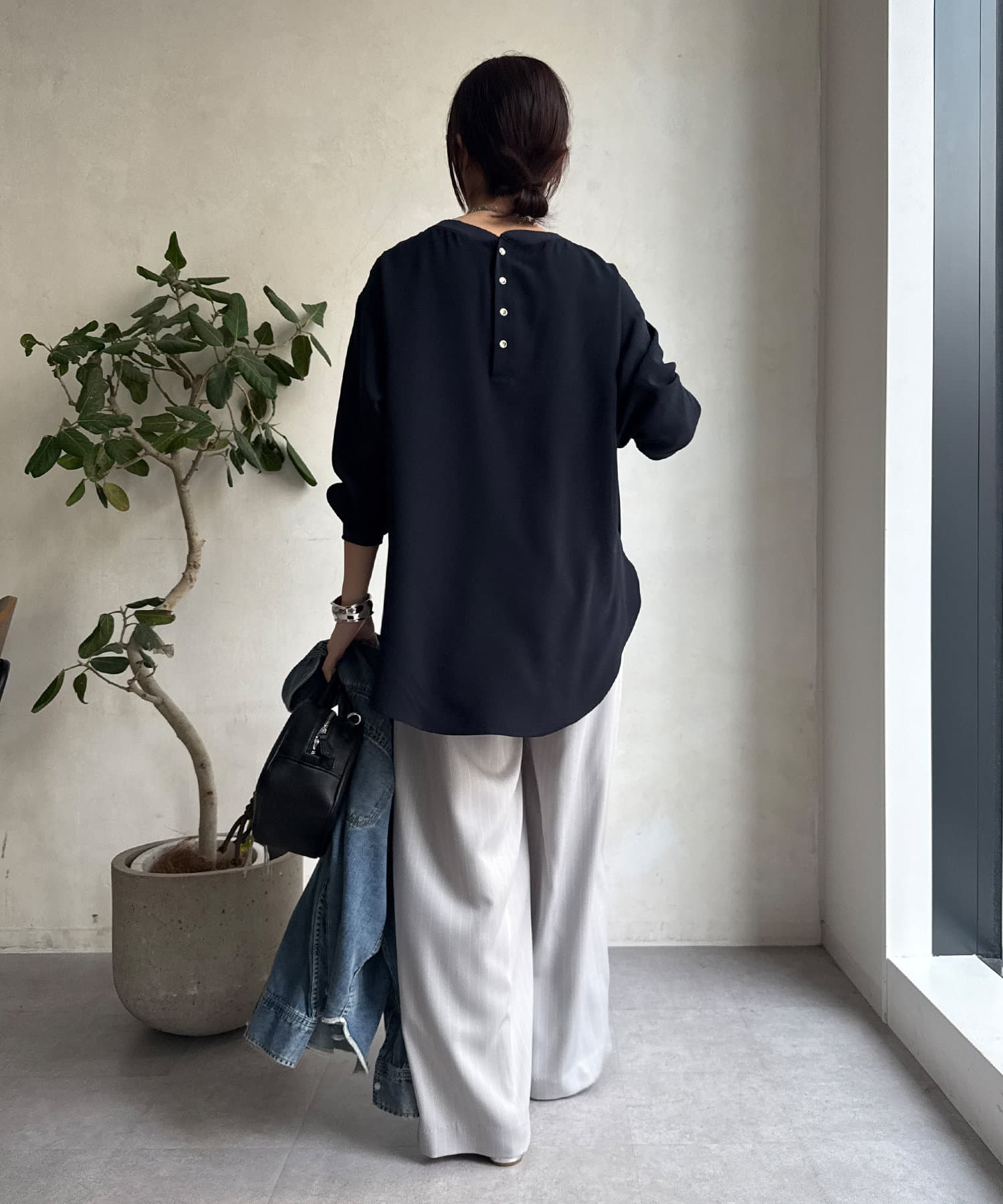 【シーズンレスに着られる】袖リブバックボタンジョーゼットプルオーバー