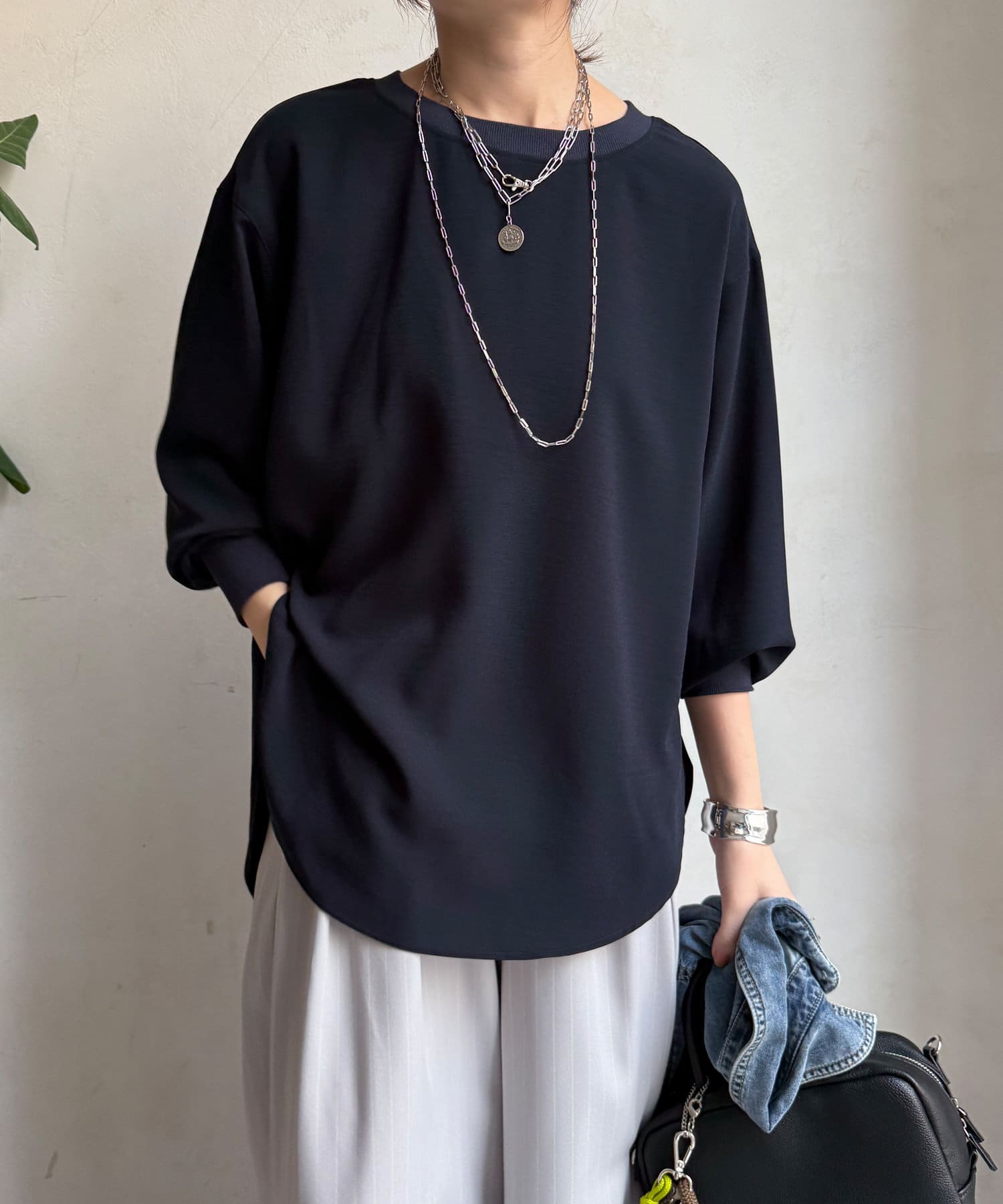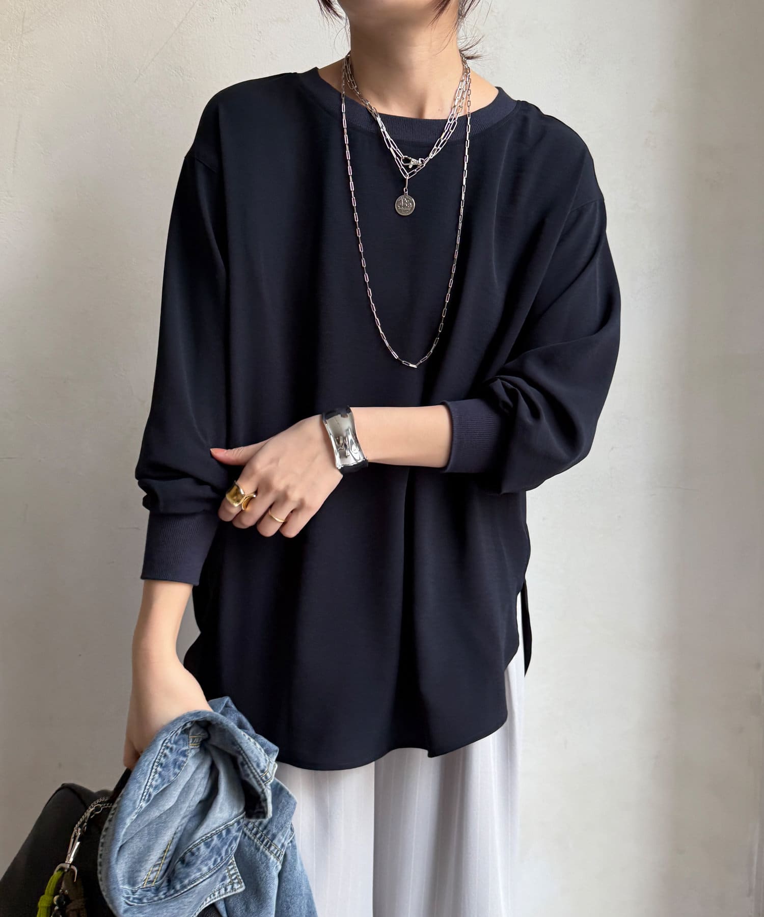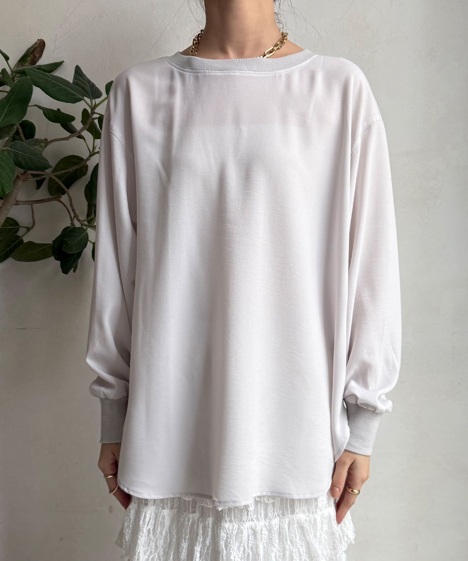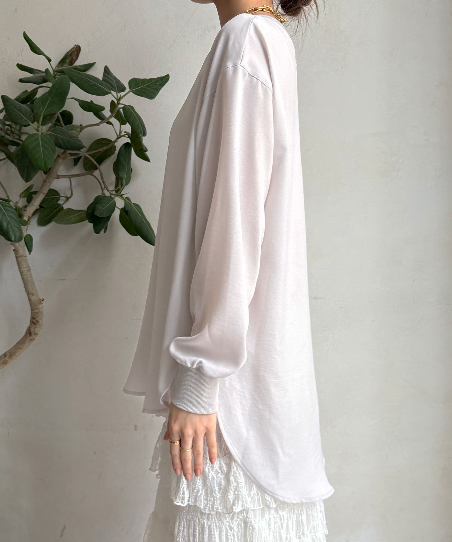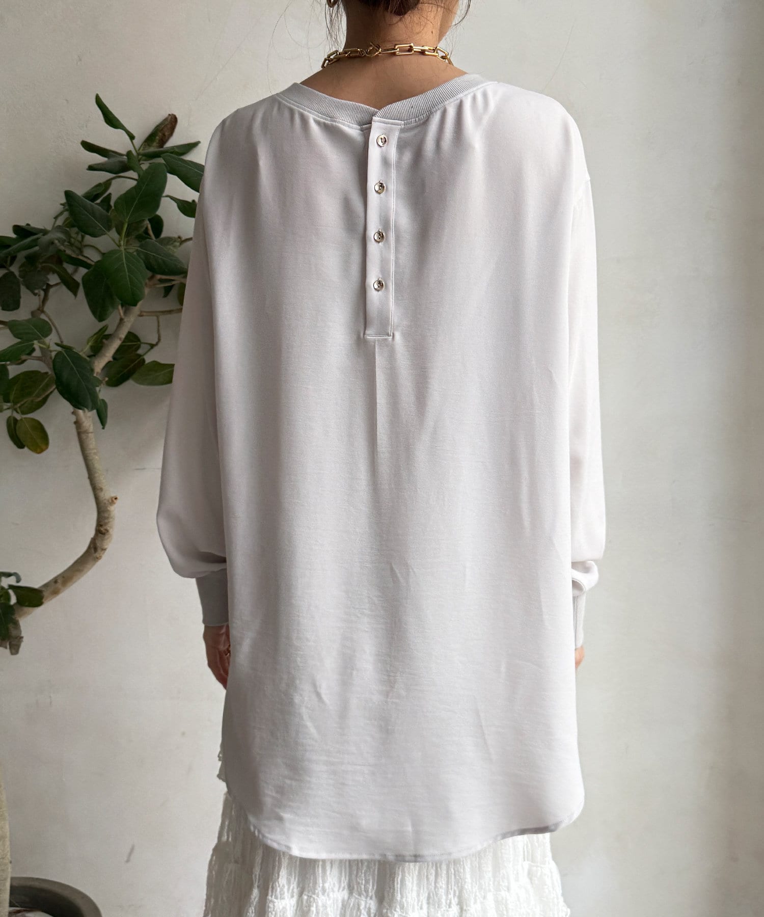 【シーズンレスに着られる】袖リブバックボタンジョーゼットプルオーバー
