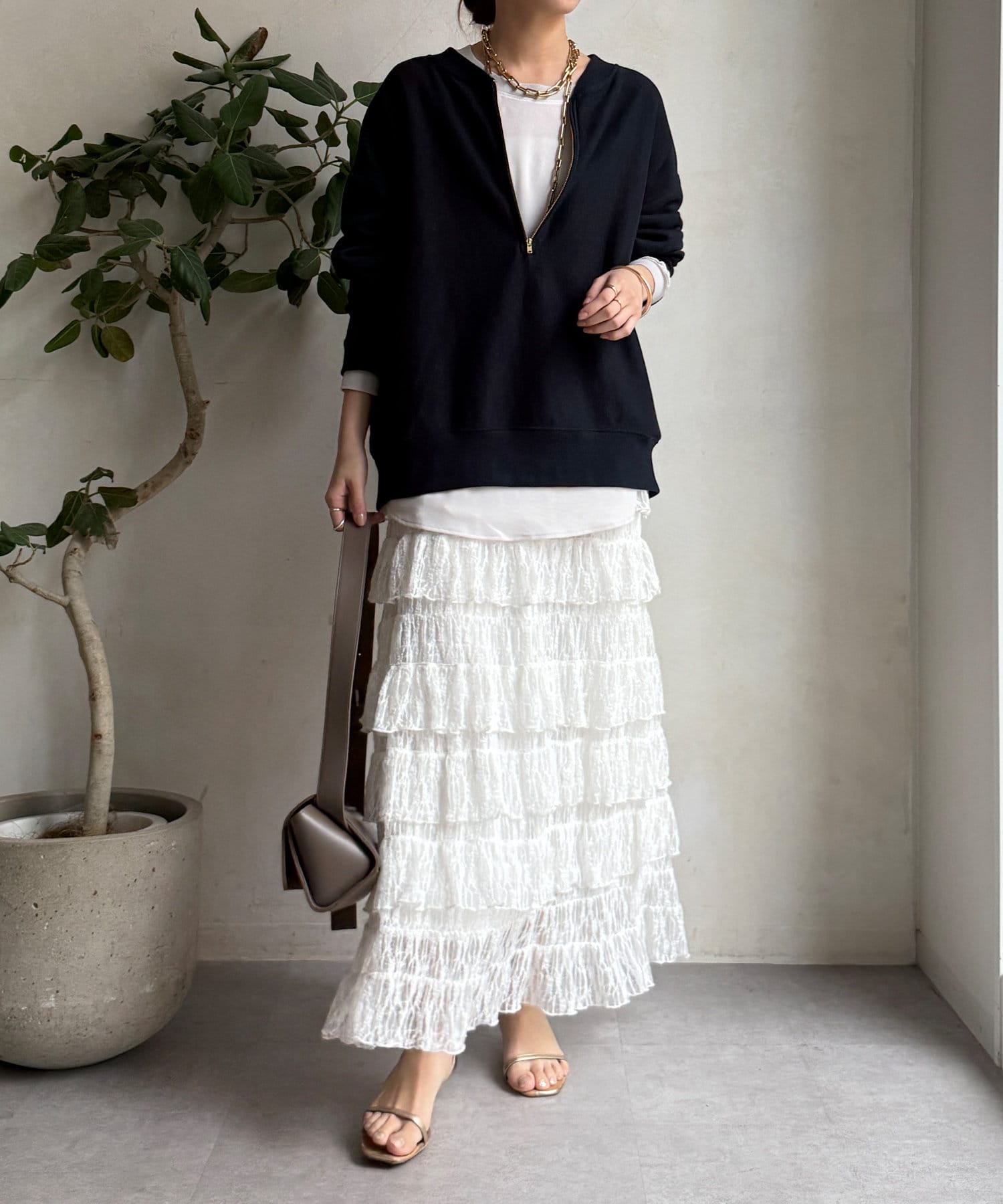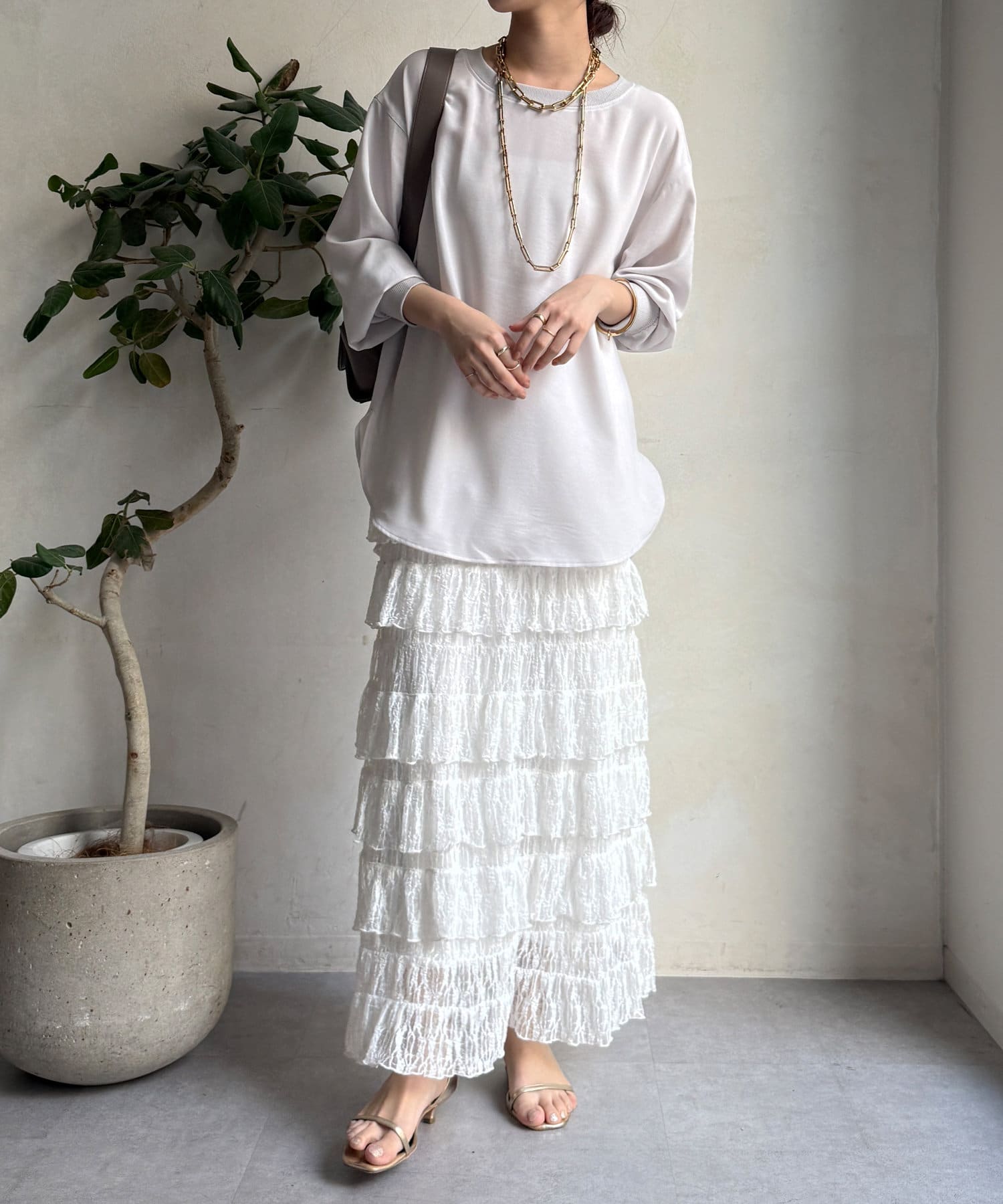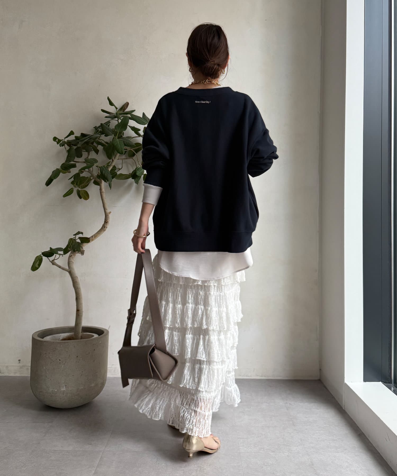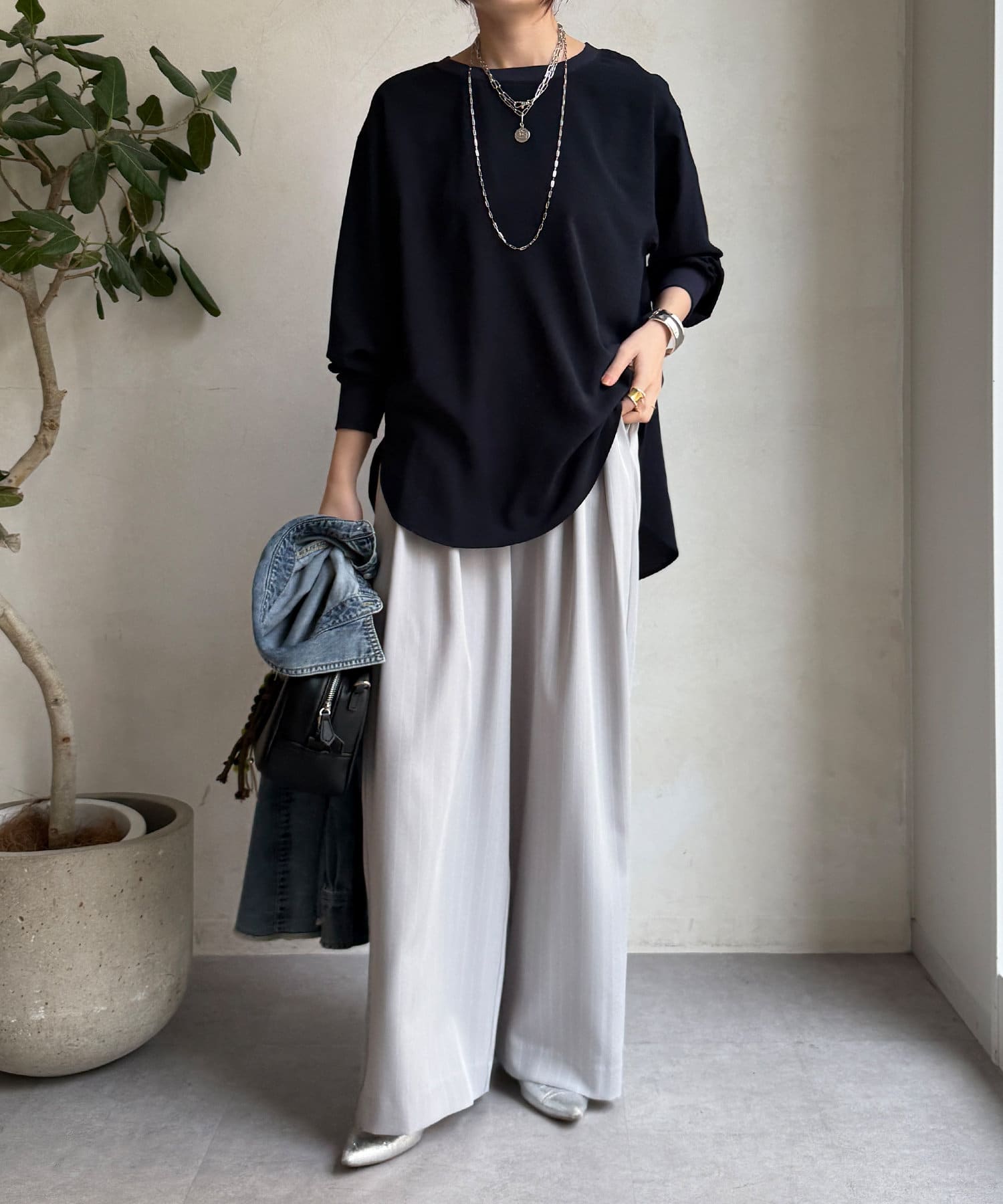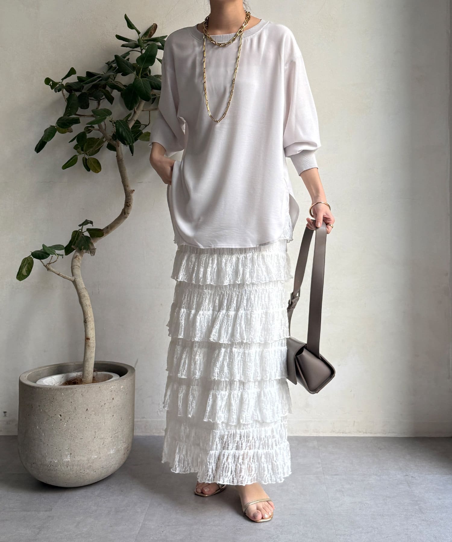 ジョーゼットの軽い素材感できれいめカジュアルなスタイルに!