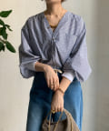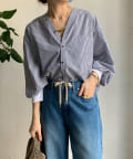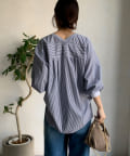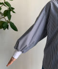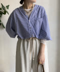 さわやかな印象を与えてくれるストライプの素材に、ゴールドボタンのデザインでレディライクなポイントをプラス。