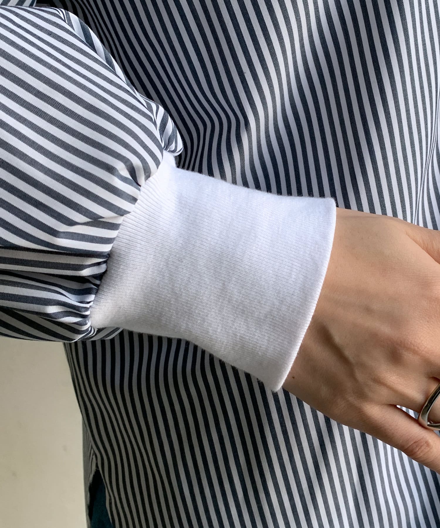 そして、お袖口はリブ仕様に仕上げることで程よくカジュアルな印象を与えます。