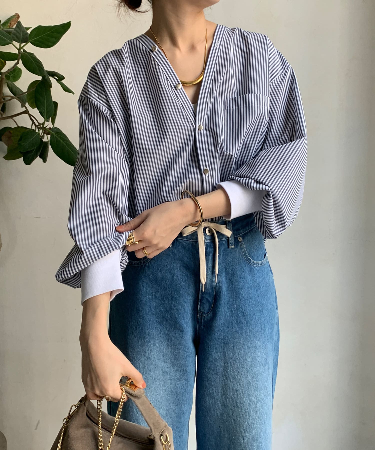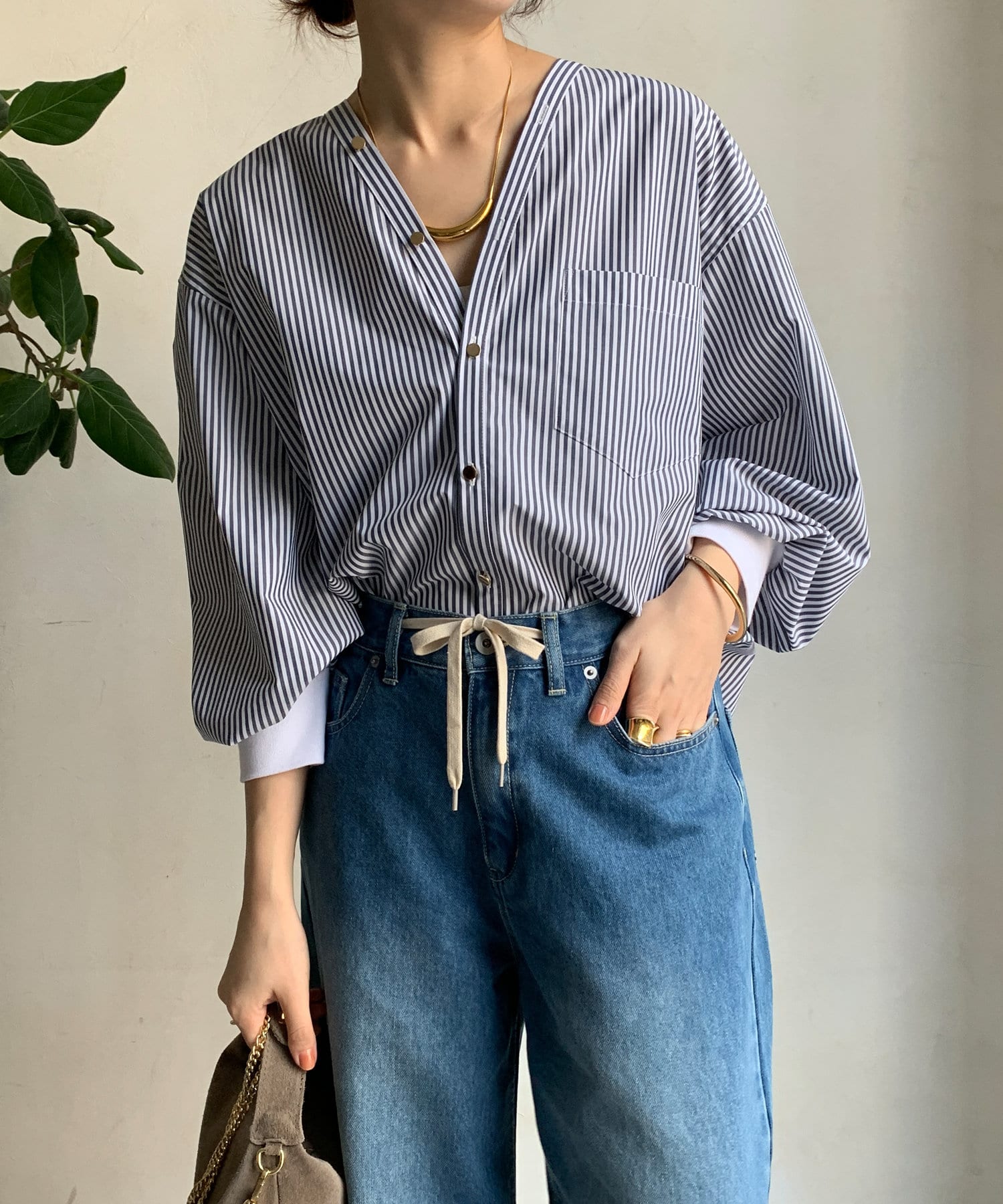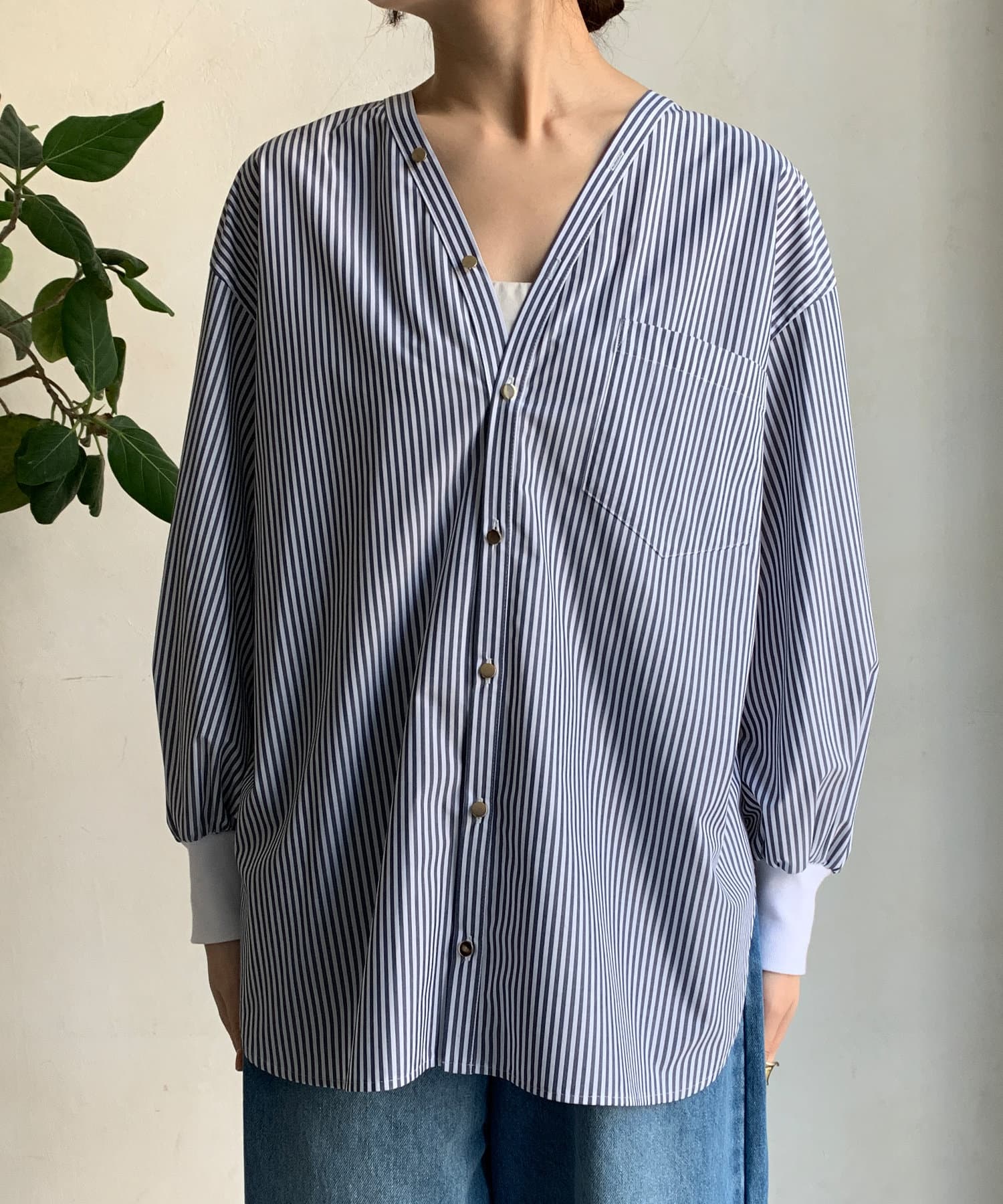 ストライプGOLDボタンVVシャツ
