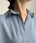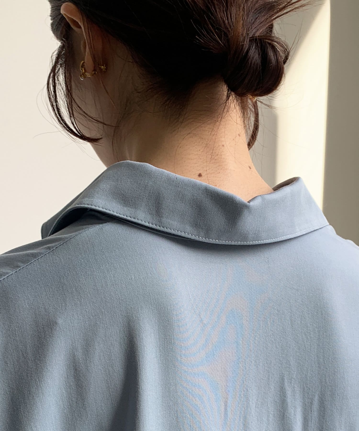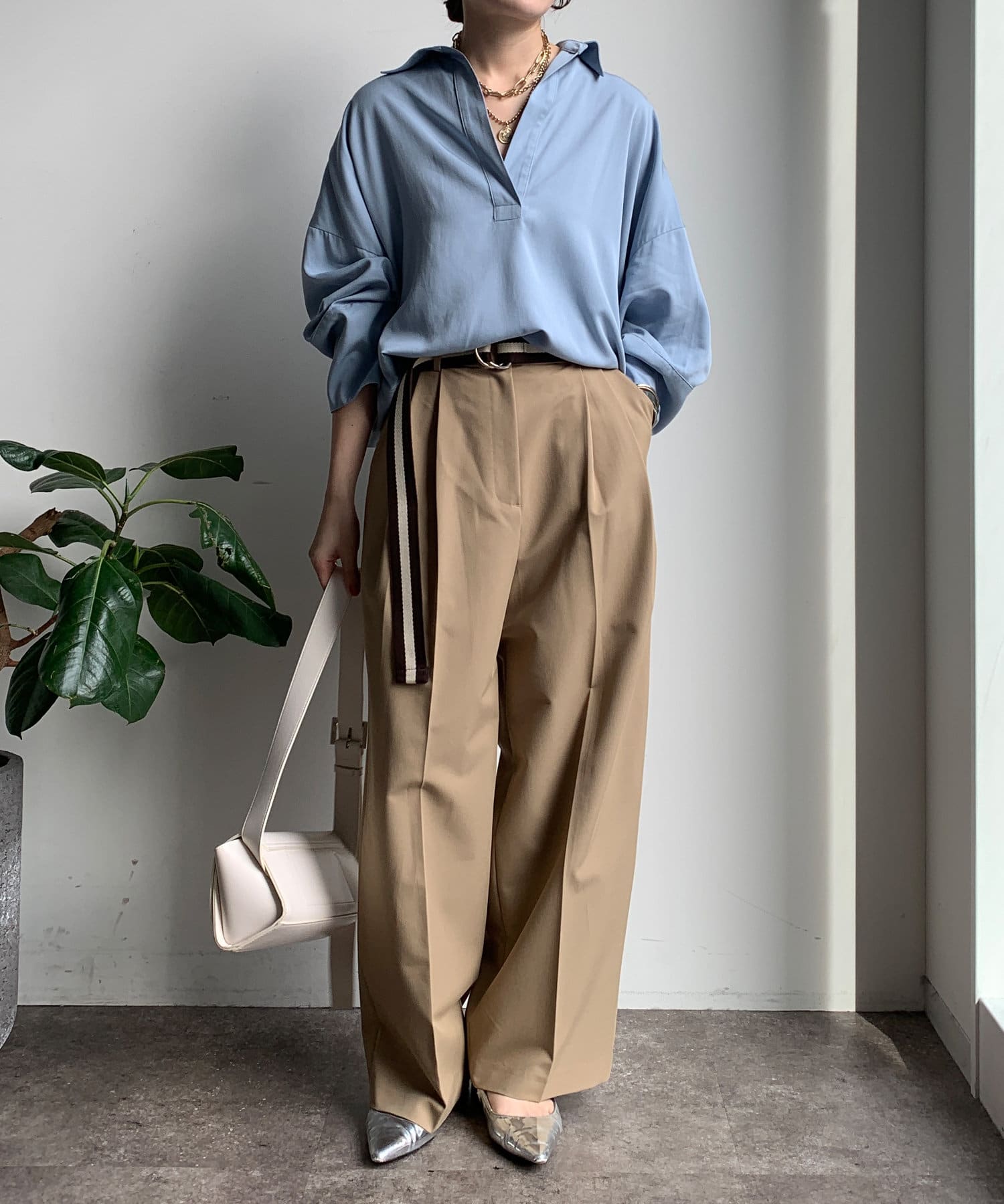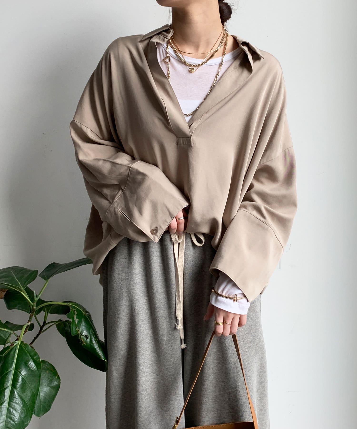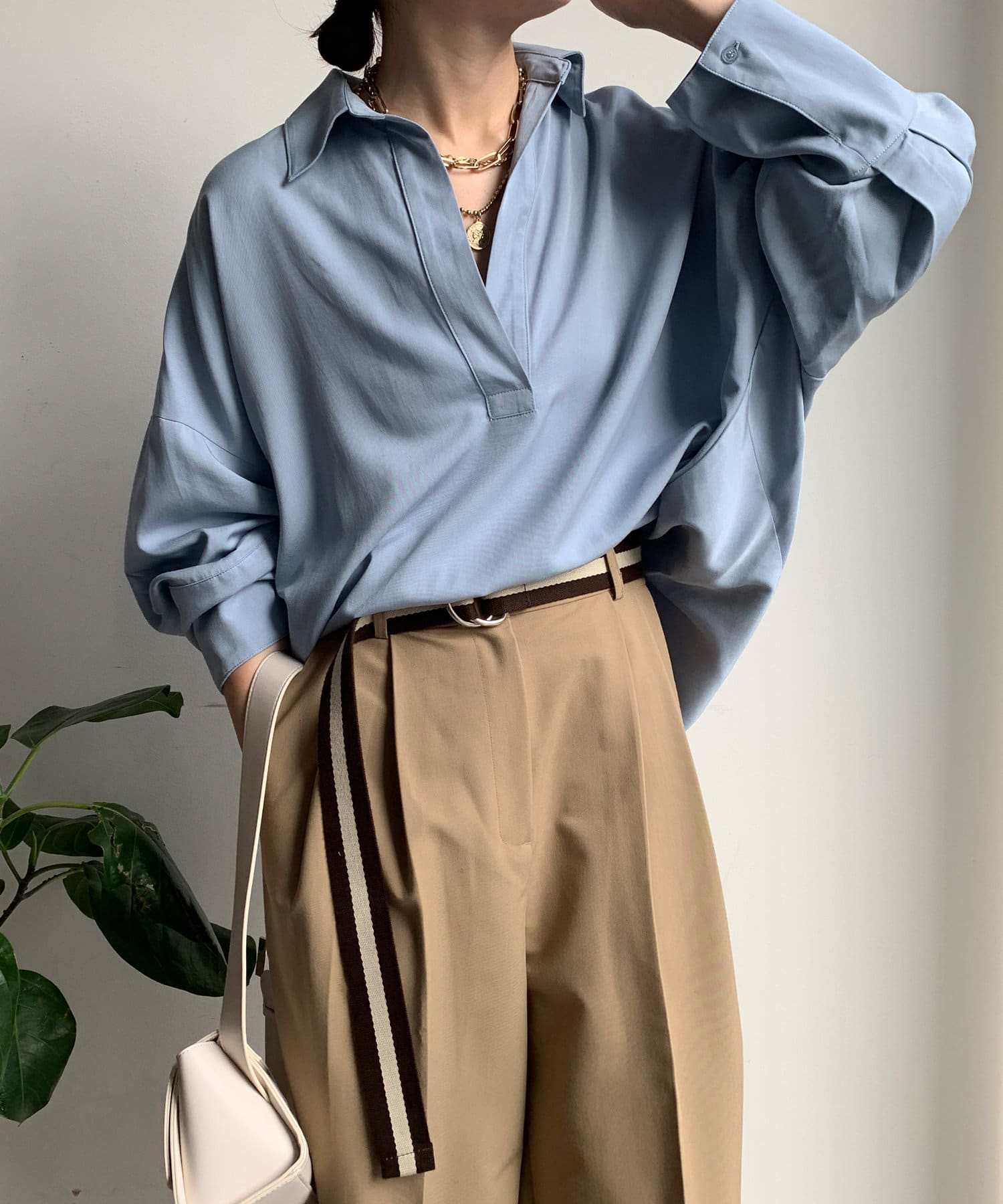首元のスキッパーデザインは大人な雰囲気を醸し、ショートネックレスなどとも相性抜群。