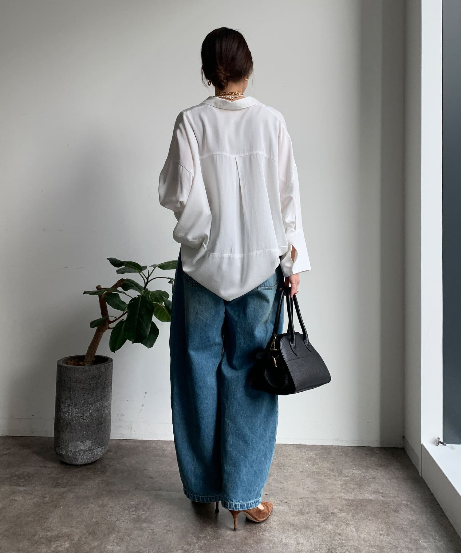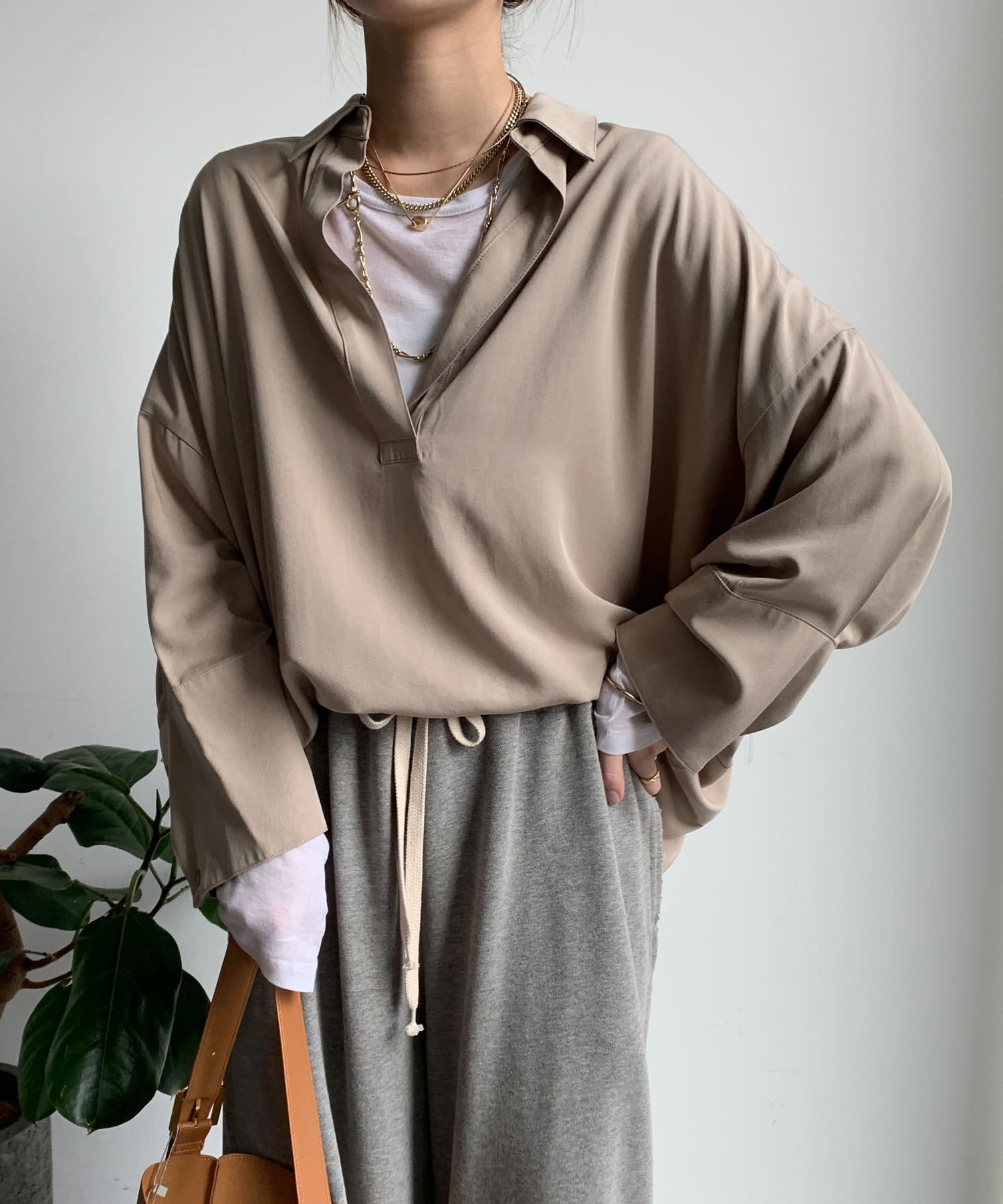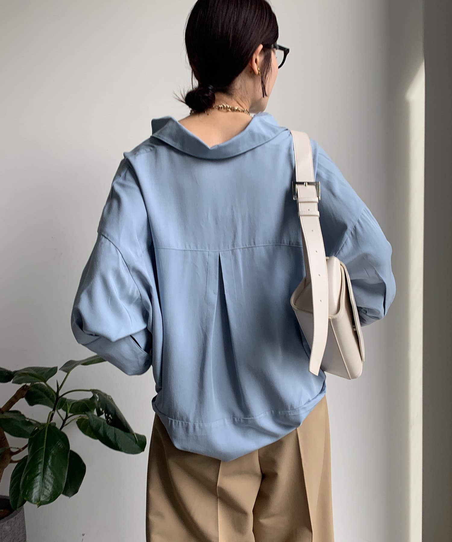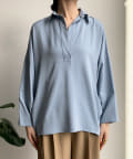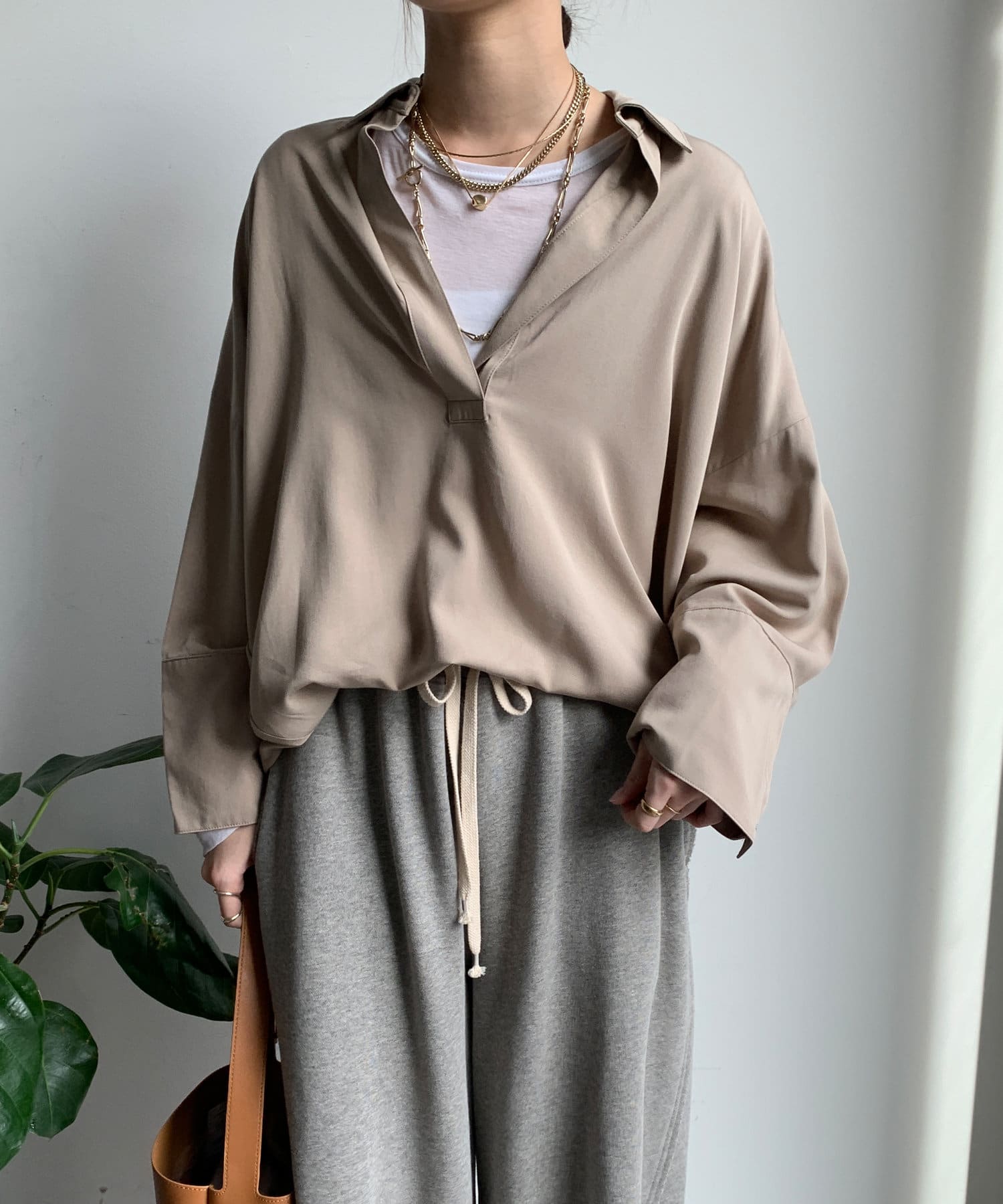 首元のスキッパーデザインは大人な雰囲気を醸し、ショートネックレスなどとも相性抜群。