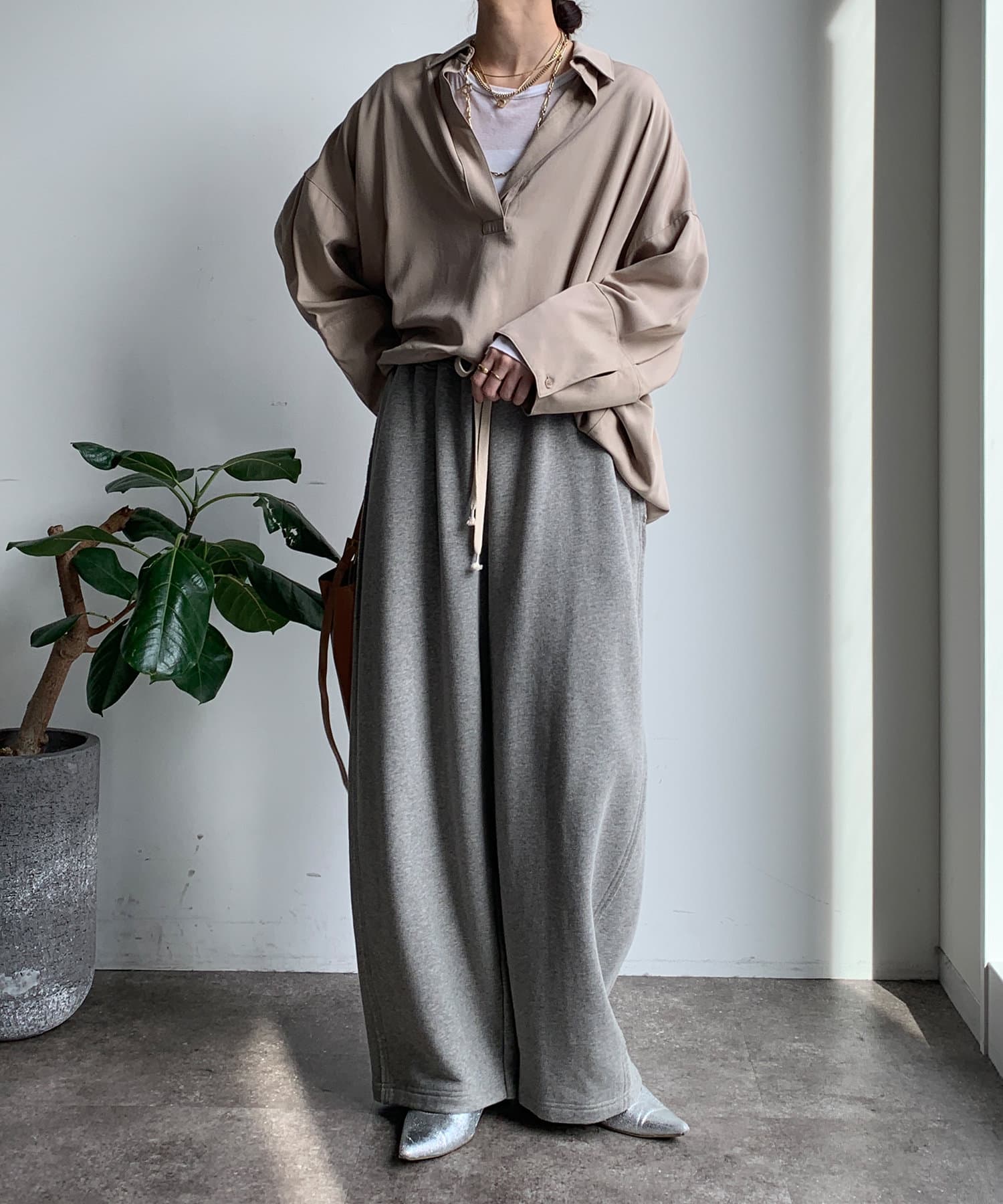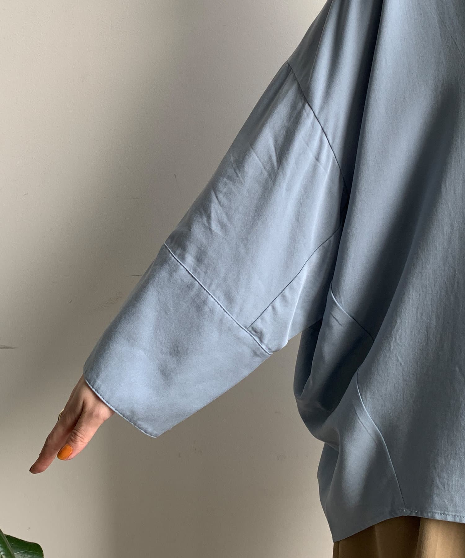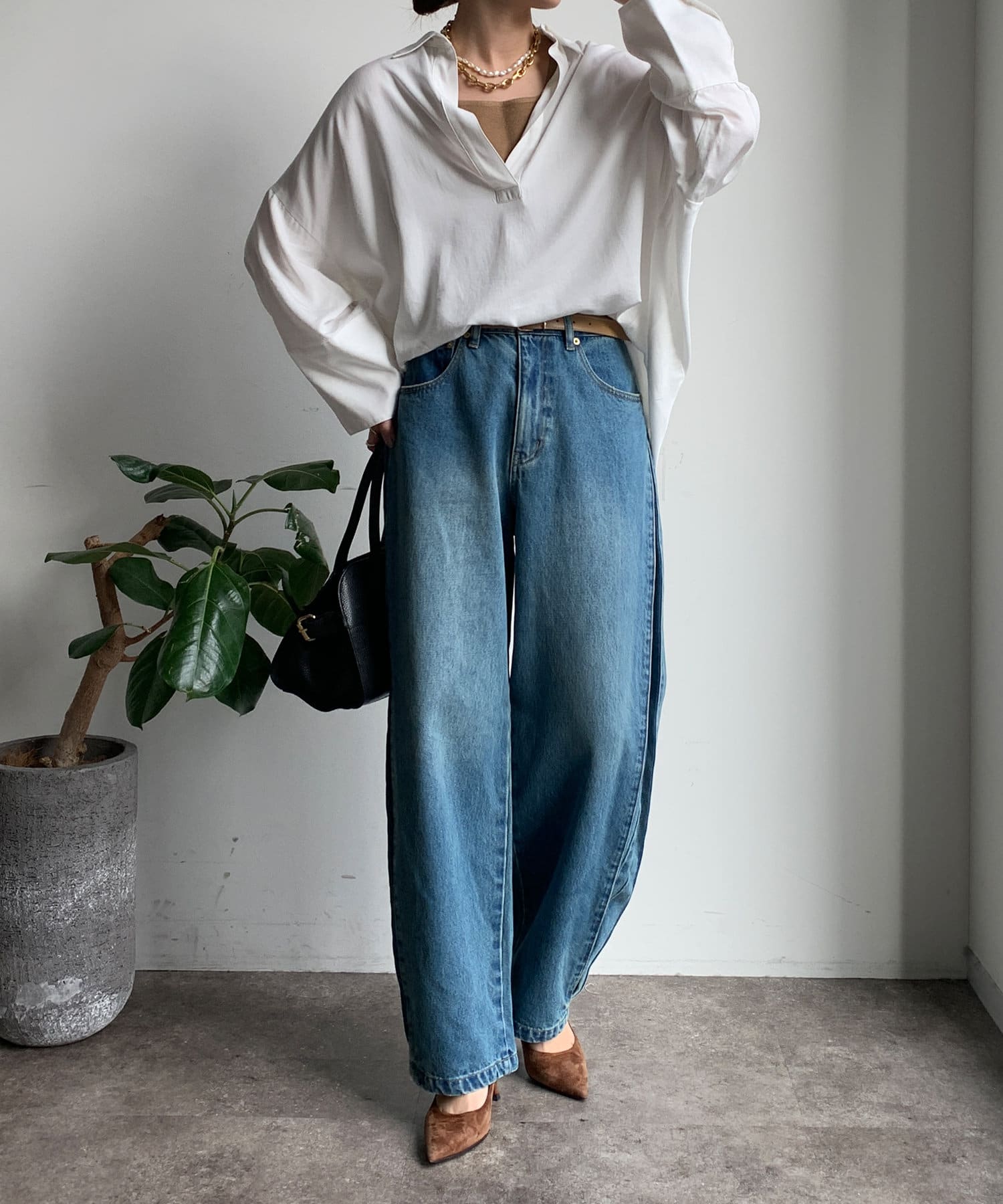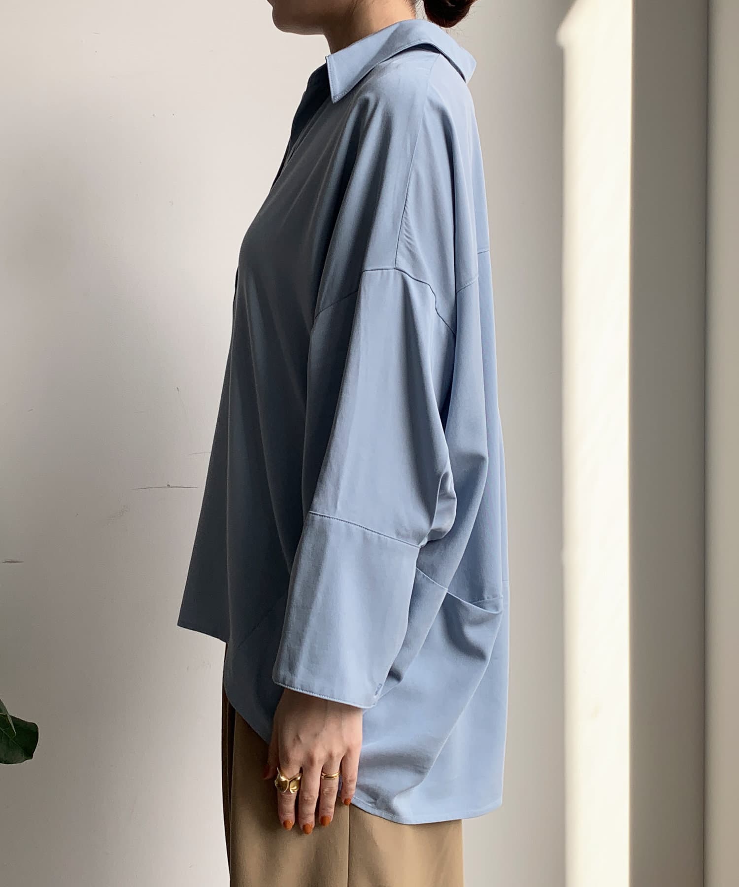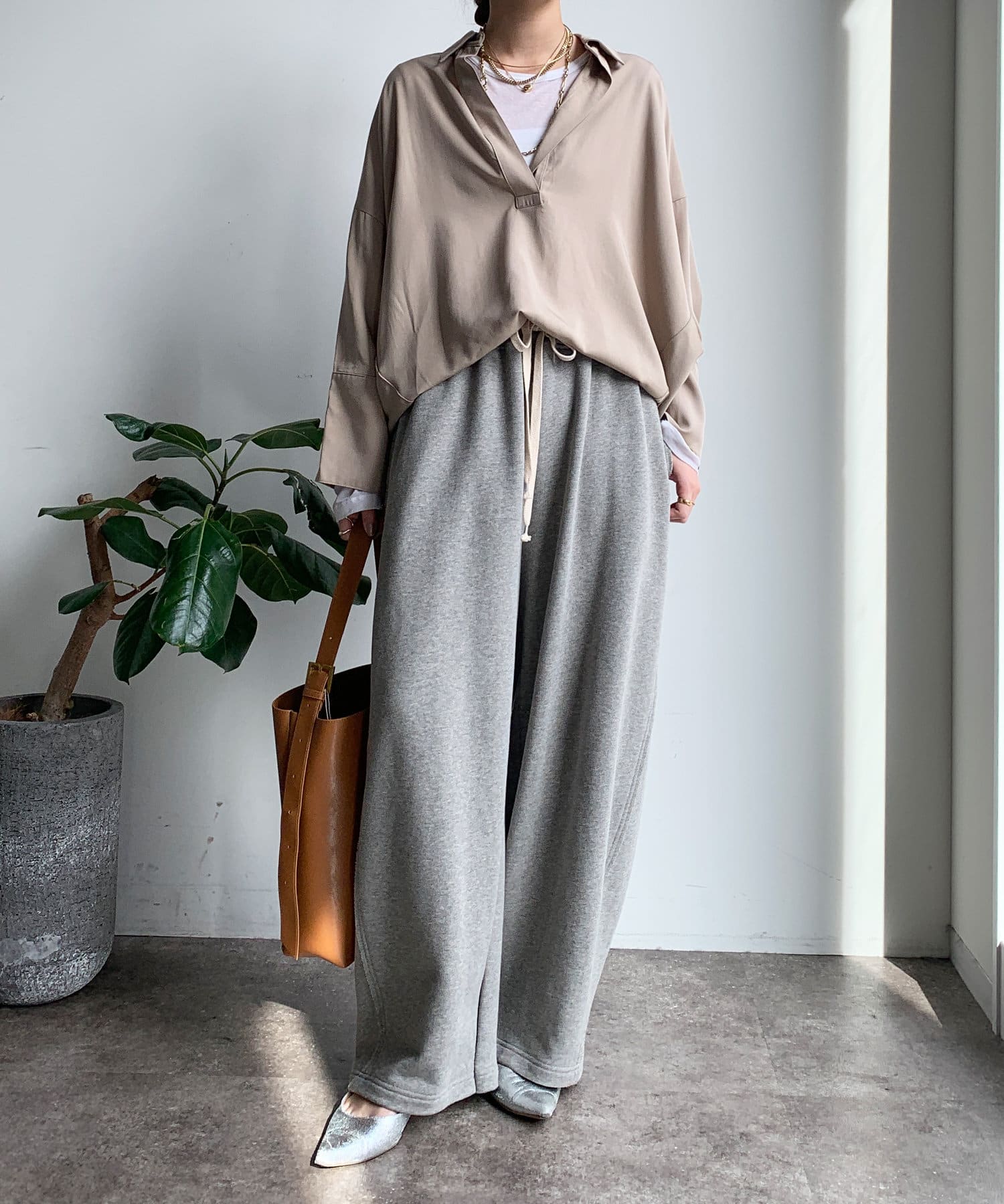 首元のスキッパーデザインは大人な雰囲気を醸し、ショートネックレスなどとも相性抜群。
