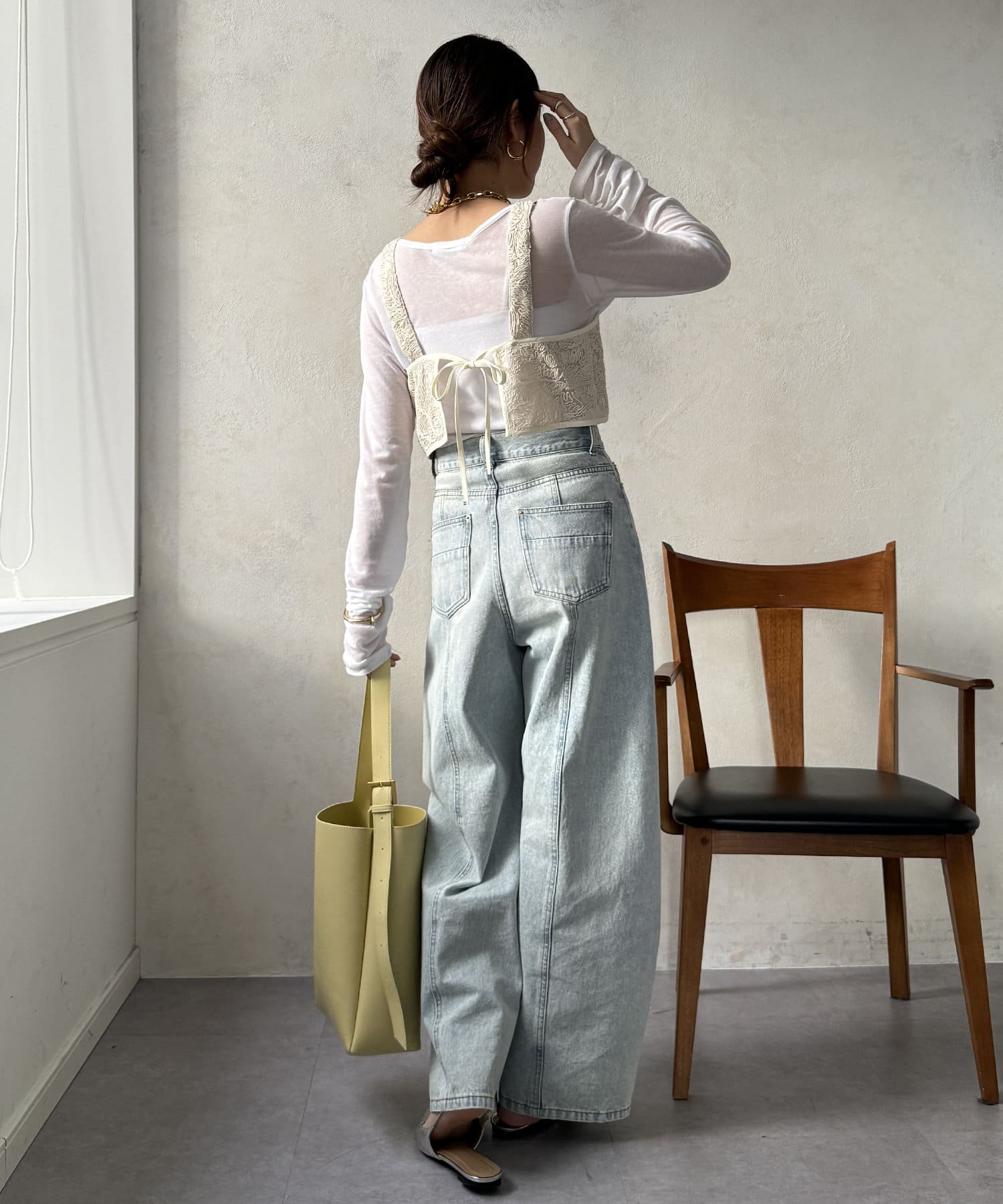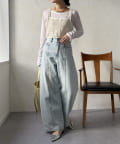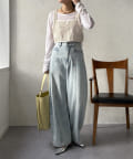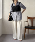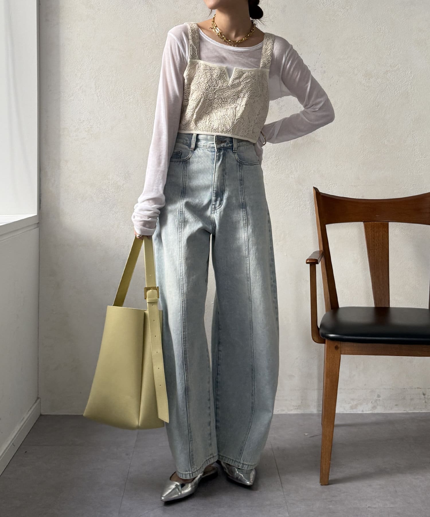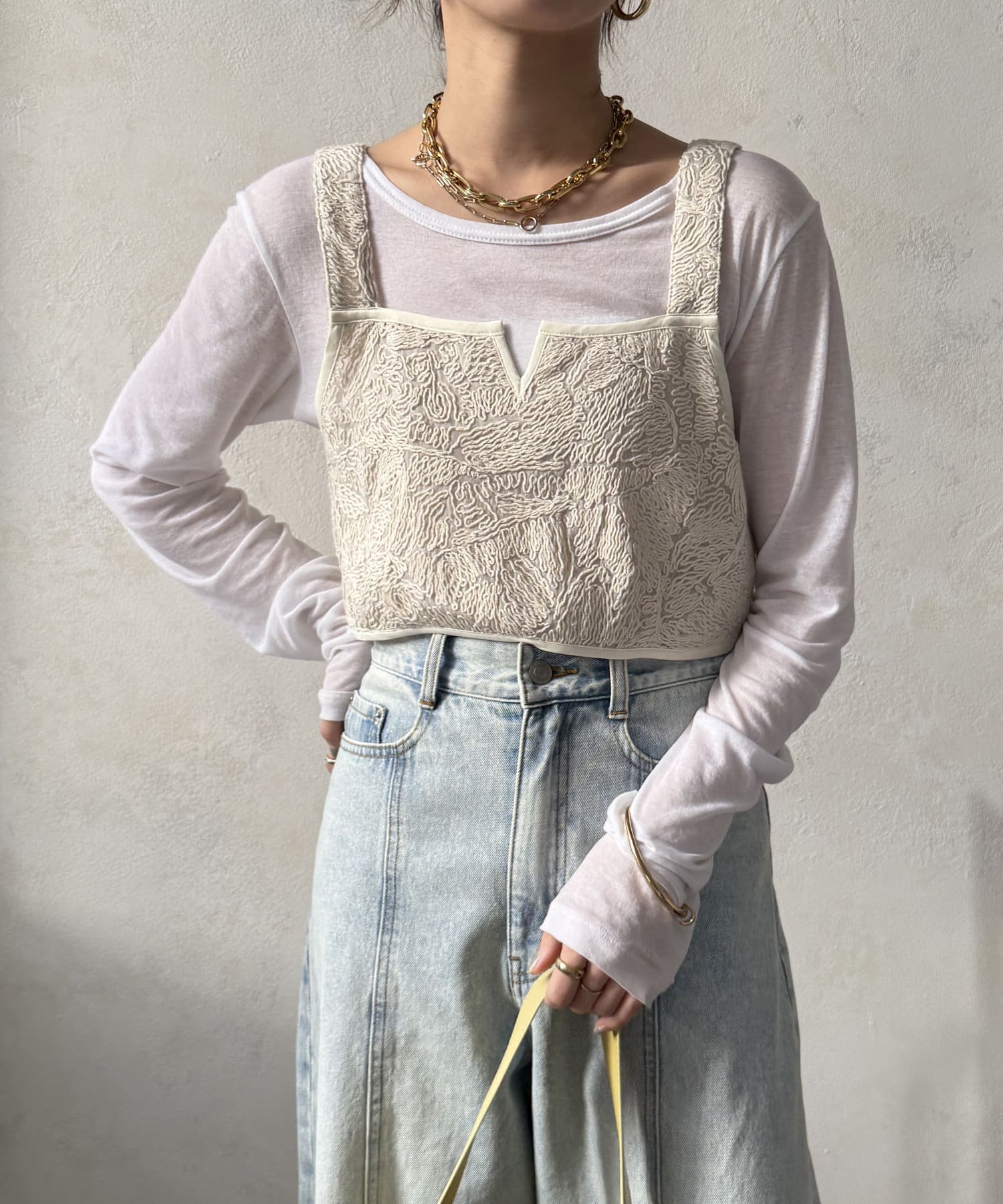 凹凸感のある特徴的な生地なので、シンプルなアイテムとの相性がよく、