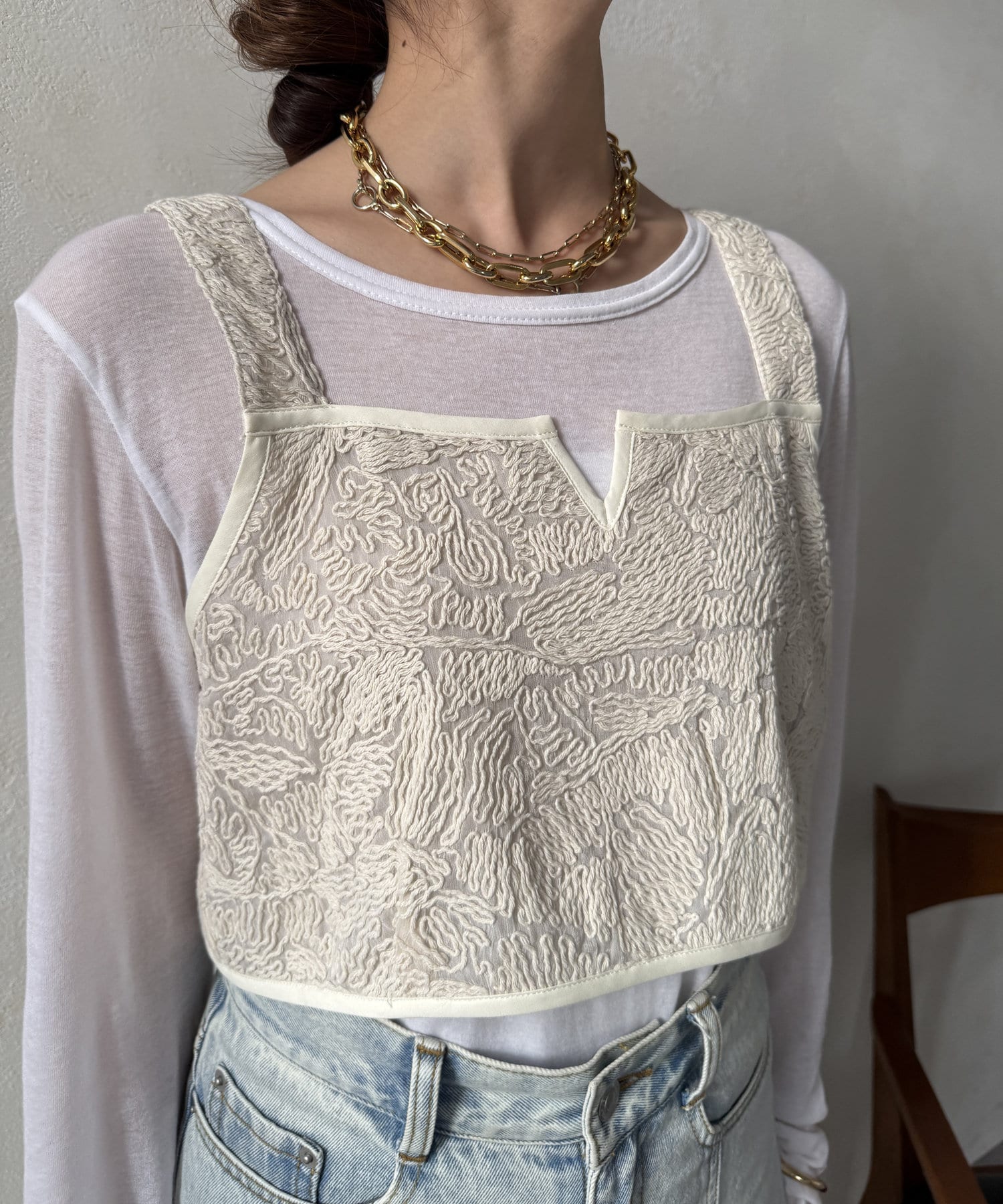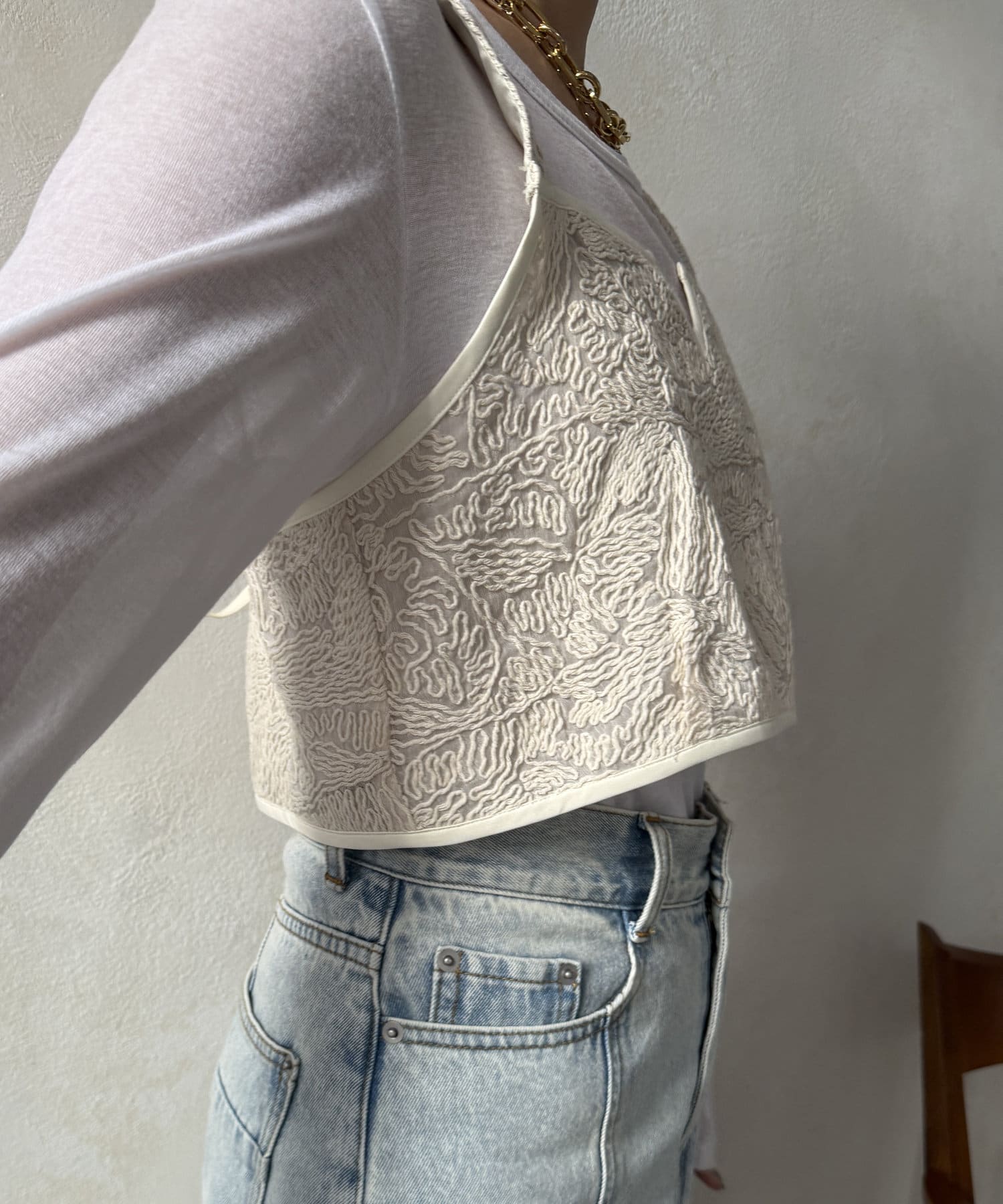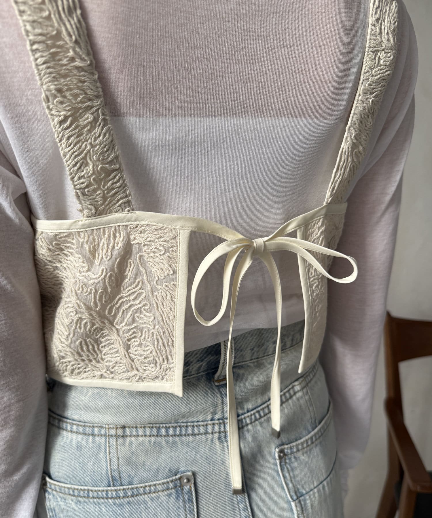 刺繍デザインの太目な肩紐も他にはないデザインでこだわっています。
