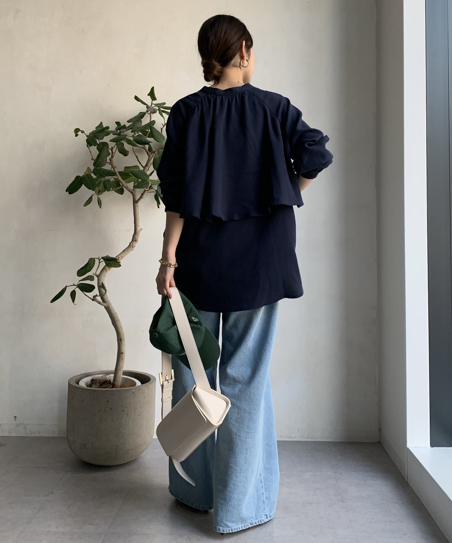 裾フレアデザインが、抜け感を出してくれ、フェミニンな印象に仕上げてくれます。