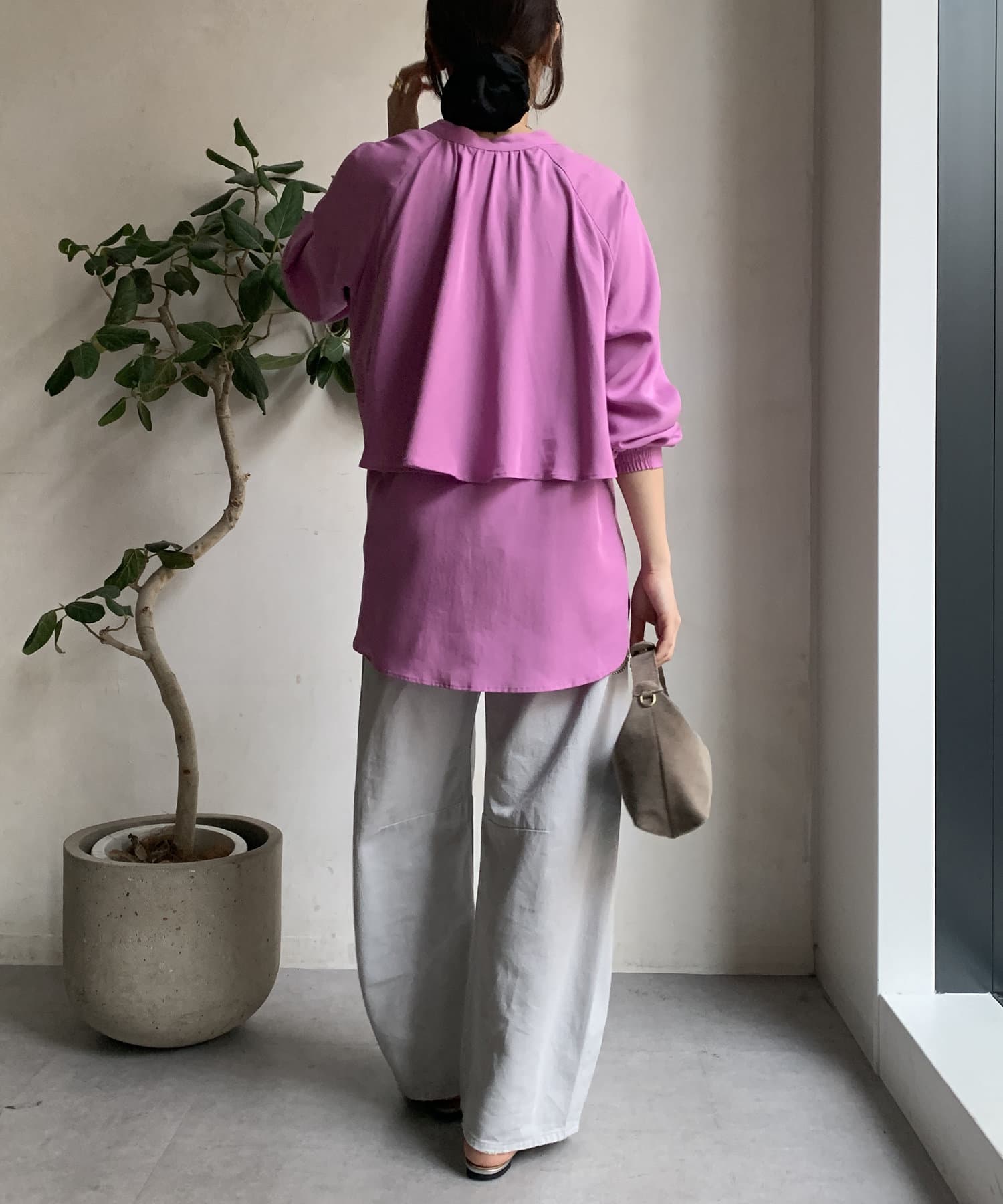 ボディーラインを拾わず、二の腕も隠れるので着痩せ効果も期待大!