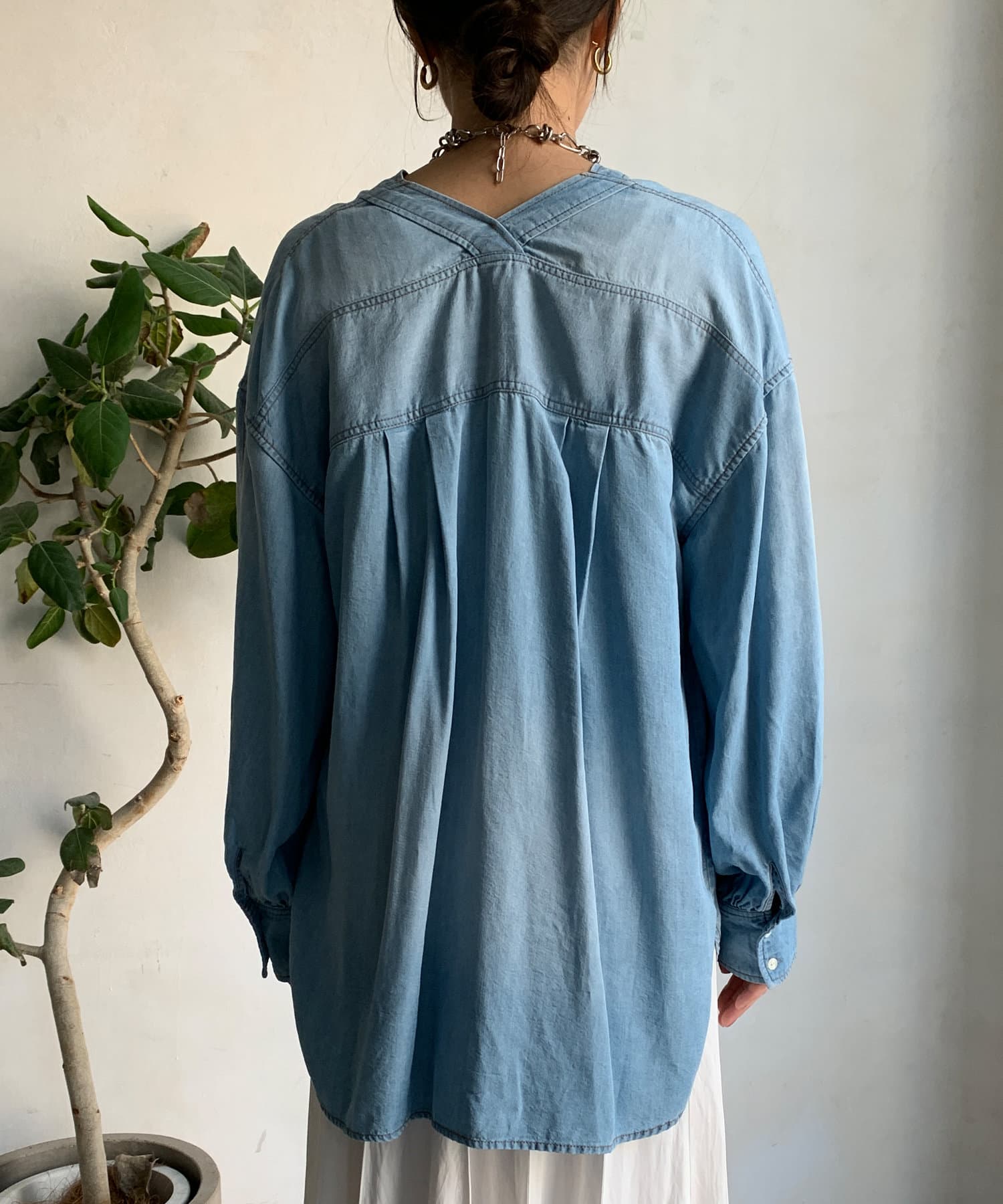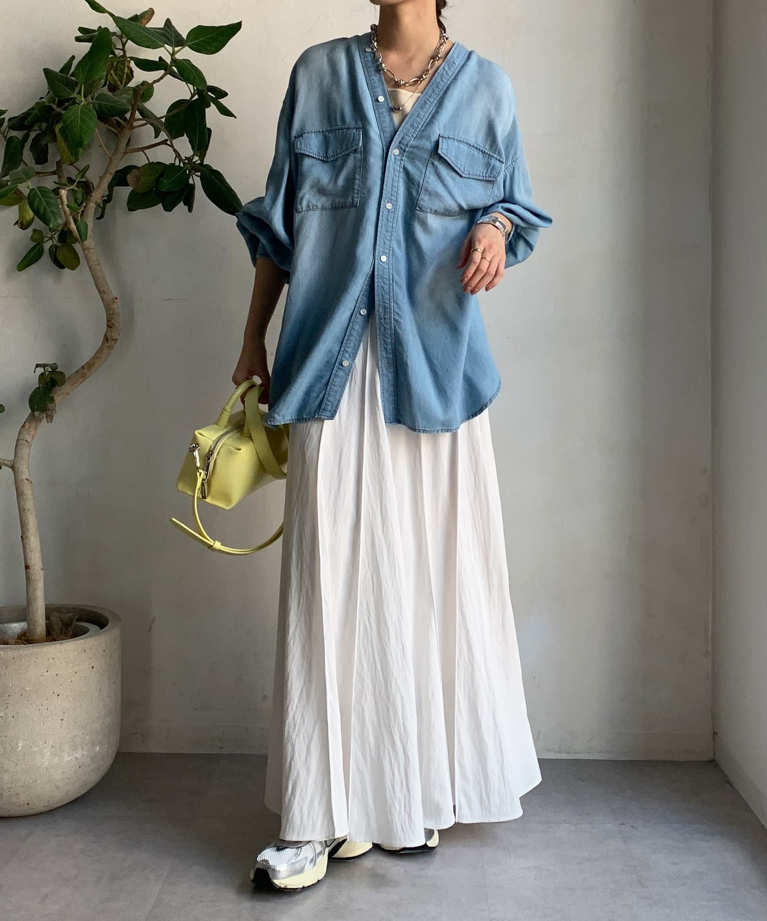 柔らかなデニムシャツの素材で、ロングシーズン着られる優れものですよ。